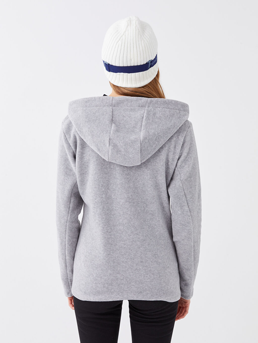 - نام : Kapüşonlu Düz Uzun Kollu Kadın Polar Hırka
