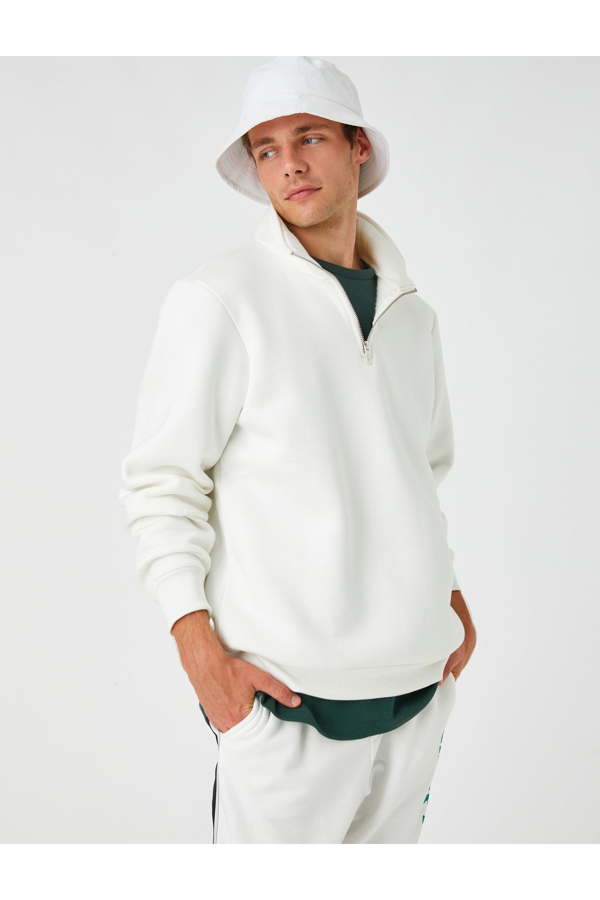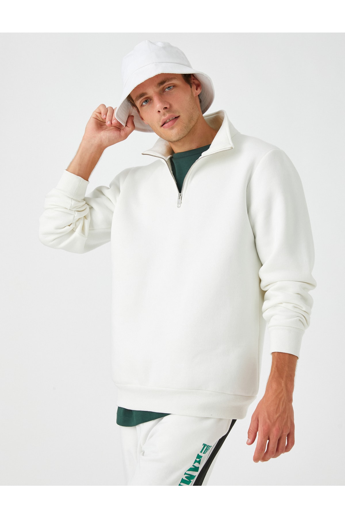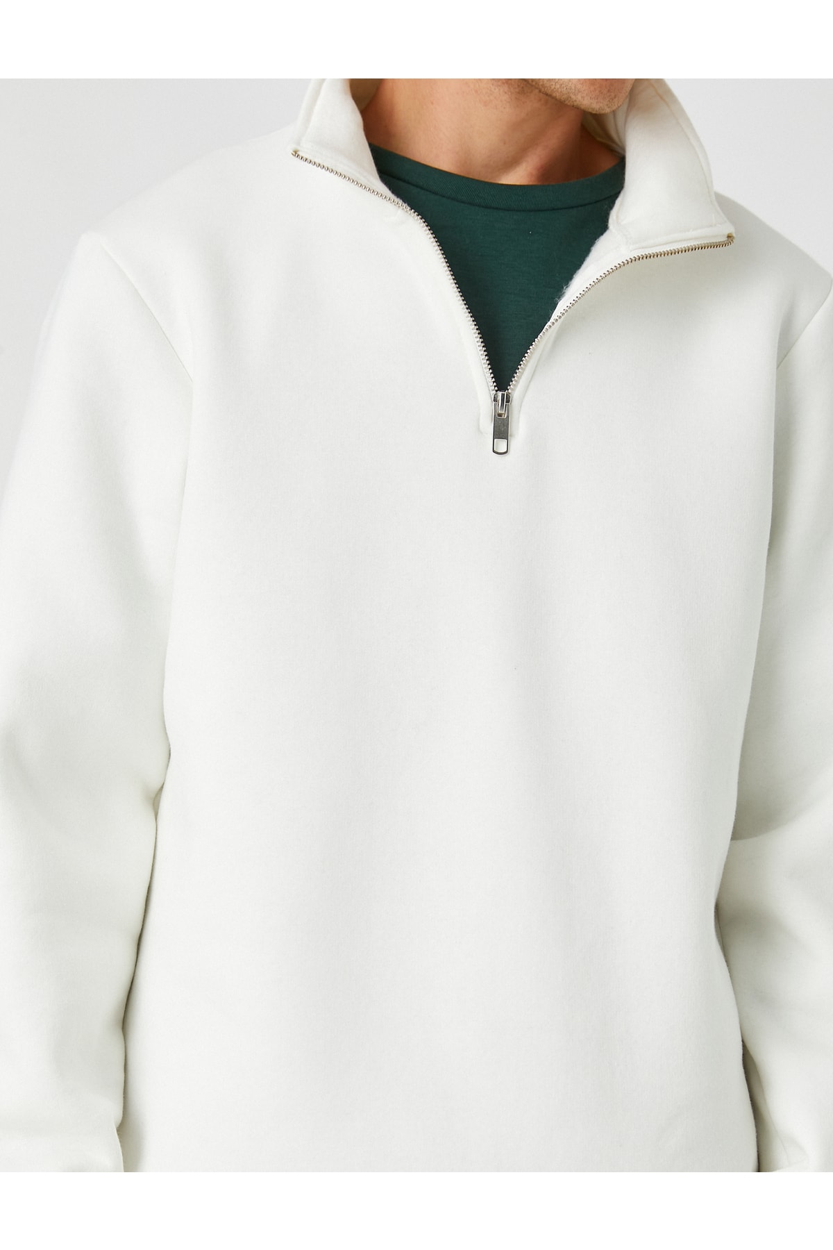 Fermuar detaylı, dik yaka, basic sweatshirt.