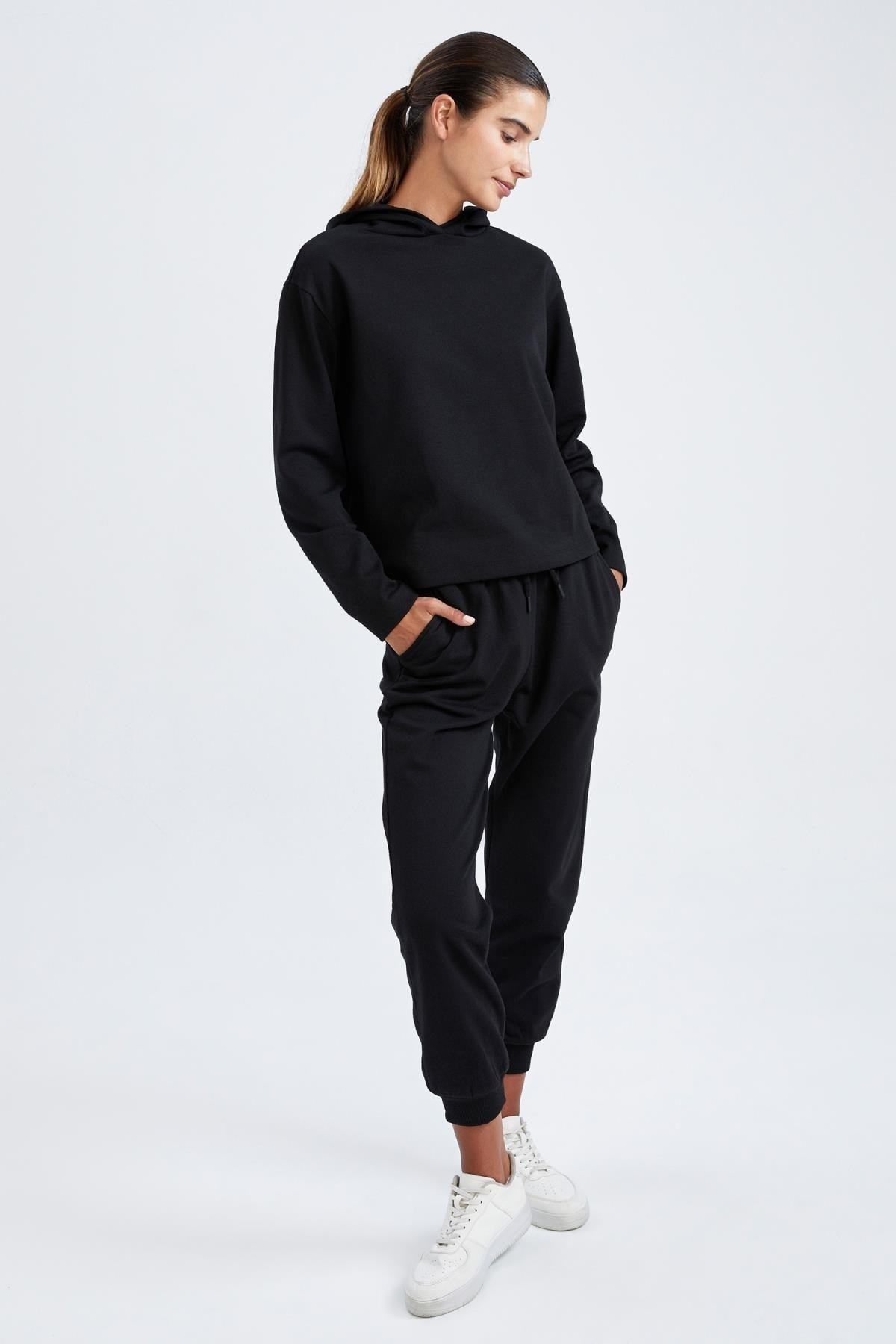 Sade modeli ve rahat kesimi ile günlük kombinlerinizin vazgeçilmezi olmaya aday, crop sweatshirt, sweatshirt, basic gömlek ve tişörtlerle kombinleyebileceğiniz, kolayca fit görünebileceğiniz, kullanışlı cep detayıyla DeFacto Kadın Defacto Fit Standart Fit Eşofman Altı.