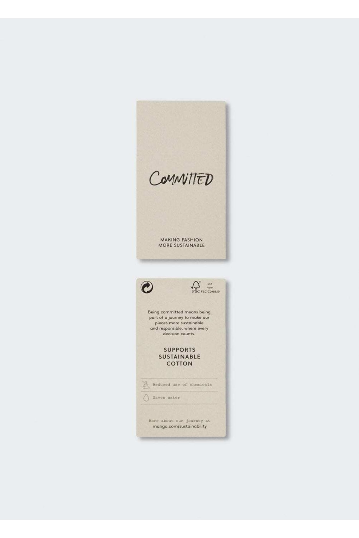 Tişört .-- polita. %100 pamuklu kumaş, Örme kumaş, Kısa boy, Düz model, Polo yakalı, Yakası düğme kapamalı, Uzun kollu, Committed Koleksiyonu, Committed etiketli giysiler, çevresel etkilerinin azaltılarak, sürdürülebilir lifler veya süreçler kullanılarak üretilen ürünlerdir. Mango'nun hedefi, doğaya daha fazla adanmış olan uygulamaları desteklemek ve koleksiyondaki sürdürülebilir giysi sayısını arttırmaktır. 100% pamuk. Yan dikiş uzunluğu 27.9 cm, Arka uzunluk 53.0 cm. KISA SANTRFÜJLE MAKİNEDE MAKS. 30°C'DE YIKAYIN, ÇAMAŞIR SUYU KULLANMAYIN, MAKS. 110°C İLE ÜTÜLEYİN, KURU TEMİZLEME YAPILMAZ, KURUTMA MAKİNESİNDE KURUTULAMAZ
