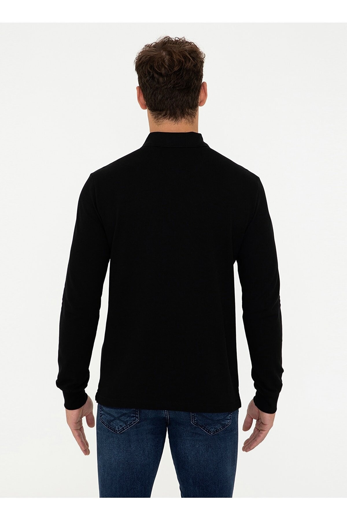 - نام : Erkek Dokuma Polo Yaka Slim Fit Siyah Sweat T-shirt
