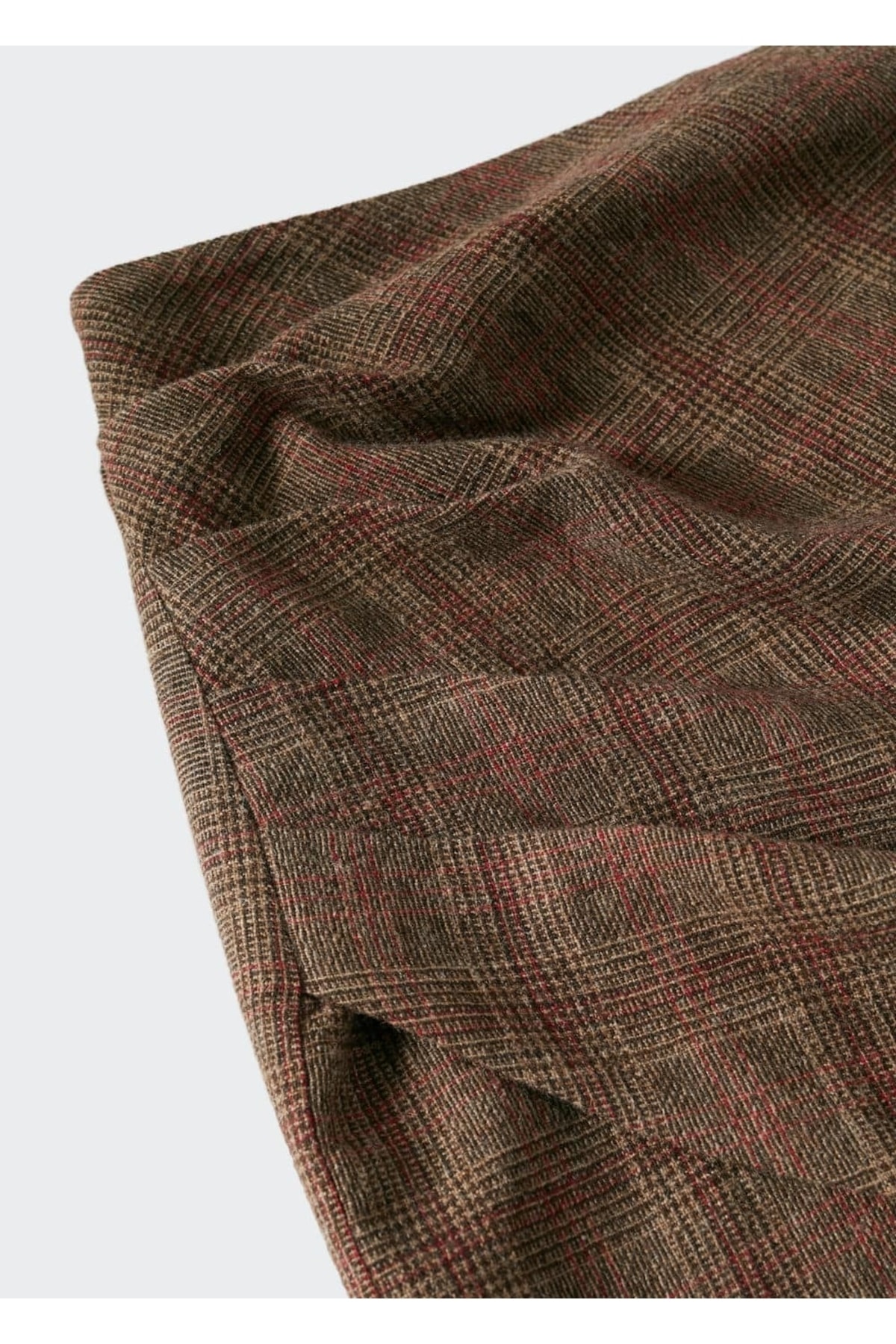 Etek .-- gina. Karma yün kumaşlı, Kare desenli, Kısa boy, Fit model, Anvelop model, Drape detaylı, Arkası gizli fermuar kapamalı, Committed Koleksiyonu, Committed etiketli giysiler, çevresel etkilerinin azaltılarak, sürdürülebilir lifler veya süreçler kullanılarak üretilen ürünlerdir. Mango'nun hedefi, doğaya daha fazla adanmış olan uygulamaları desteklemek ve koleksiyondaki sürdürülebilir giysi sayısını arttırmaktır. 66% yün,34% polyamid. Yan dikiş uzunluğu 44.0 cm, Etek uzunluğu 43.9 cm. YIKANMAZ, ÇAMAŞIR SUYU KULLANMAYIN, MAKS. 110°C İLE ÜTÜLEYİN, PERKLOROETİLEN MEKANİK SINIRLAMALI KURU TEMİZLEME UYGULAYIN, KURUTMA MAKİNESİNDE KURUTULABİLİR