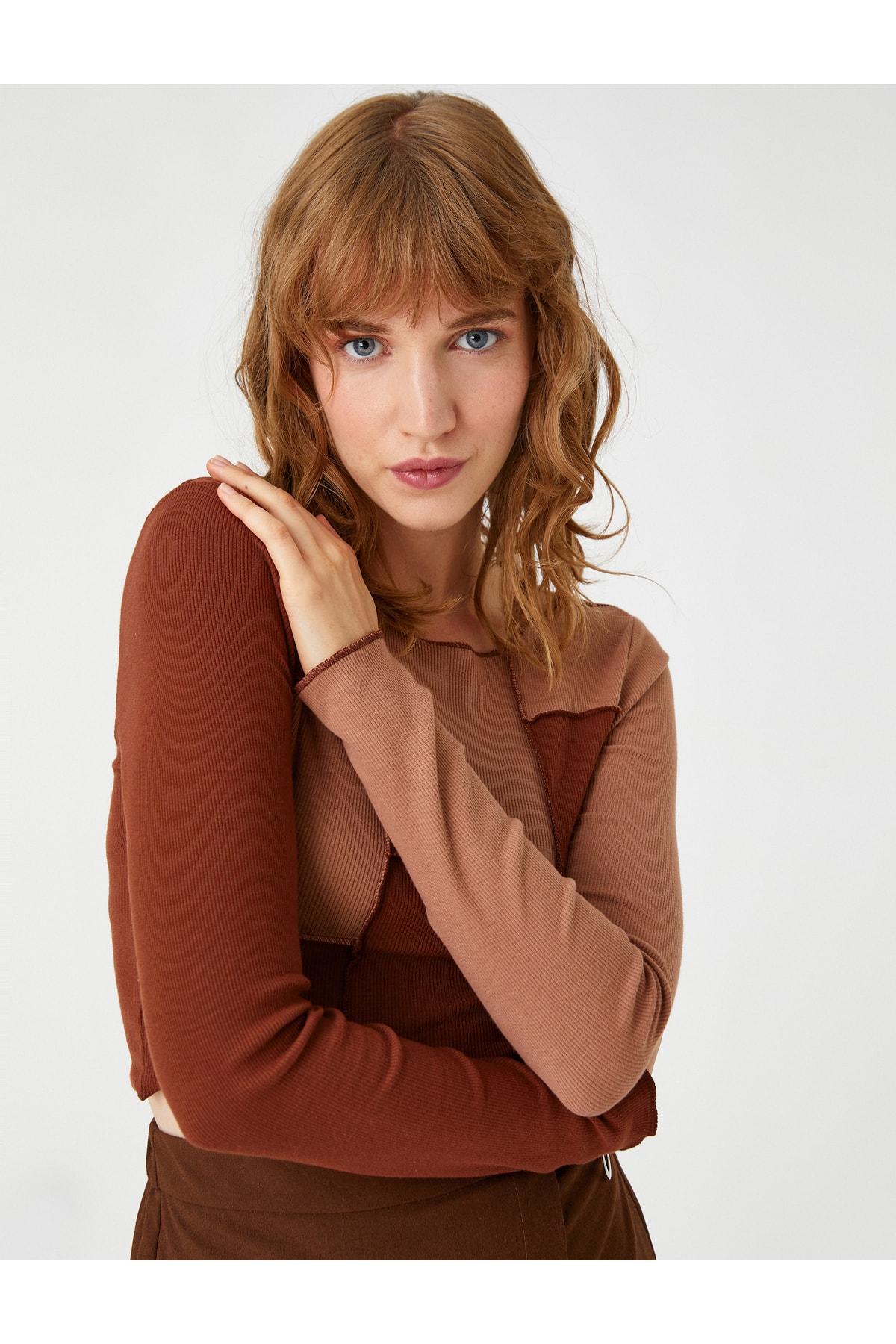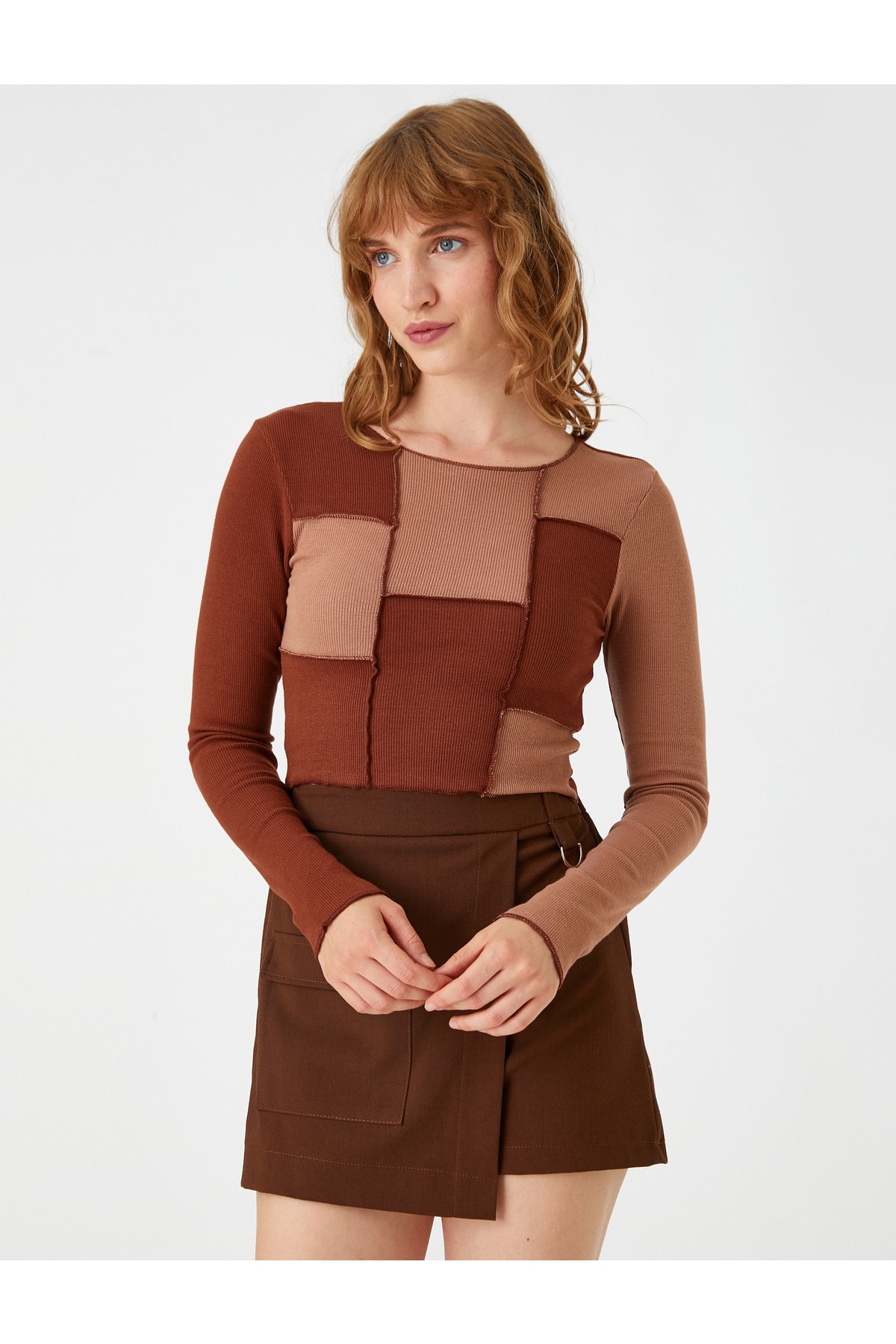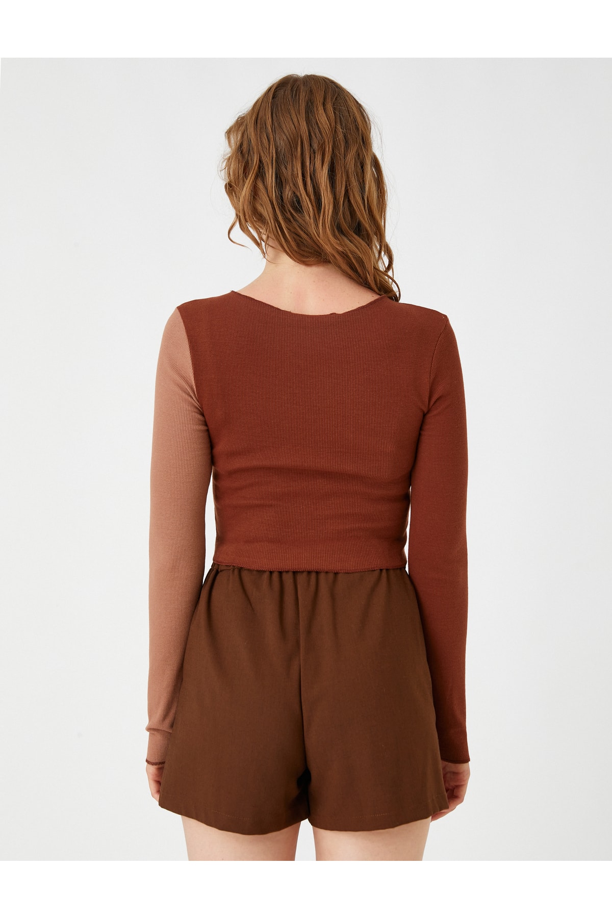 - نام : Crop Tişört Renk Bloklu Uzun Kollu