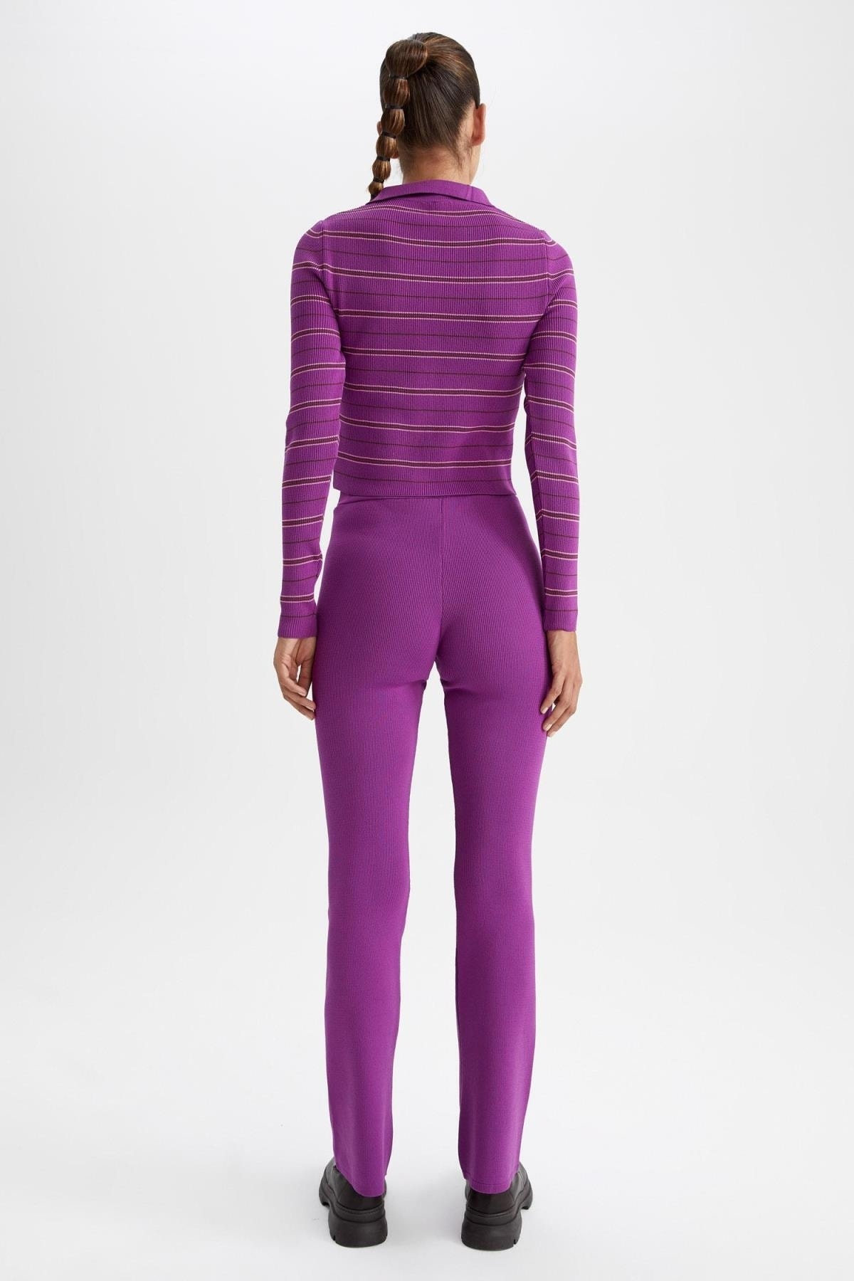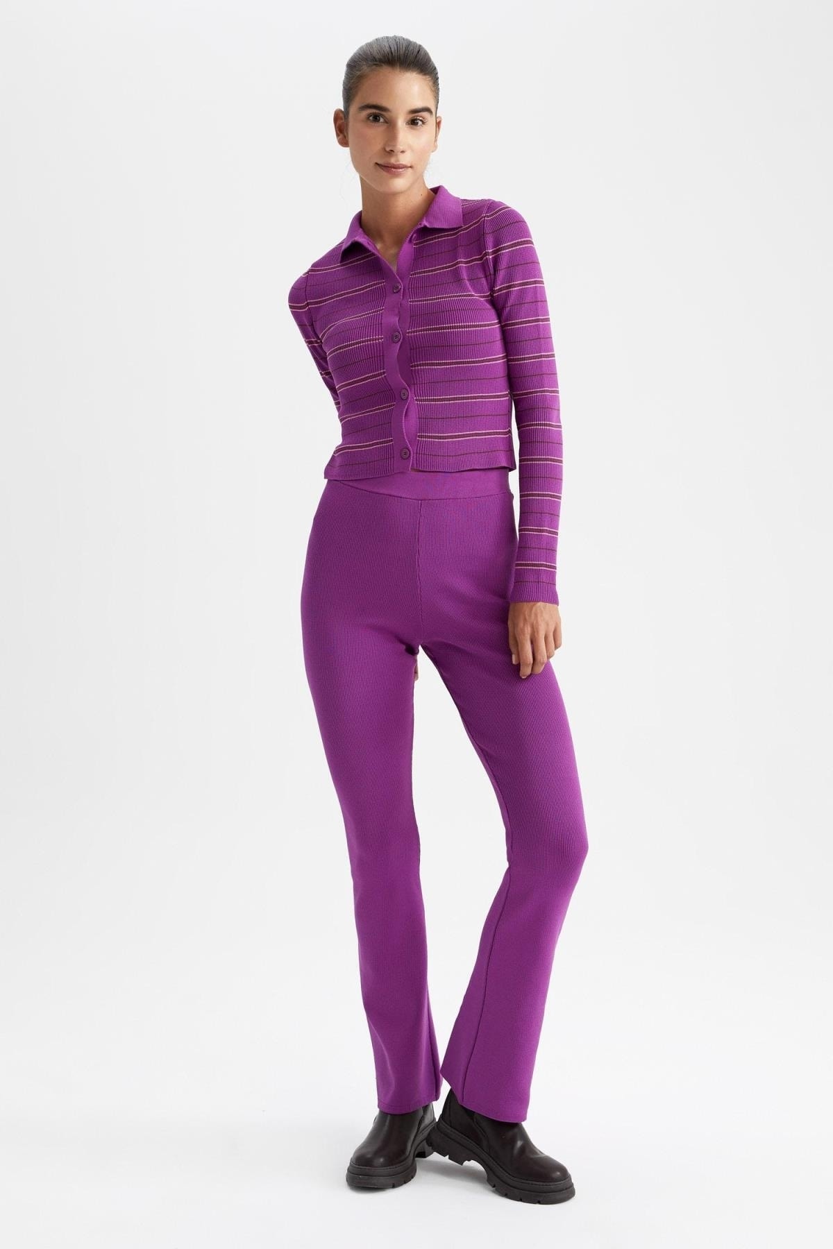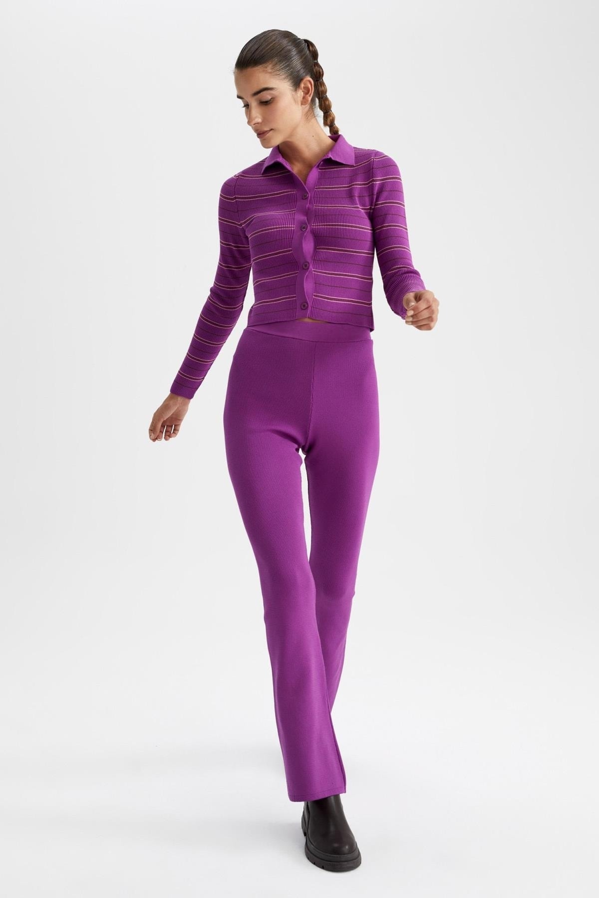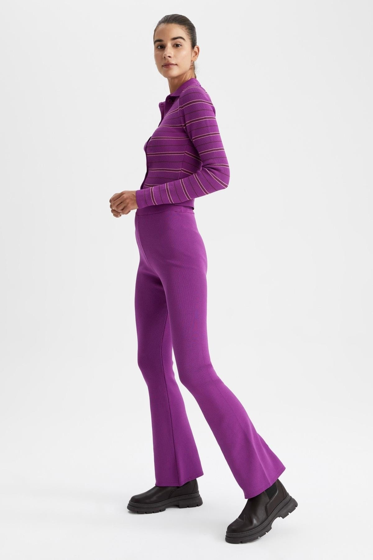 Rahat kesimi ile kolayca fit bir görünüm elde edebileceğiniz triko sweatshirt, crop triko top, gömlek, triko kazak ve basic tişörtlerinizle kombinleyeceğiniz, gün boyu ister spor ister klasik her kombininizde konforlu hissettirecek, aynı zamanda trend görünebileceğiniz DeFacto Kadın İspanyol Paça Ribanalı Triko Pantolon.