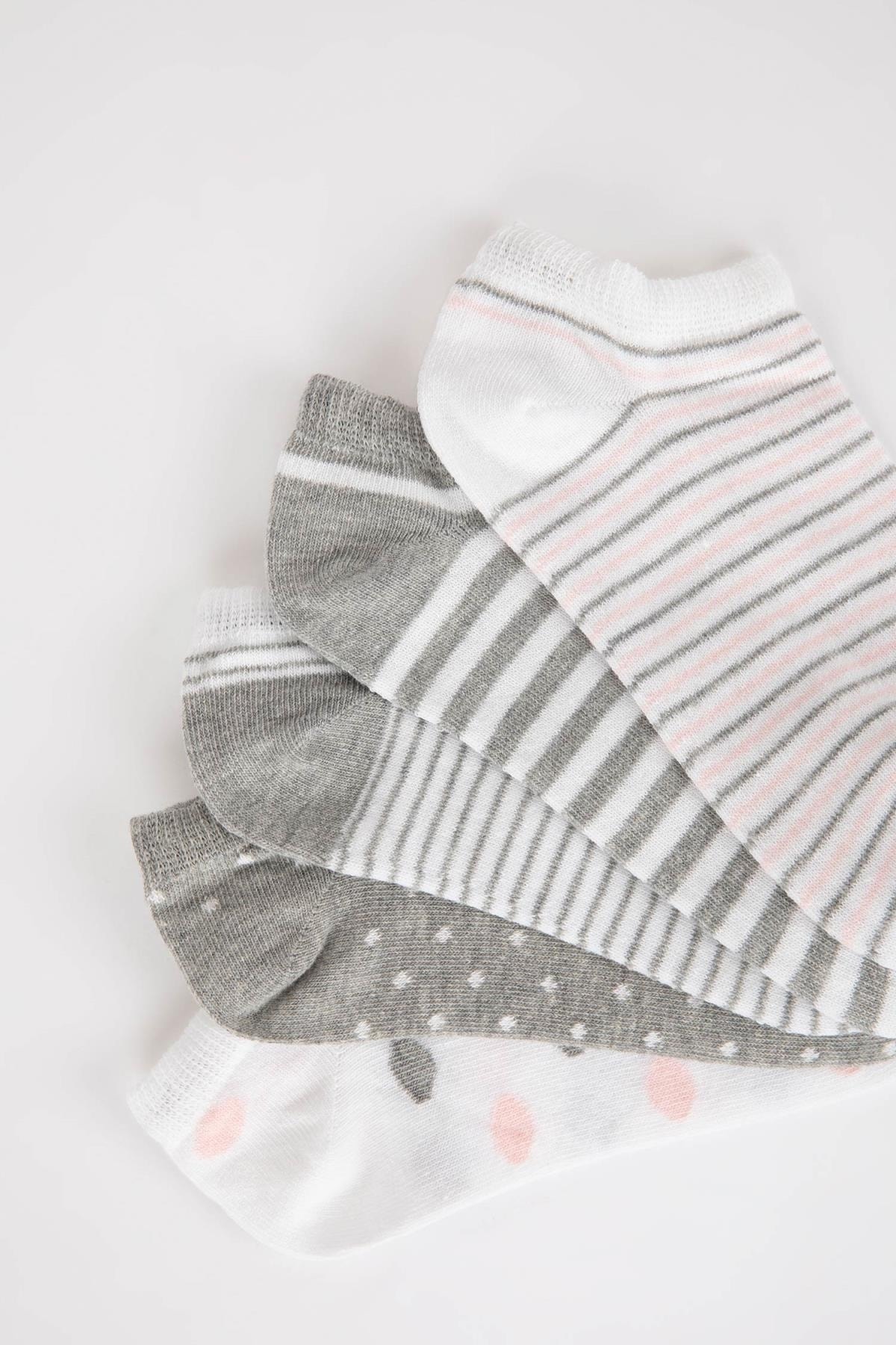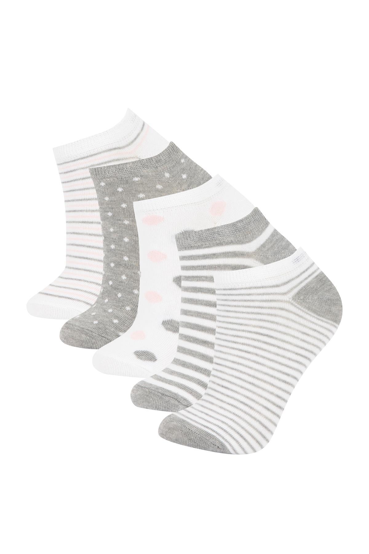 Rahat ve kullanışlı desenli modeliyle her mevsim kullanacağınız, pamuklu kumaşı ile tercih edeceğiniz DeFacto Kadın Pamuklu 5'li Kısa Çorap.