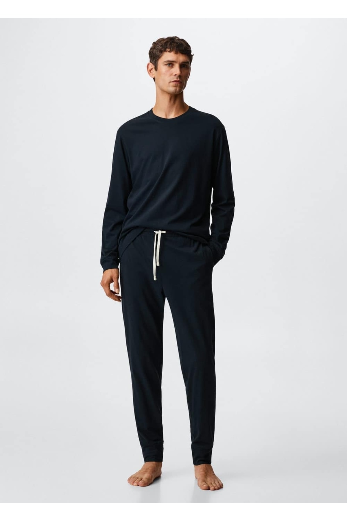 Pi?jama takimi .-- nightset. Tişört ve pijama pantolon takım, Uzun model, Sürdürülebilir pamuklu kumaş, Uzun kollu Tişört, Yuvarlak yakalı, Uzun pijama, Modelin boyu 187 cm'dir ve M beden giymektedir, Committed etiketli giysiler, çevresel etkilerinin azaltılarak, sürdürülebilir lifler veya süreçler kullanılarak üretilen ürünlerdir. Mango'nun hedefi, doğaya daha fazla adanmış olan uygulamaları desteklemek ve koleksiyondaki sürdürülebilir giysi sayısını arttırmaktır. 100% pamuk. MAKİNEDE MAKS. 40°C'DE YIKAYIN, ÇAMAŞIR SUYU KULLANMAYIN, MAKS. 150°C İLE ÜTÜLEYİN, PERKLOROETİLEN KURU TEMİZLEME UYGULAYIN, KURUTMA MAKİNESİNDE KURUTULABİLİR