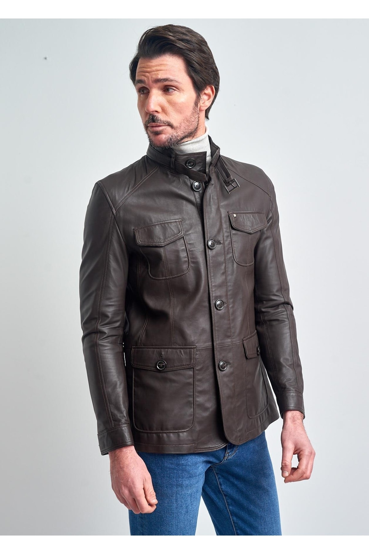 %100 Hakiki Deri Ceket,Slim Fit Kalıp,Düğme detaylı ve Garnili, Orjinal Pierre Cardin Deri Ceket