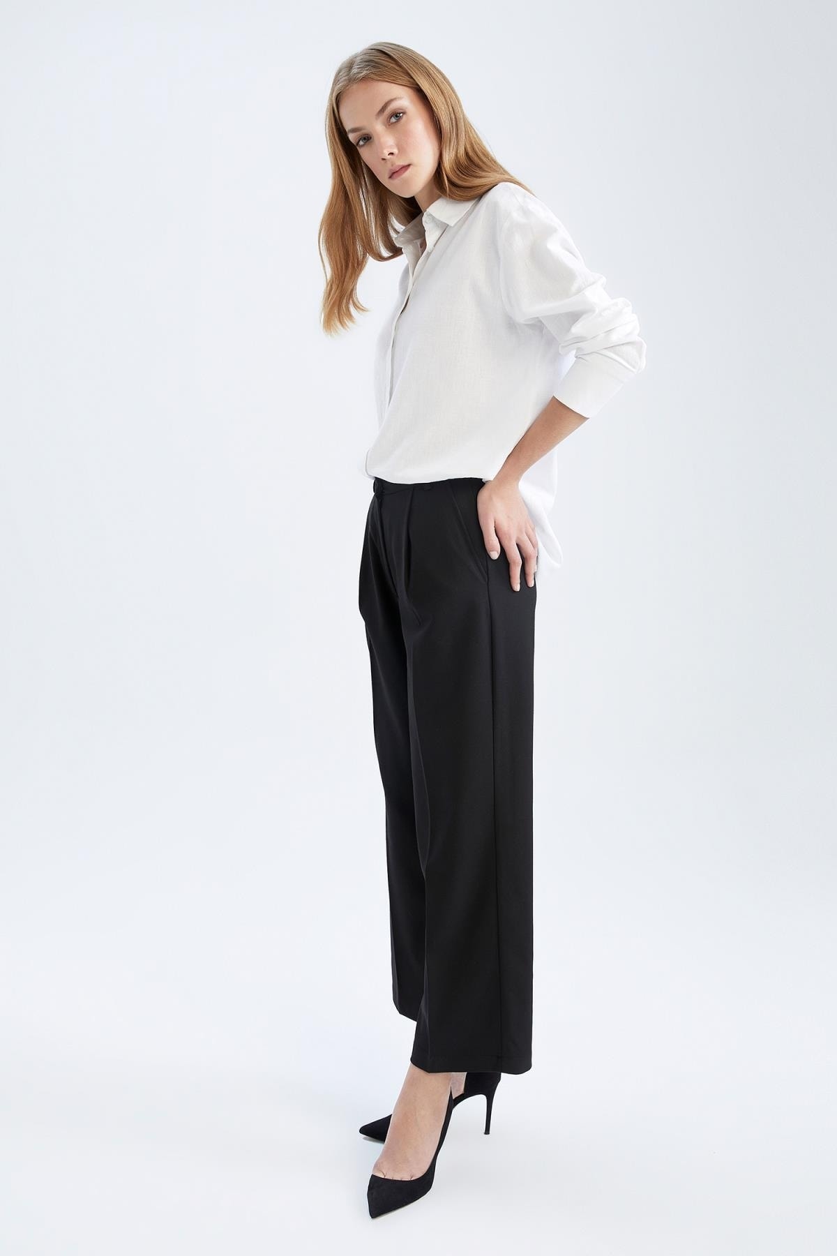 Vizkon karışımlı ve esnek yapılı kumaşıyla fit görünüm sağlayan modeli her tarz tişört, tunik, kazak ve gömlekler ile kolayca kombinleyip şık bir görünüm sağlayabileceğiniz DeFacto Kadın Regular Fit Yüksek Bel Düz Paça Cep Detaylı Pantolon