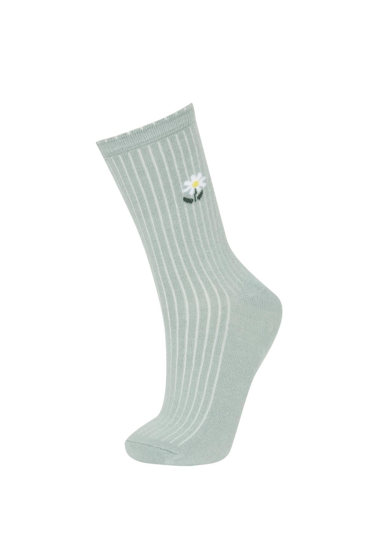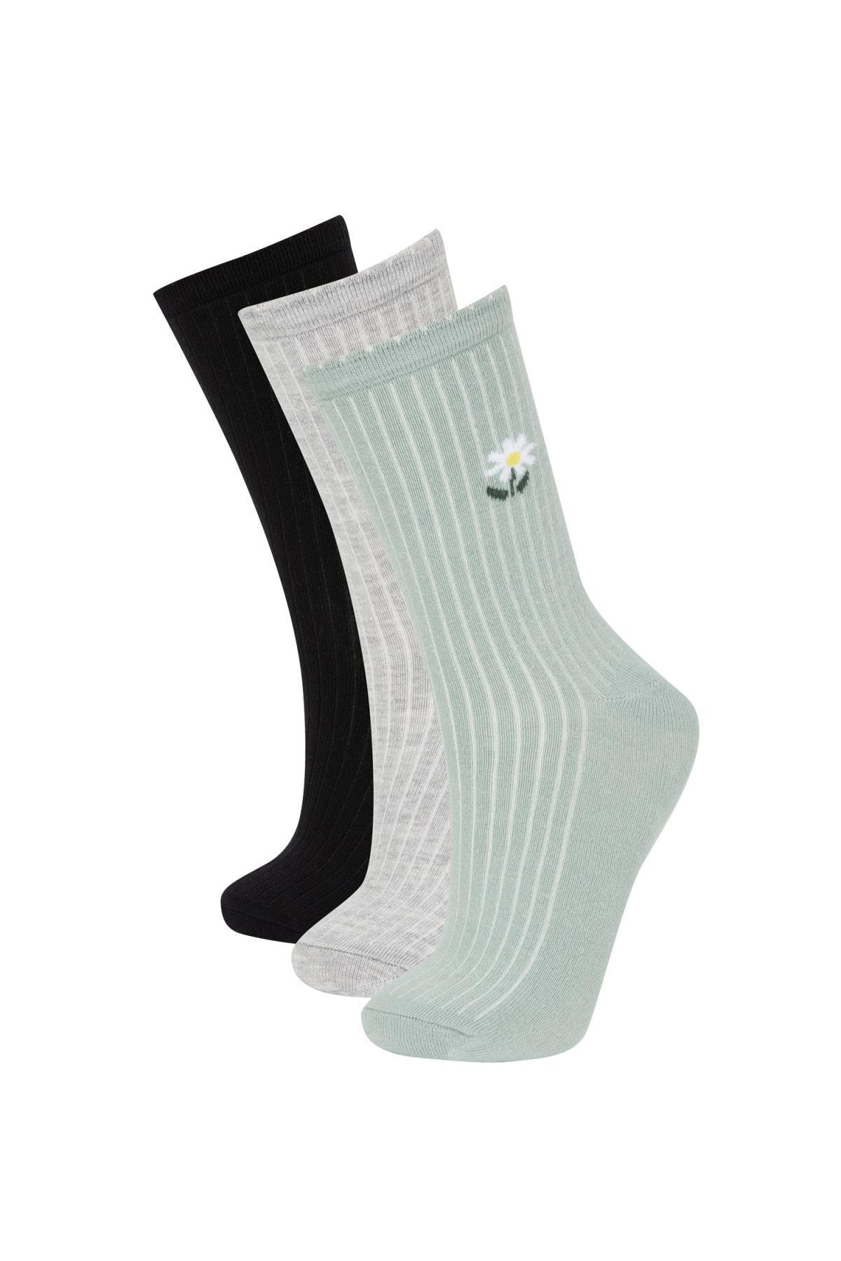 Gün boyu rahat ve konforlu kullanım sağlayan desenli modeli ile sporda tenis oynarken tarzınızı yansıtacağınız kombinlerinizin parçası olacak DeFacto Kadın Pamuklu 3'lü Uzun Çorap
