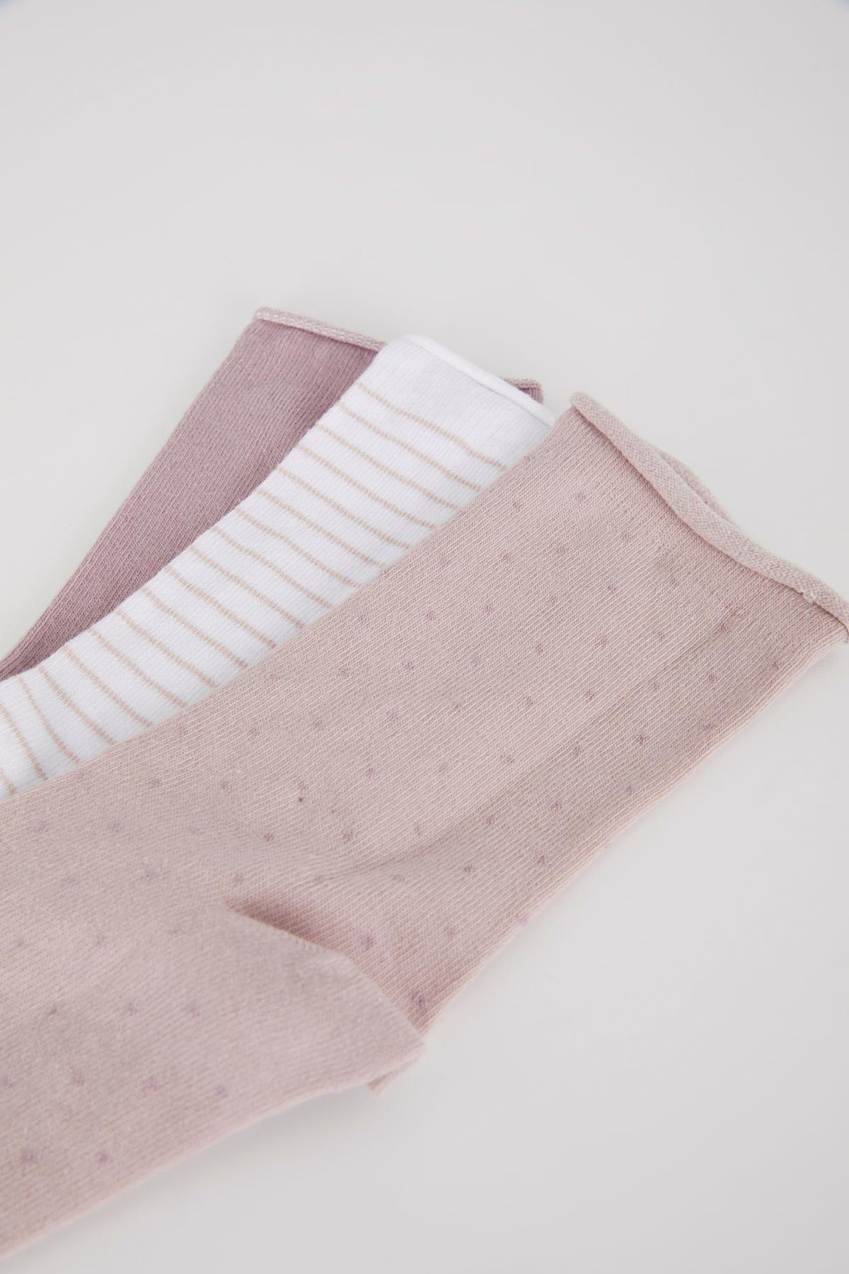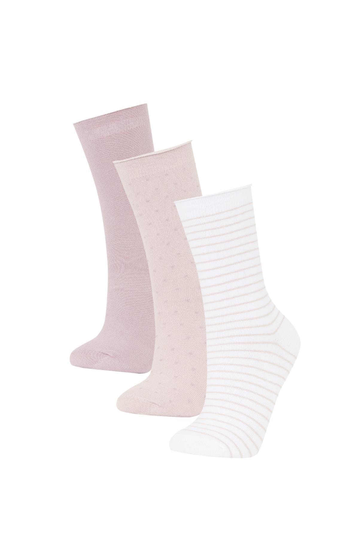 Gün boyu rahat ve konforlu kullanım sağlayan desenli modeli ile sporda tenis oynarken tarzınızı yansıtacağınız kombinlerinizin parçası olacak DeFacto Kadın Pamuklu 3'lü Uzun Çorap