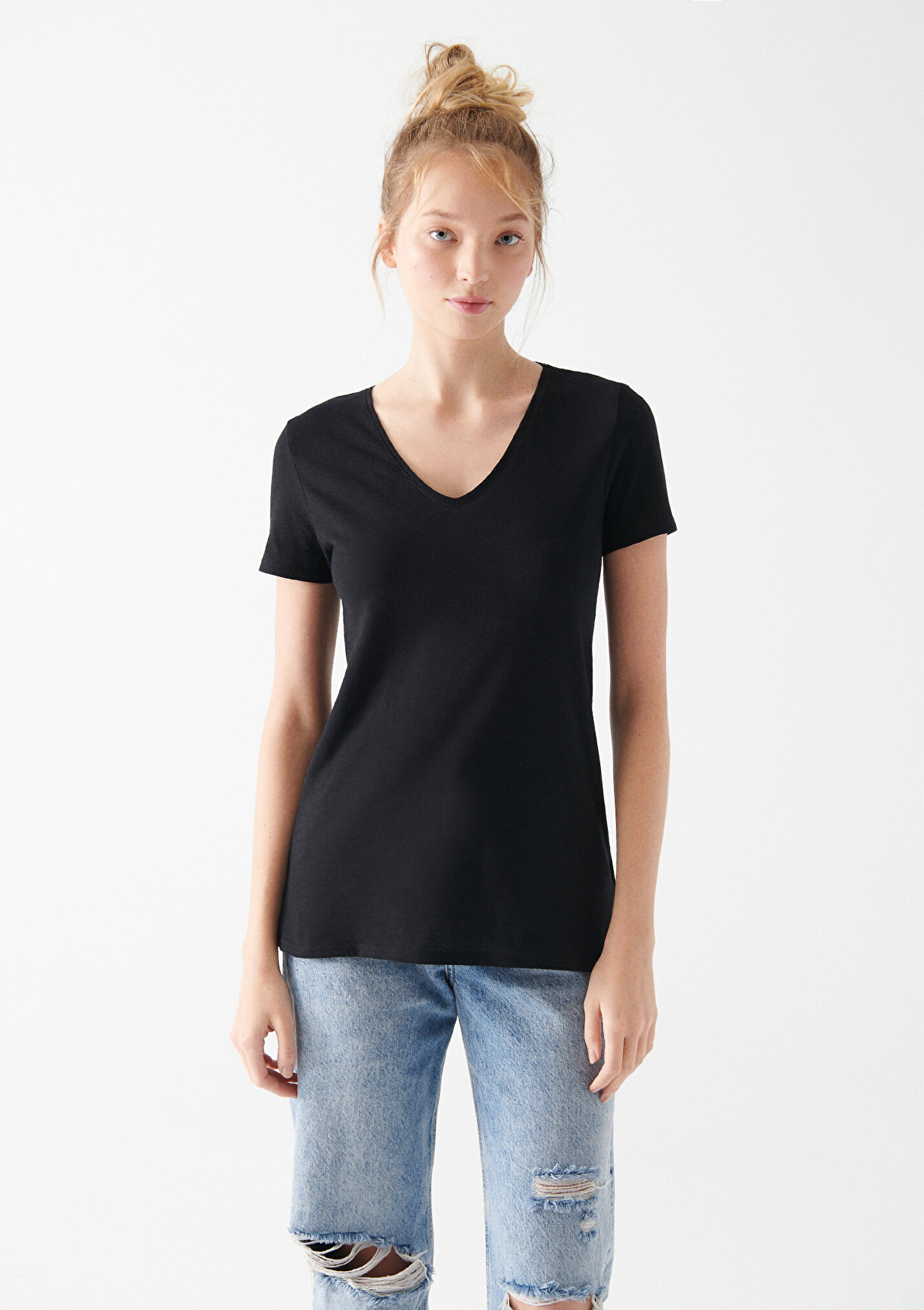 خرید اینترنتی تی شرت آستین کوتاه زنانه سیاه ماوی 1611371