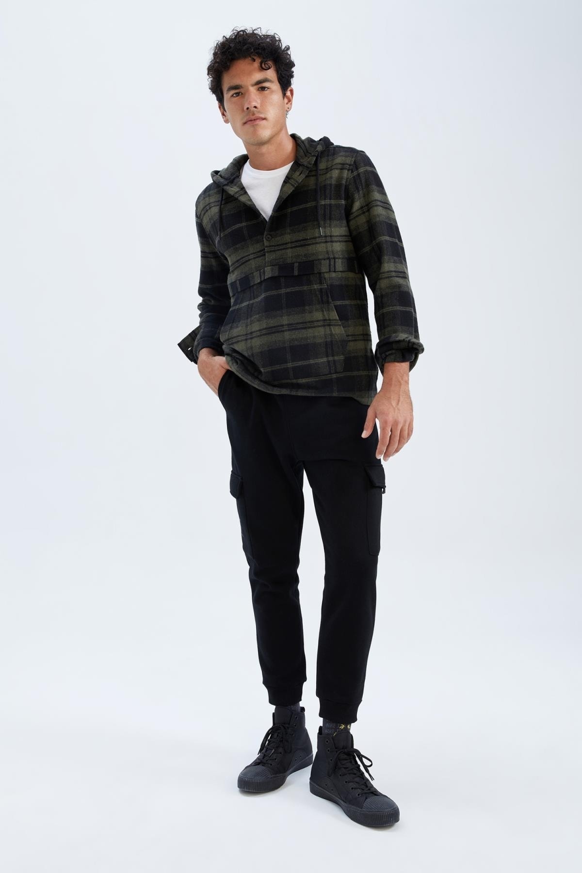 Pamuk karışımlı kumaşı, beli lastikli ve ayarlanabilir ipli, basic, kargo cepli, paçaları esnek ribanalı, tişörtler ve spor ayakkabılar ile kombinleyip kendinize spor bir hava katabileceğiniz defacto erkek regular fit esnek paça kargo cepli eşofman altı.