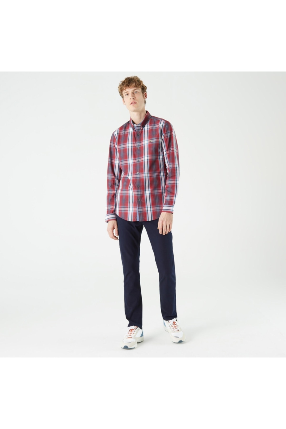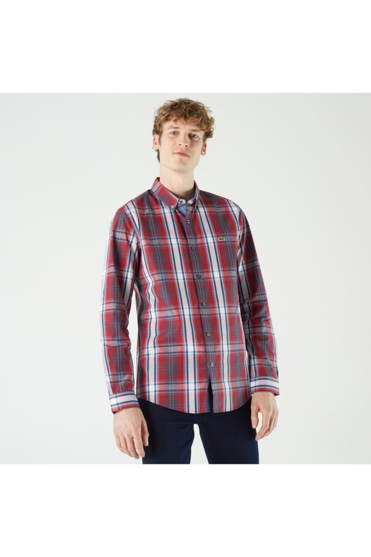 خرید اینترنتی پیراهن آستین بلند مردانه زرشکی لاکوست CH0204