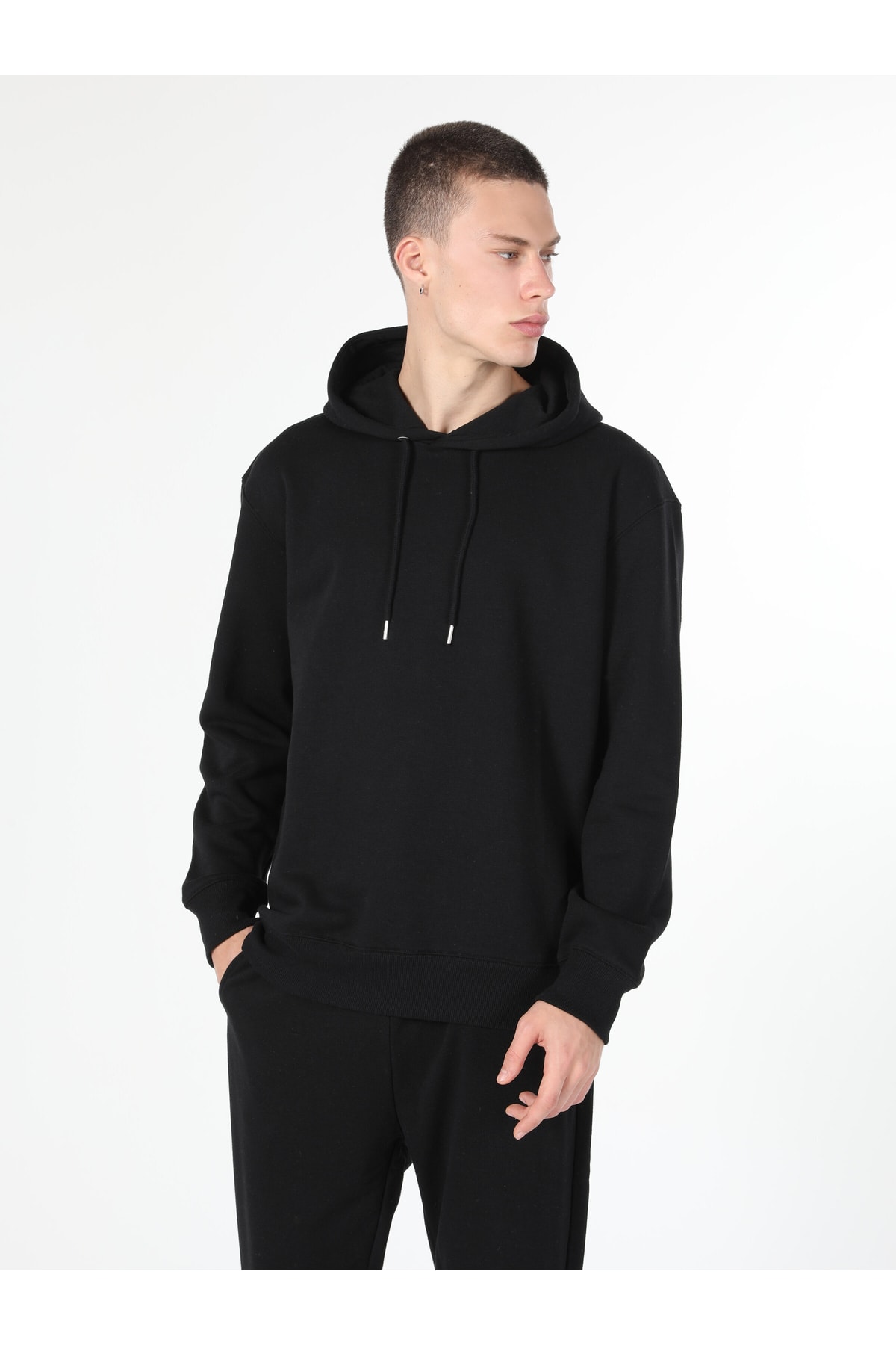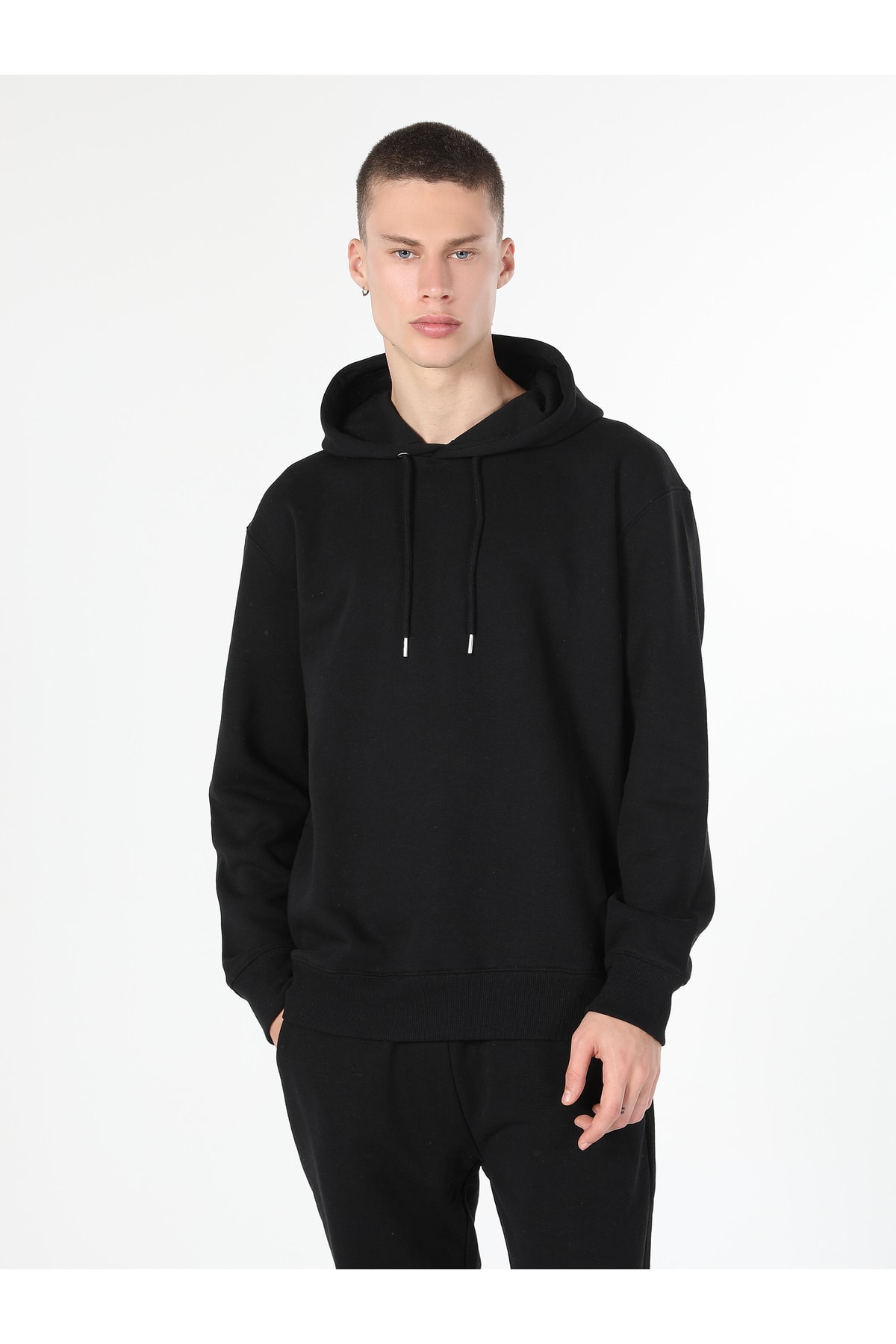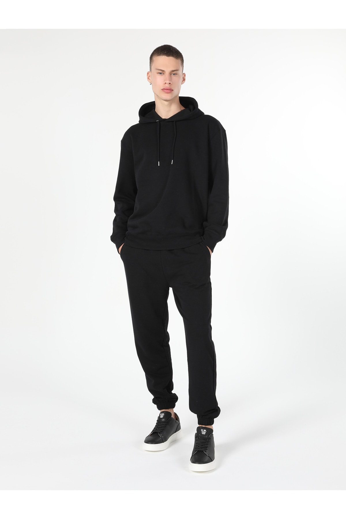 Regular Fit Kapüşonlu Siyah Erkek Sweatshirt