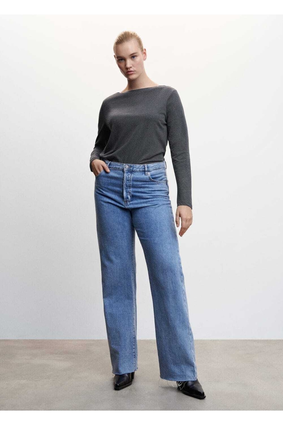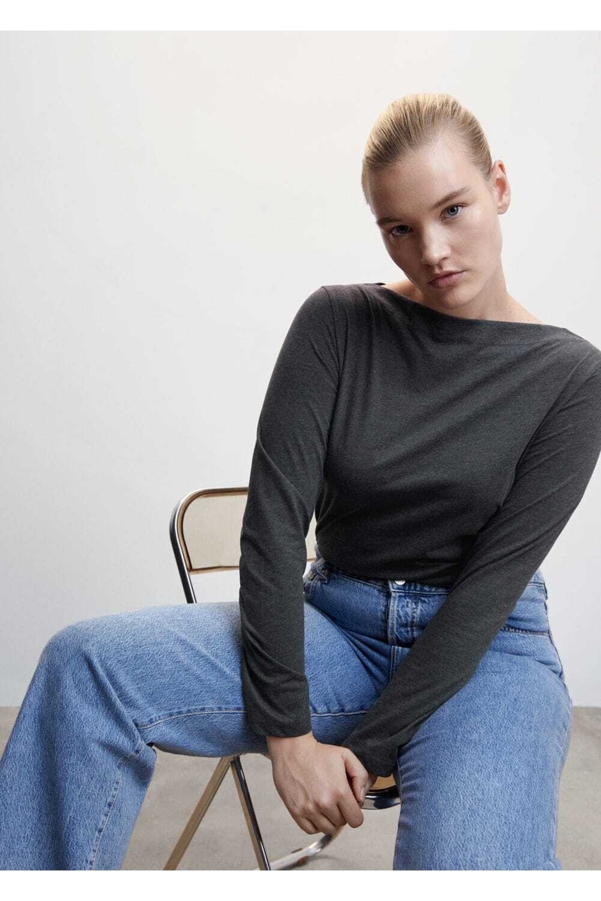 خرید اینترنتی تیشرت آستین بلند زنانه نوک مدادی مانگو TYC00556171050