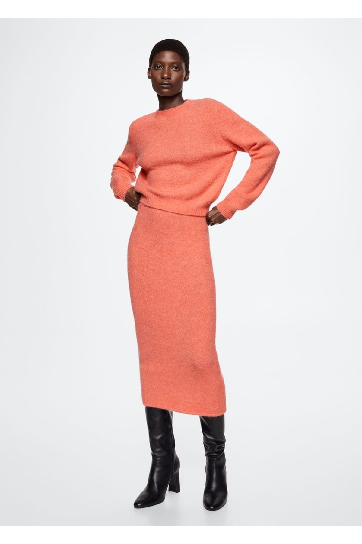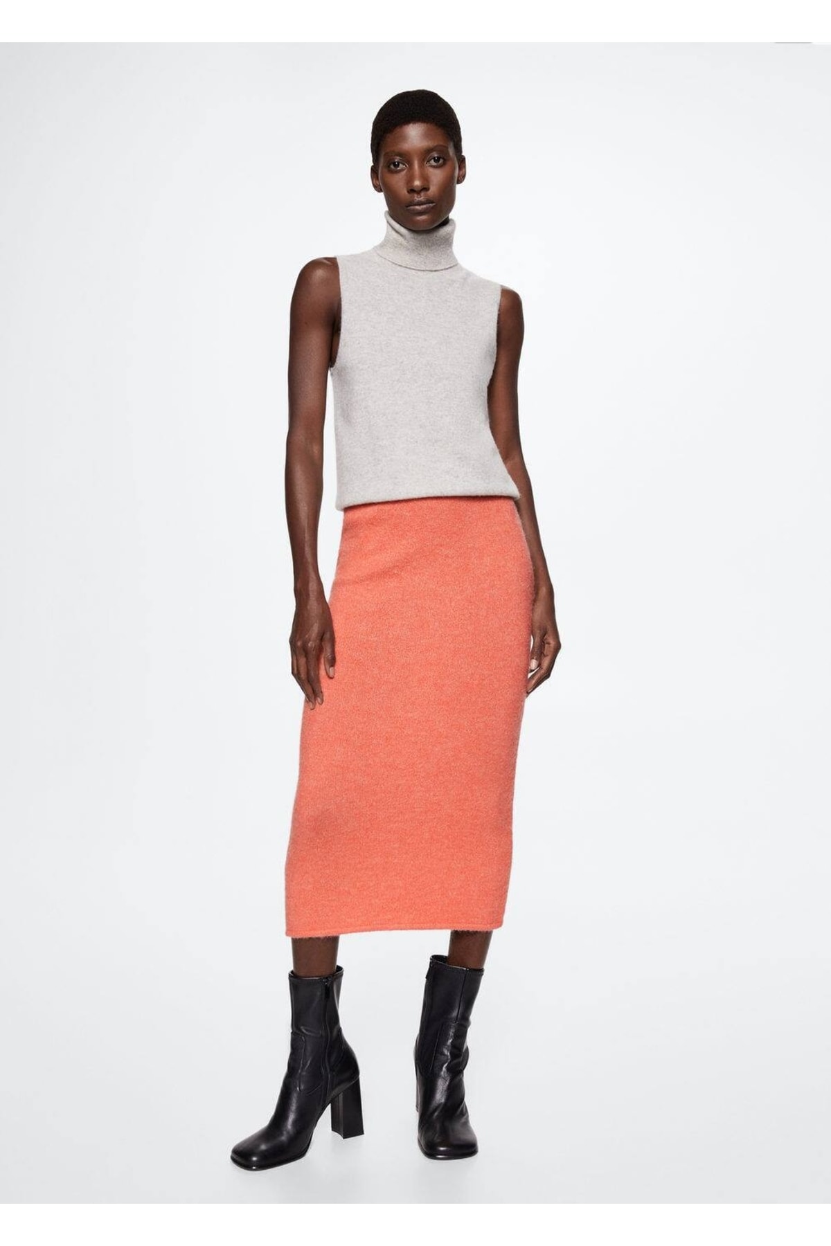 Etek .-- salmon. Orta kalınlıkta örgü, Karma yün kumaşlı, Alpaka yün karışımlı kumaş, Kalem model, Midi boy, Elastik bel, Total look, Committed Koleksiyonu, Committed etiketli giysiler, çevresel etkilerinin azaltılarak, sürdürülebilir lifler veya süreçler kullanılarak üretilen ürünlerdir. Mango'nun hedefi, doğaya daha fazla adanmış olan uygulamaları desteklemek ve koleksiyondaki sürdürülebilir giysi sayısını arttırmaktır. 48% akrilik,30% polyester,10% yün,10% alpaka,2% elastan. Yan dikiş uzunluğu 86.0 cm. ELDE MAKS. 30°C'DE YIKAYIN, ÇAMAŞIR SUYU KULLANMAYIN, MAKS. 110°C İLE ÜTÜLEYİN, KURU TEMİZLEME YAPILMAZ, KURUTMA MAKİNESİNDE KURUTULAMAZ