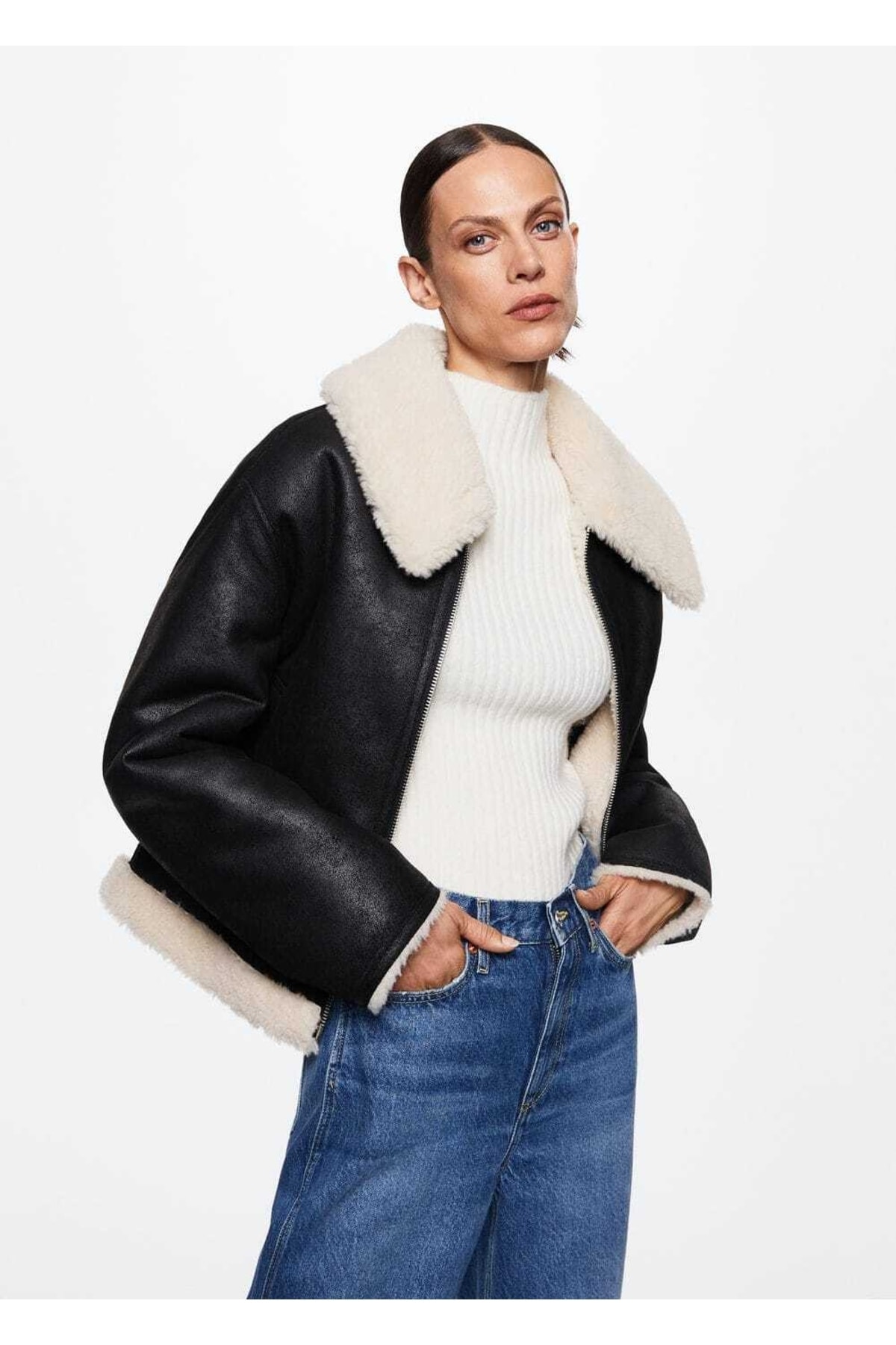 Ceket .-- splash. Düz model, Kısa boy, Çift taraflı model, Kürklü yaka, Uzun kollu, Önü fermuar kapamalı, Yan cepli, Astarlı. 100% polyester. Yan dikiş uzunluğu 31.7 cm, Arka uzunluk 62.7 cm. YIKANMAZ, ÇAMAŞIR SUYU KULLANMAYIN, ÜTÜLEMEYİN, PERKLOROETİLEN KURU TEMİZLEME UYGULAYIN, KURUTMA MAKİNESİNDE KURUTULAMAZ