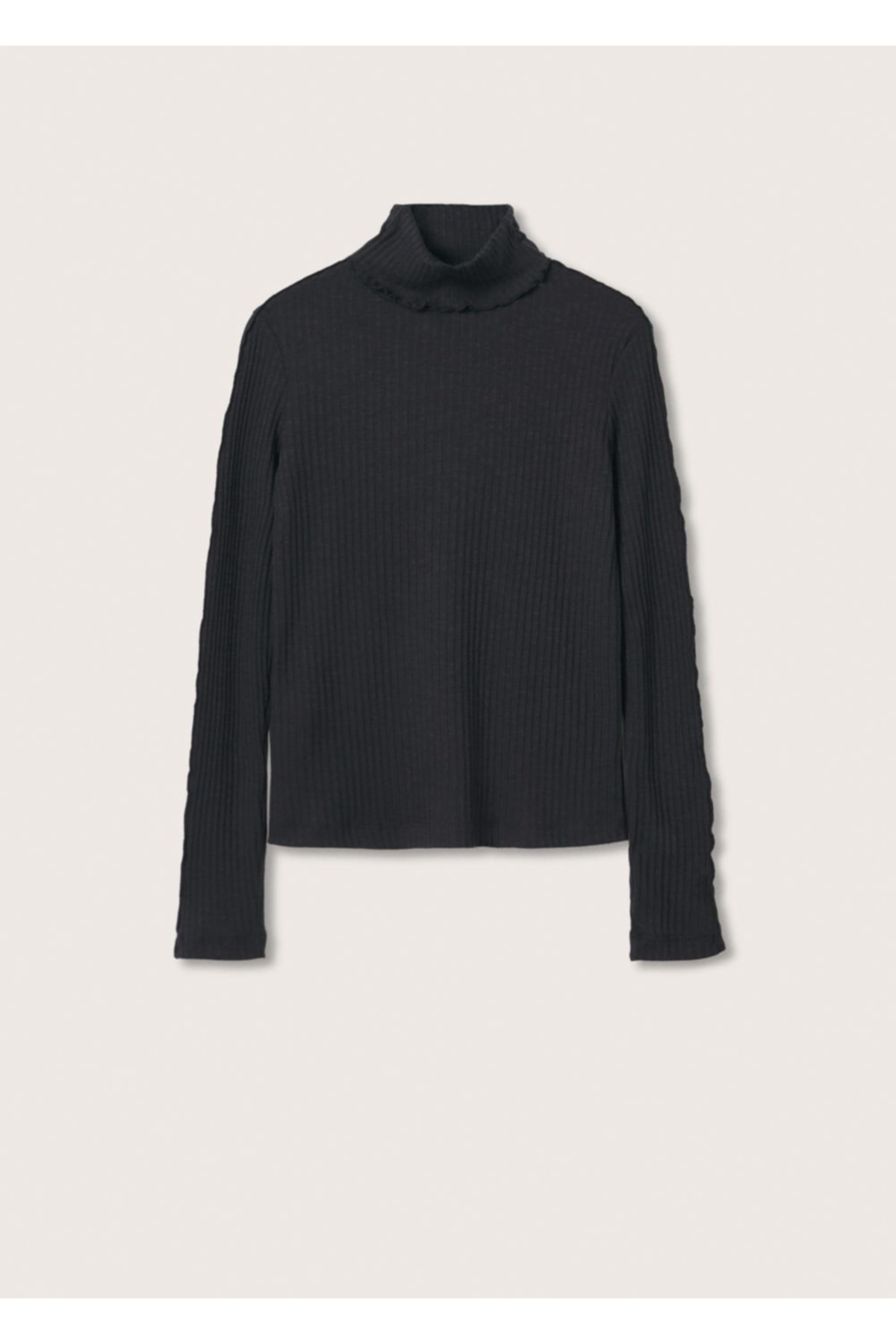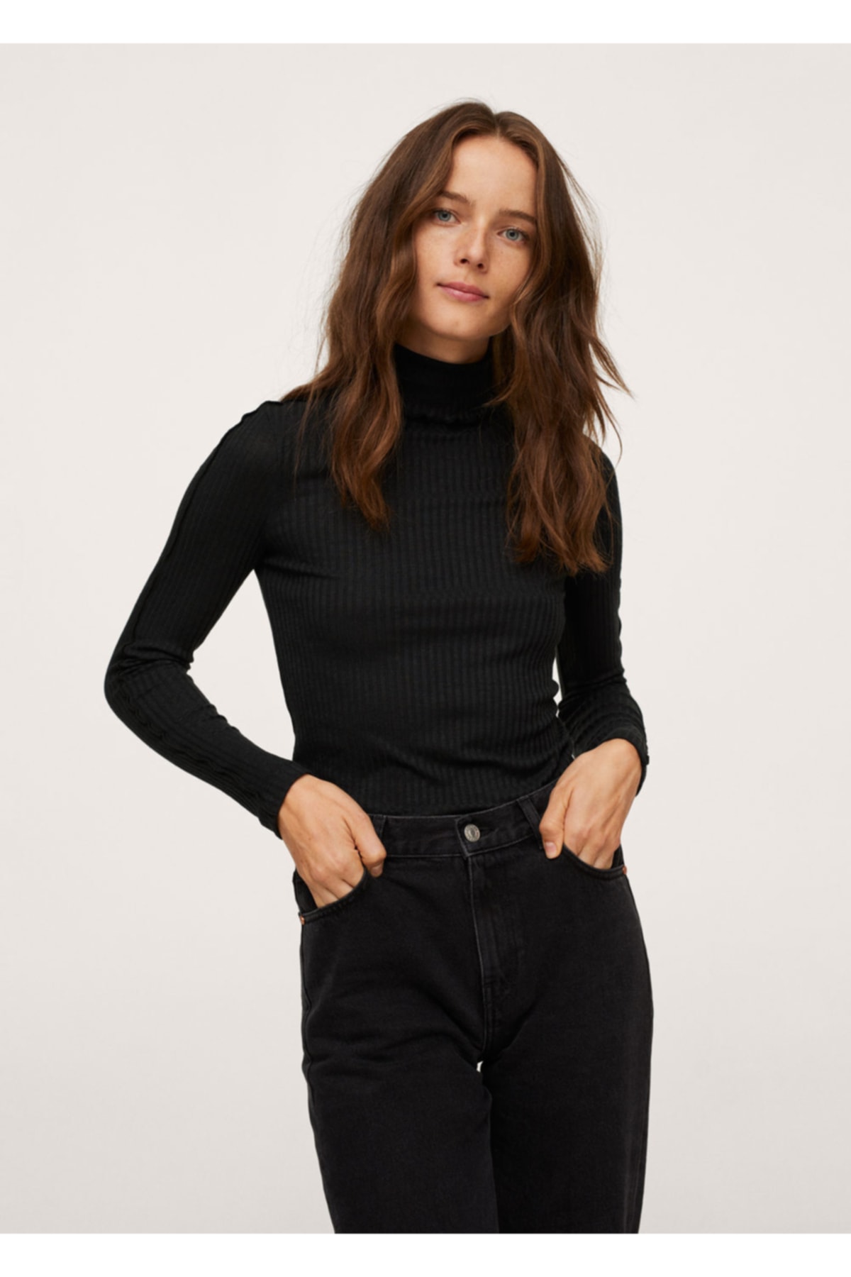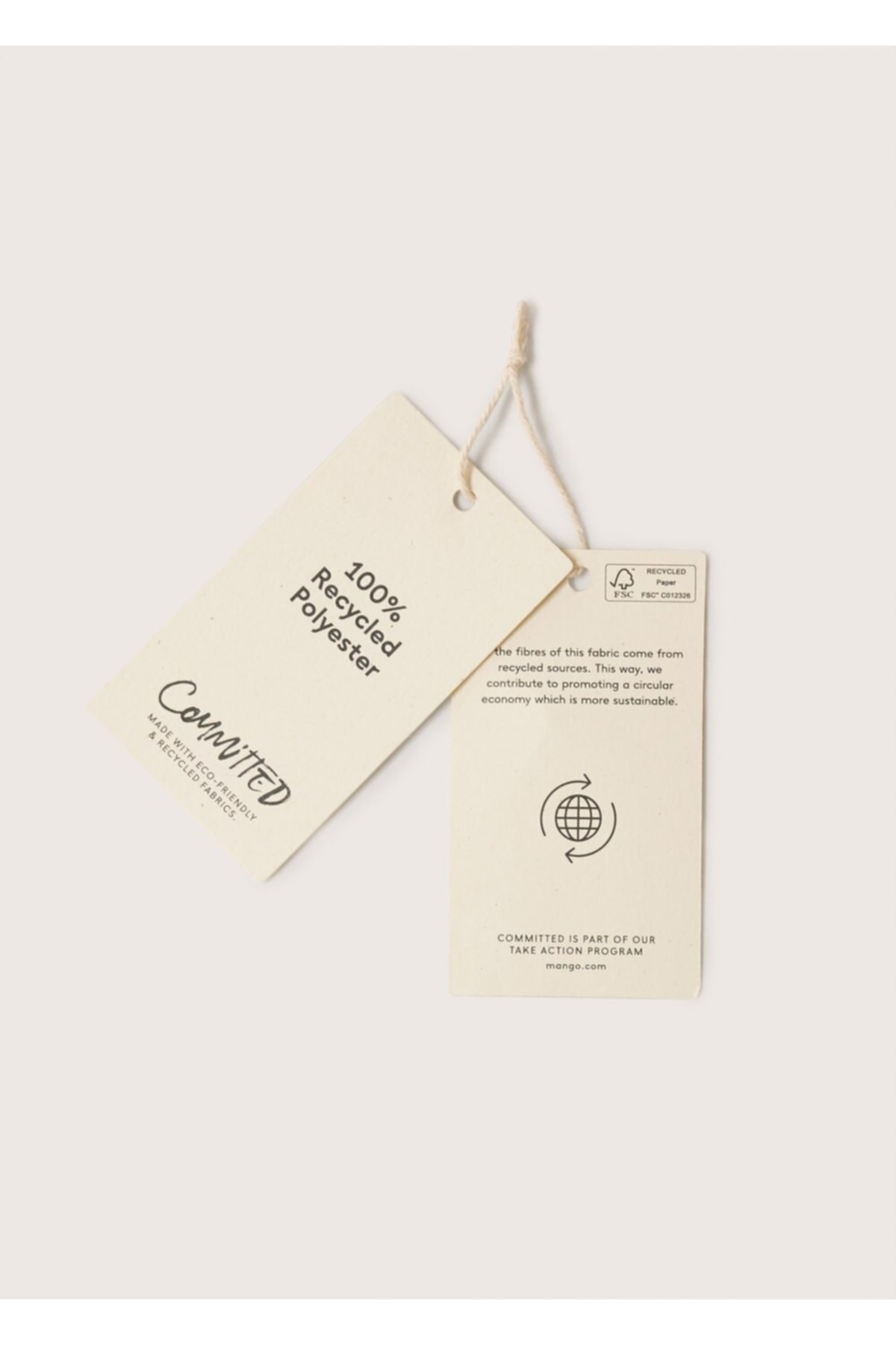 Tişört .-- abel. İnce kumaş, Lastikli model, Düz model, Yüksek yakalı, Uzun kollu, Committed etiketli giysiler, çevresel etkilerinin azaltılarak, sürdürülebilir lifler veya süreçler kullanılarak üretilen ürünlerdir. Mango'nun hedefi, doğaya daha fazla adanmış olan uygulamaları desteklemek ve koleksiyondaki sürdürülebilir giysi sayısını arttırmaktır. 95% polyester,5% elastan. Yan dikiş uzunluğu 37.4 cm, Arka uzunluk 59.2 cm