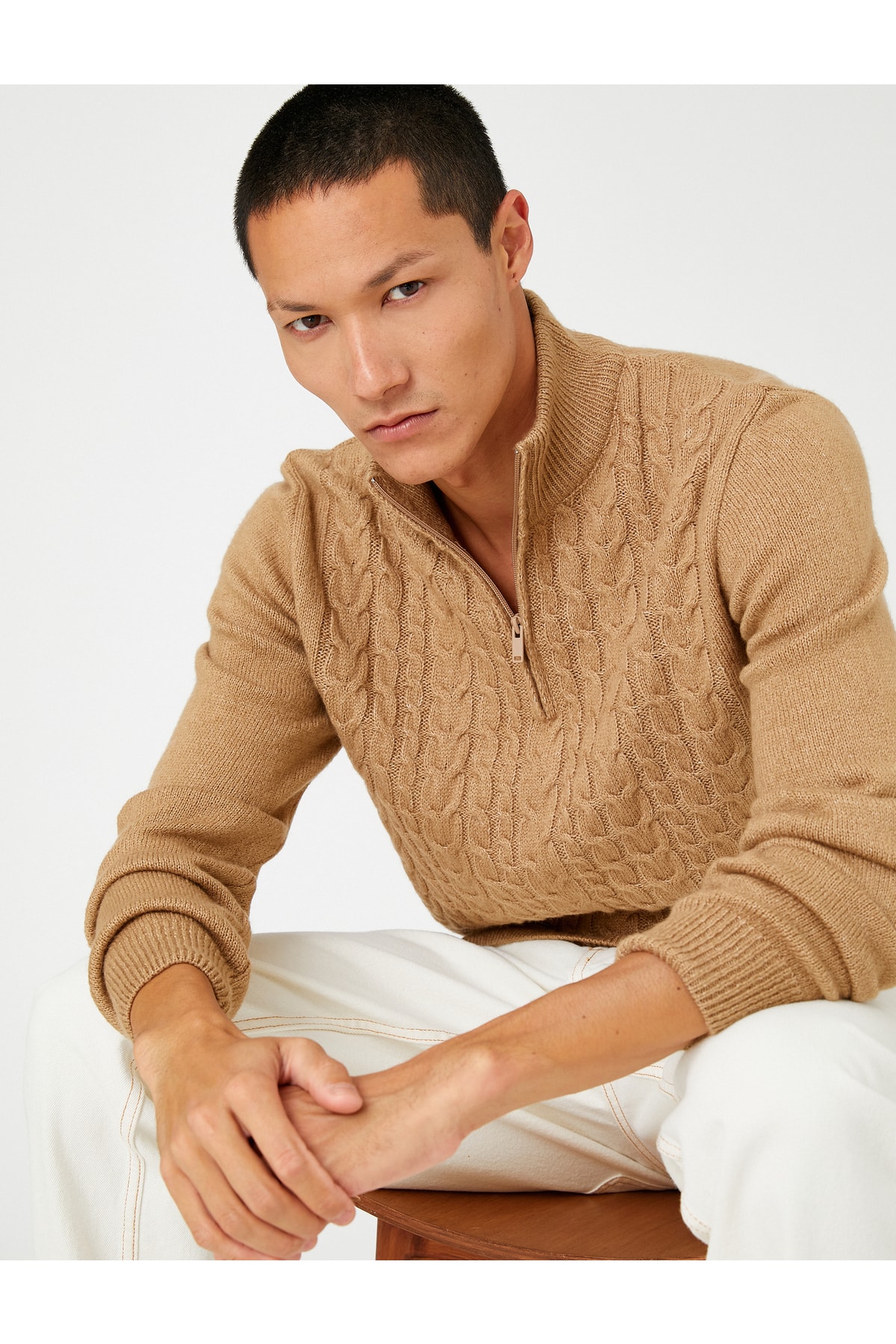- نام : Basic Kazak Dik Yaka Yarım Fermuarlı Örgü Detaylı
