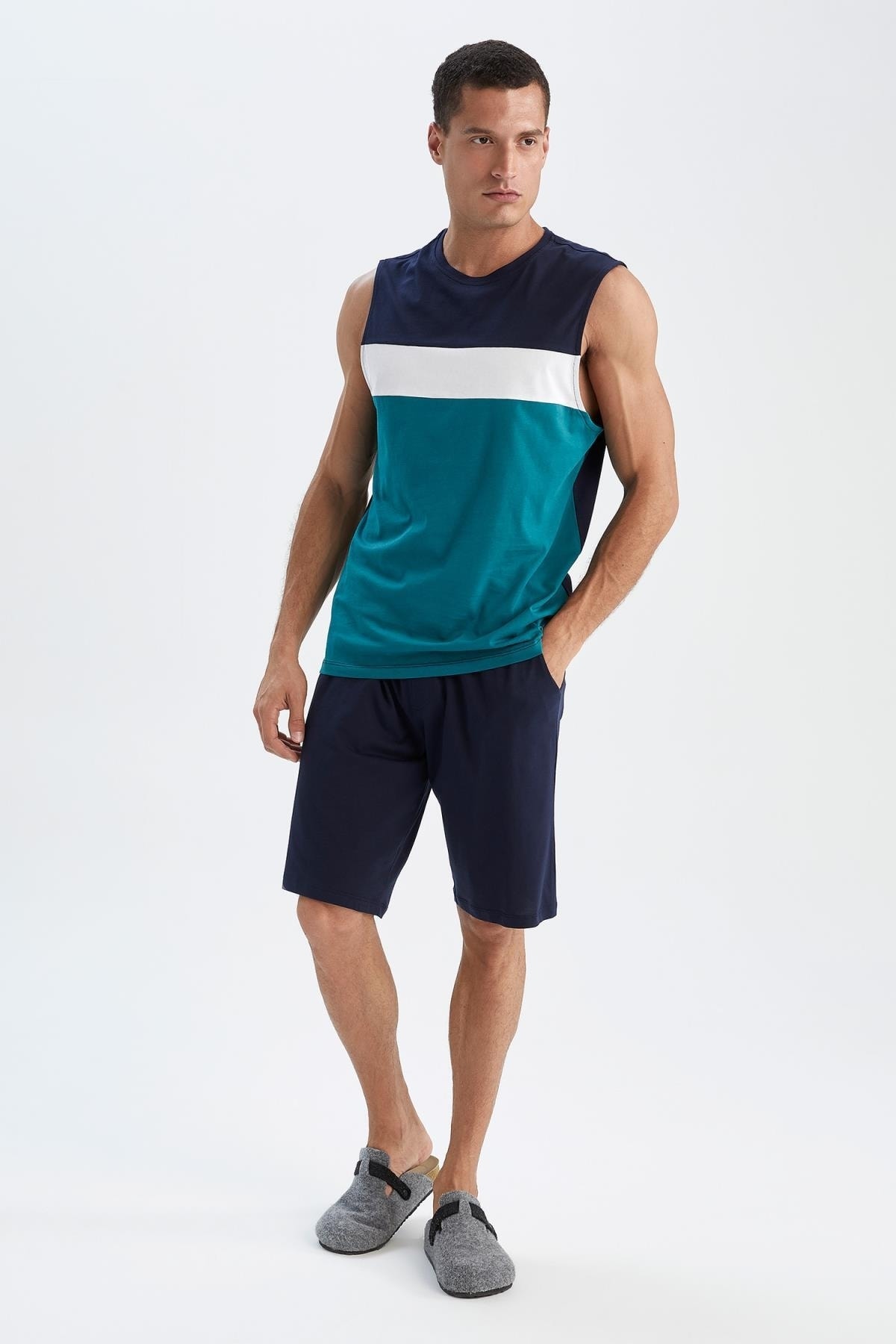 Konforlu kullanım sağlayan pamuklu kumaşı, sadeliği ve şıklığı ön plana çıkaran basic tasarımı ile bahar ve yaz aylarında evde ya da dışarda tişört ve atletler ile birbirinden dinamik kombinler oluşturabileceğiniz DeFacto Erkek Defacto Fit Regular Fit Bisiklet Yaka Pijama Takımı ile tarzınıza dinamik bir görünüm katabilirsiniz!