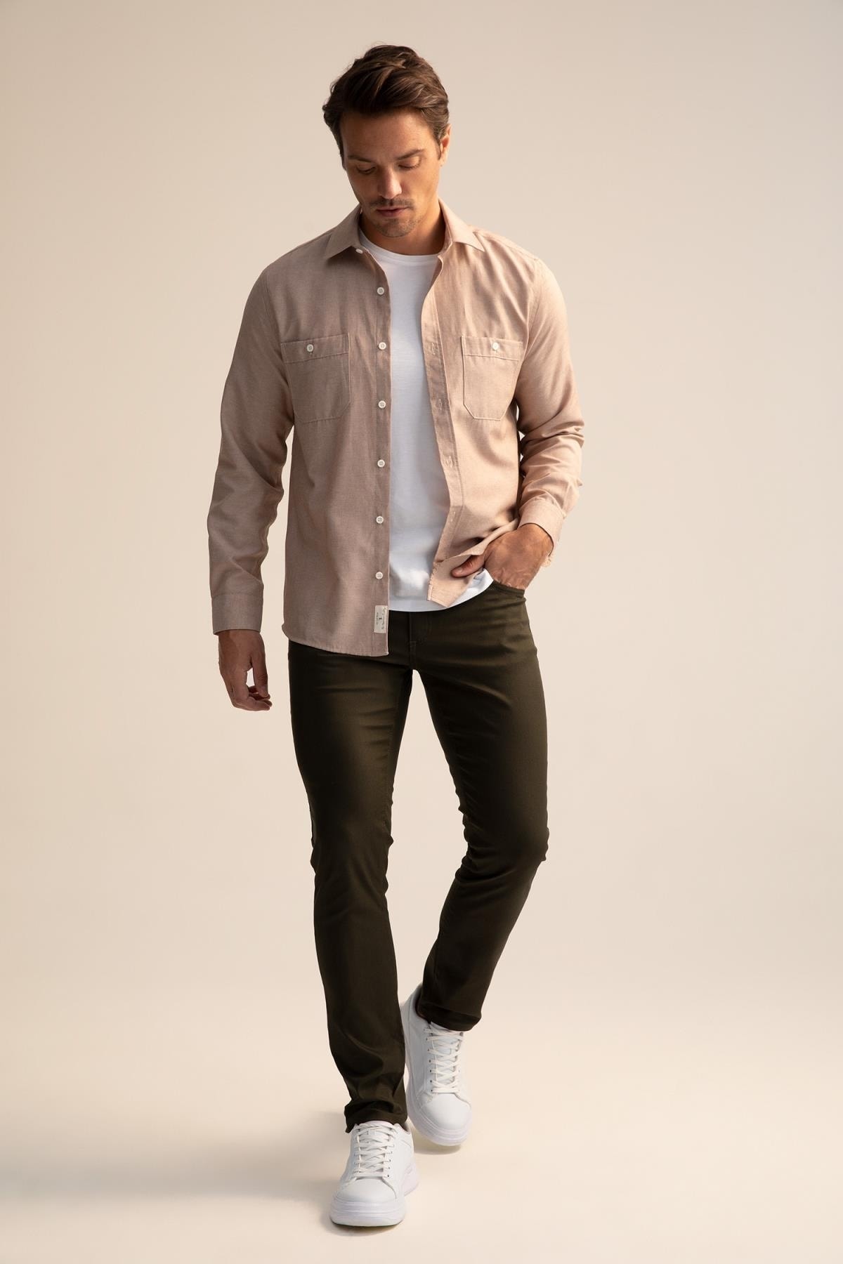 Gün boyunca rahat ve konforlu kullanıma sahip pamuk karışımlı gabardin kumaştan üretilmiştir. Ağ kısmından paçaya kadar inen kesimi ve esnek dokulu kumaşı ile maskülen bir görünüm sağlar. Rahat kombinlenir, normal bel, düz, boru paça, katlama detaylı, şık ve stil sahibi tasarımı ile günlük hayatınızda, ofiste, davetlerde gömlekler, tişörtler ve blazer cekeler ile harika görünen kombinler oluşturabileceğiniz DeFacto Erkek Slim Fit Chino Pantolon.