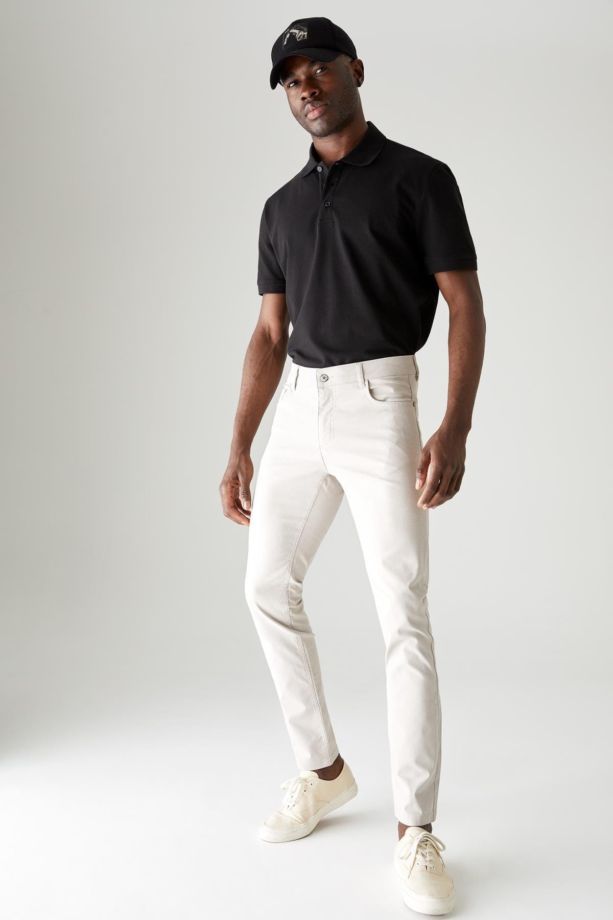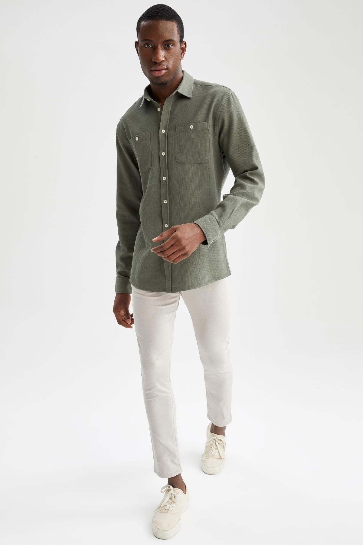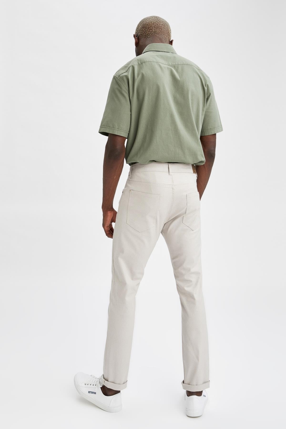 Gün boyunca rahat ve konforlu kullanıma sahip pamuk karışımlı gabardin kumaştan üretilmiştir. Ağ kısmından paçaya kadar inen kesimi ve esnek dokulu kumaşı ile maskülen bir görünüm sağlar. Rahat kombinlenir, normal bel, düz, boru paça, katlama detaylı, şık ve stil sahibi tasarımı ile günlük hayatınızda, ofiste, davetlerde gömlekler, tişörtler ve blazer cekeler ile harika görünen kombinler oluşturabileceğiniz DeFacto Erkek Slim Fit Chino Pantolon.
