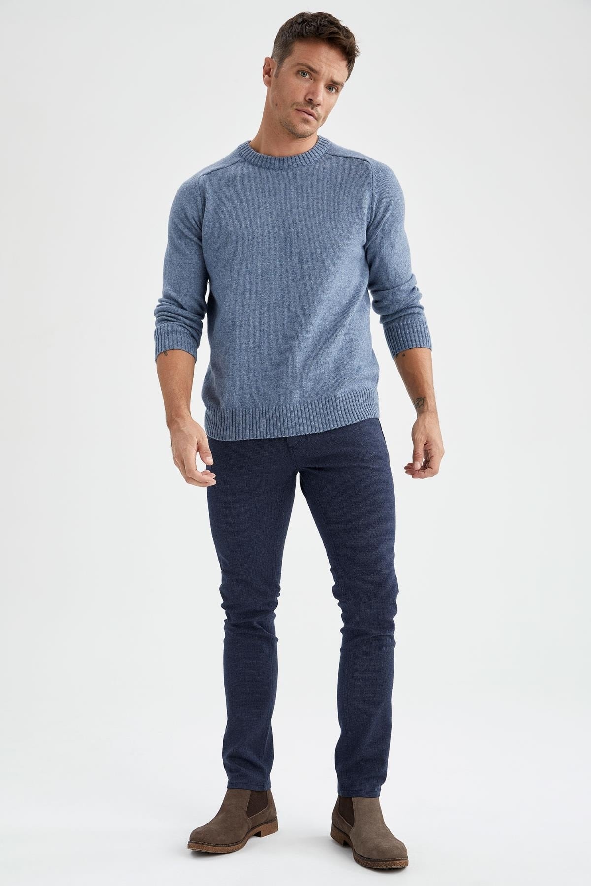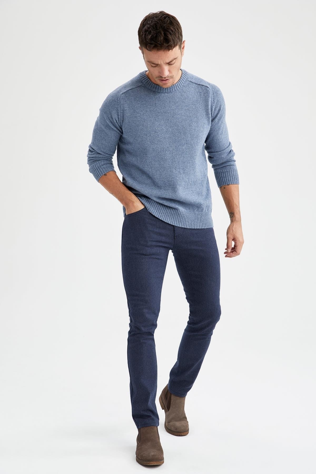 Normal Bel, dar kalıp, konforlu ve rahat kullanım sağlayan denim pamuklu kumaştan üretilmiştir. 5 cepli, bedene oturabilen dar kalıp, dinamik ve enerjik görünmek isteyenlerin tercihi olacak, tişört, swearshit ve spor ayakkabılar ile harika kombinler oluşturabileceğiniz DeFacto Slim Fit Yün Görünümlü Esnek Pantolon.