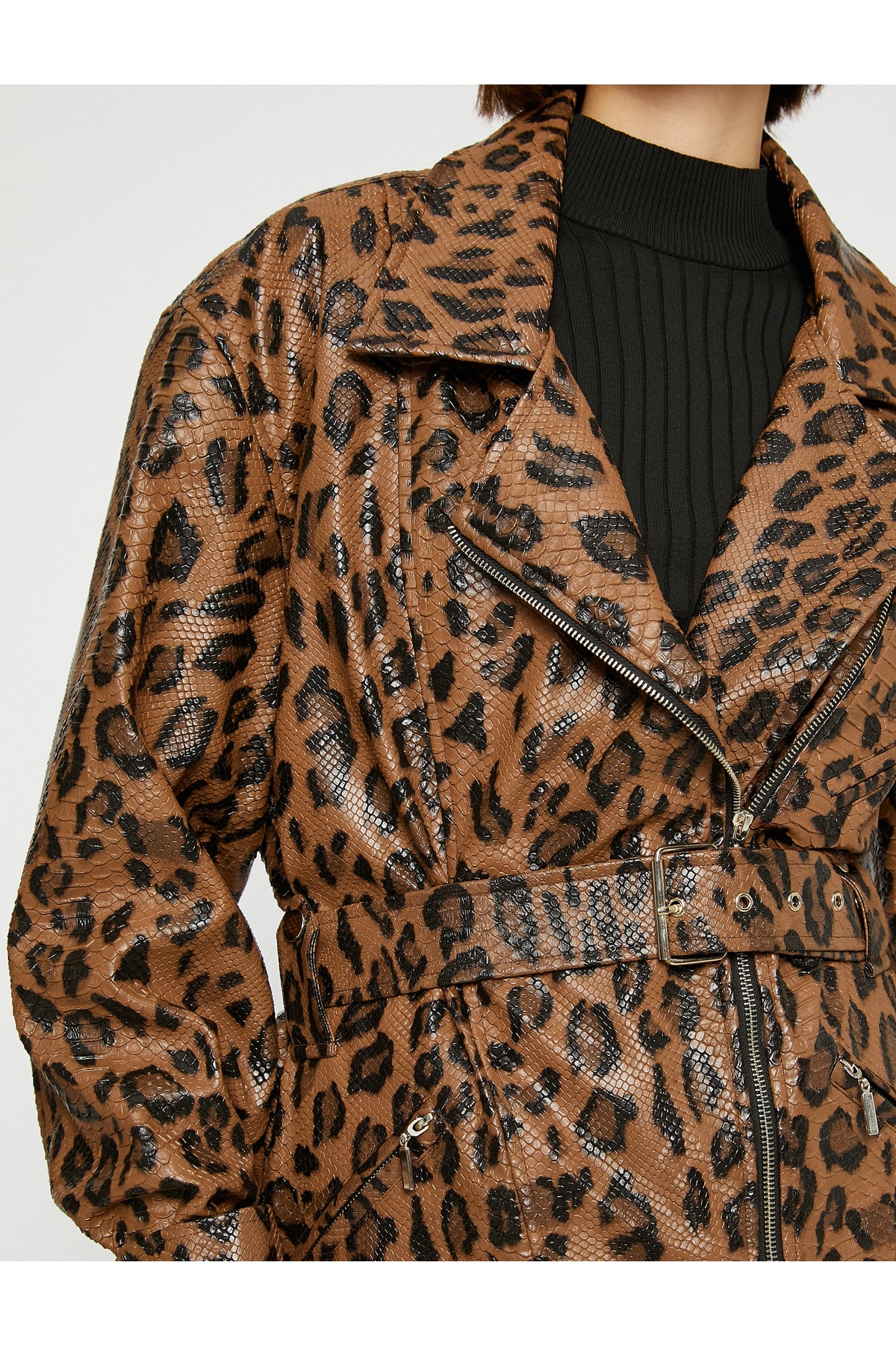 - نام : Ece Sükan X - Leopar Deri Görünümlü Oversize Biker Ceket