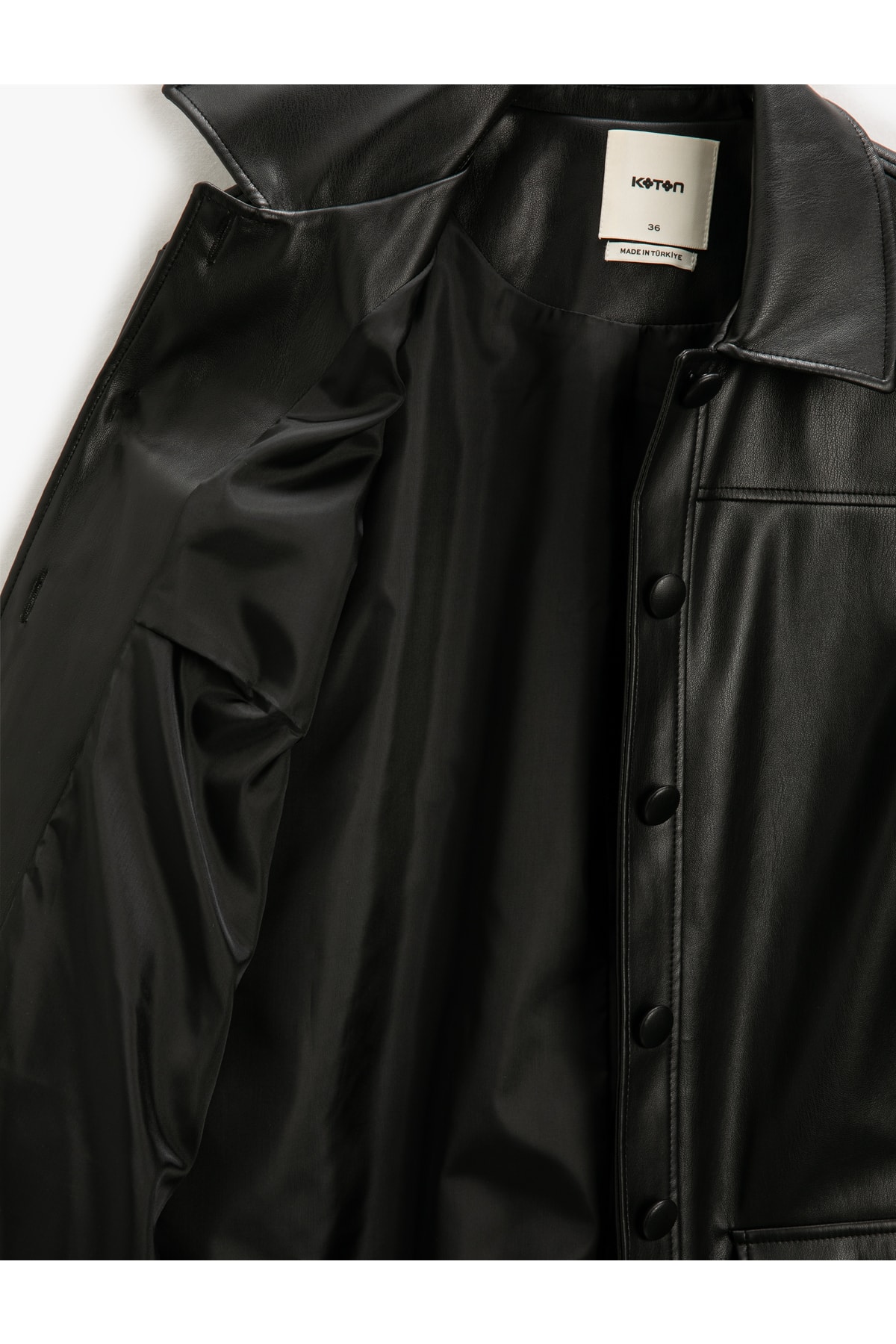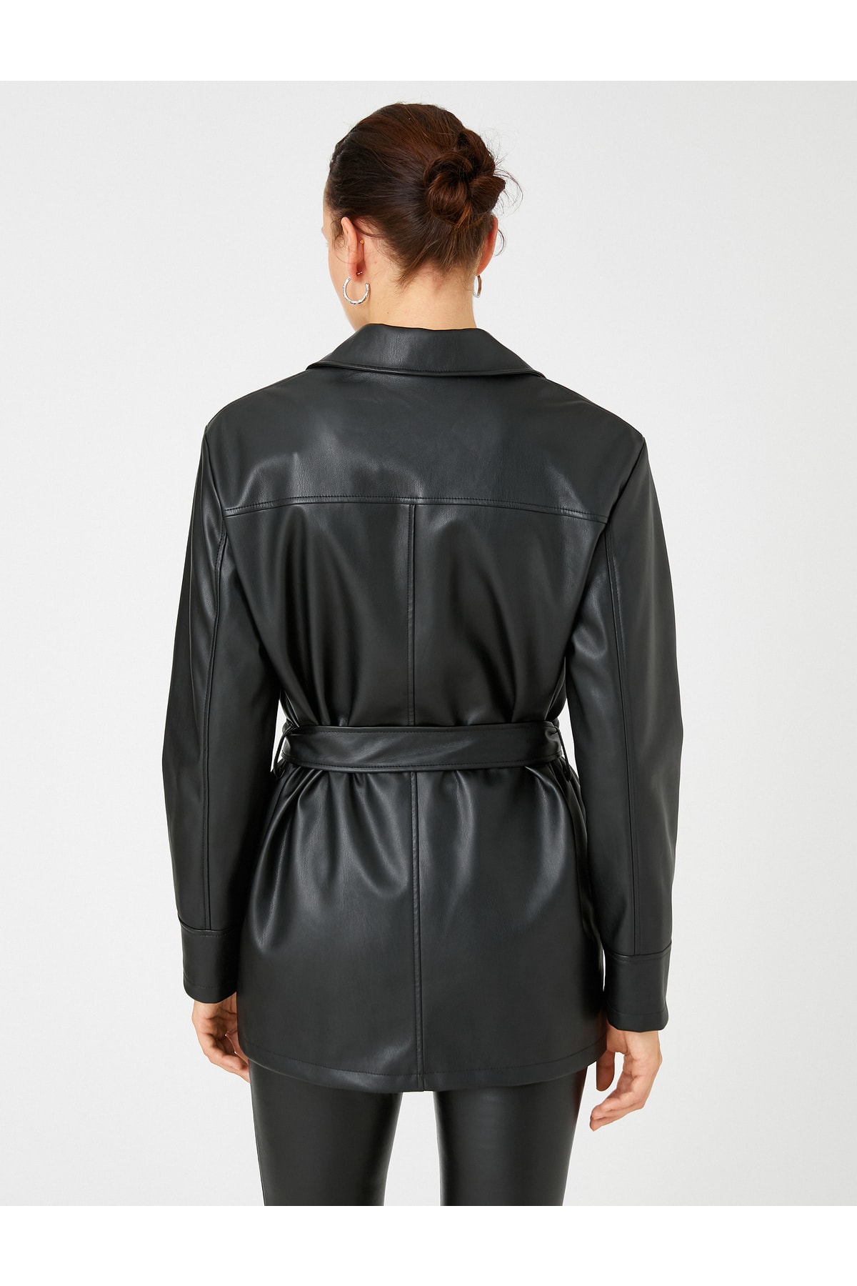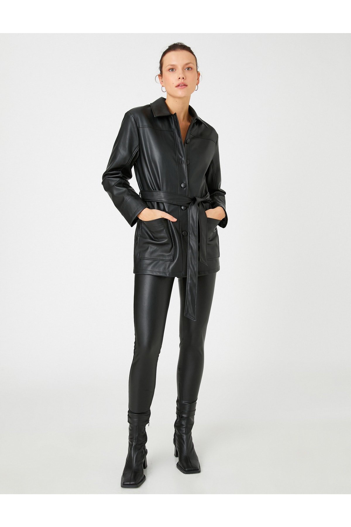 - نام : Oversize Deri Görünümlü Ceket Gömlek Yaka Kuşaklı