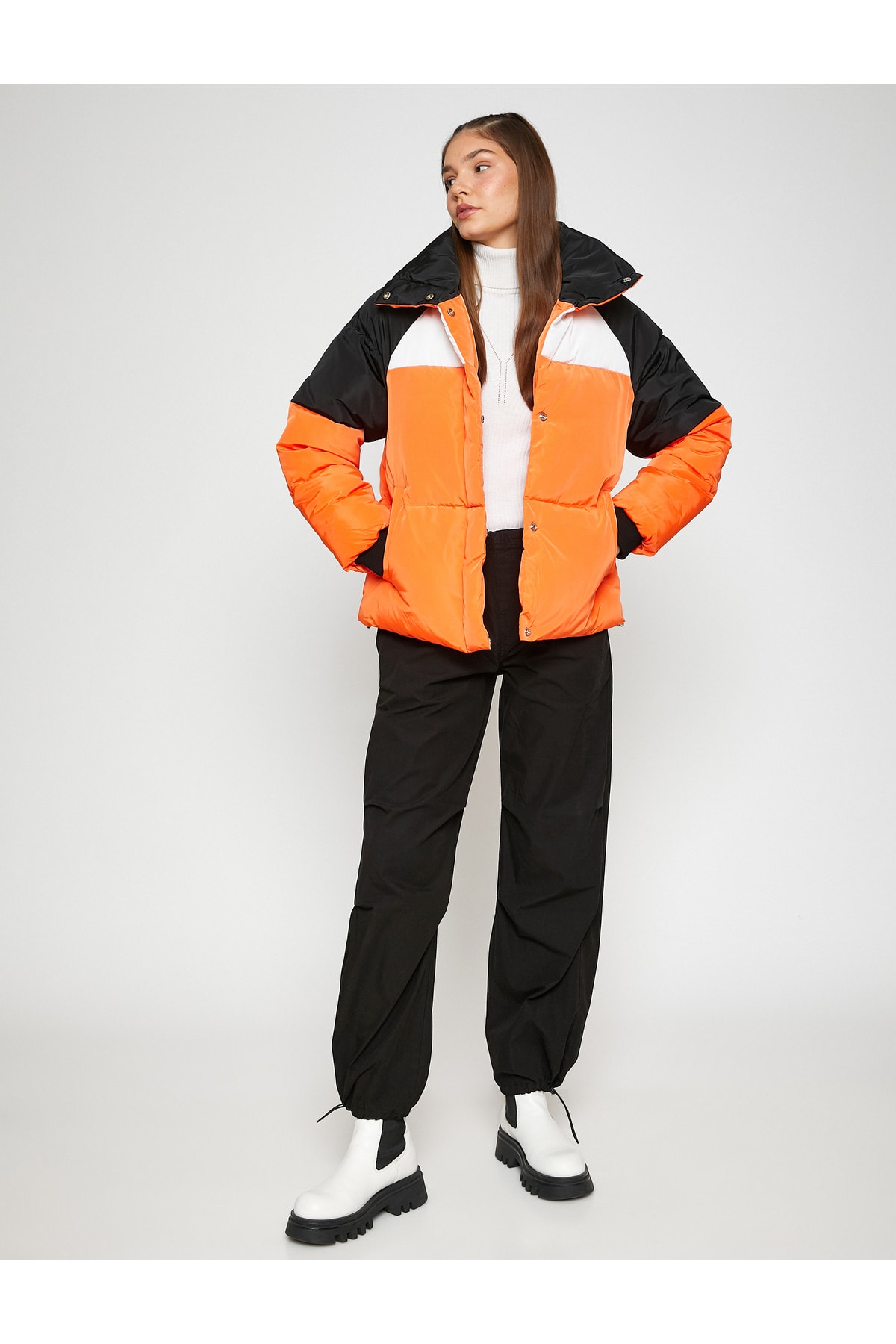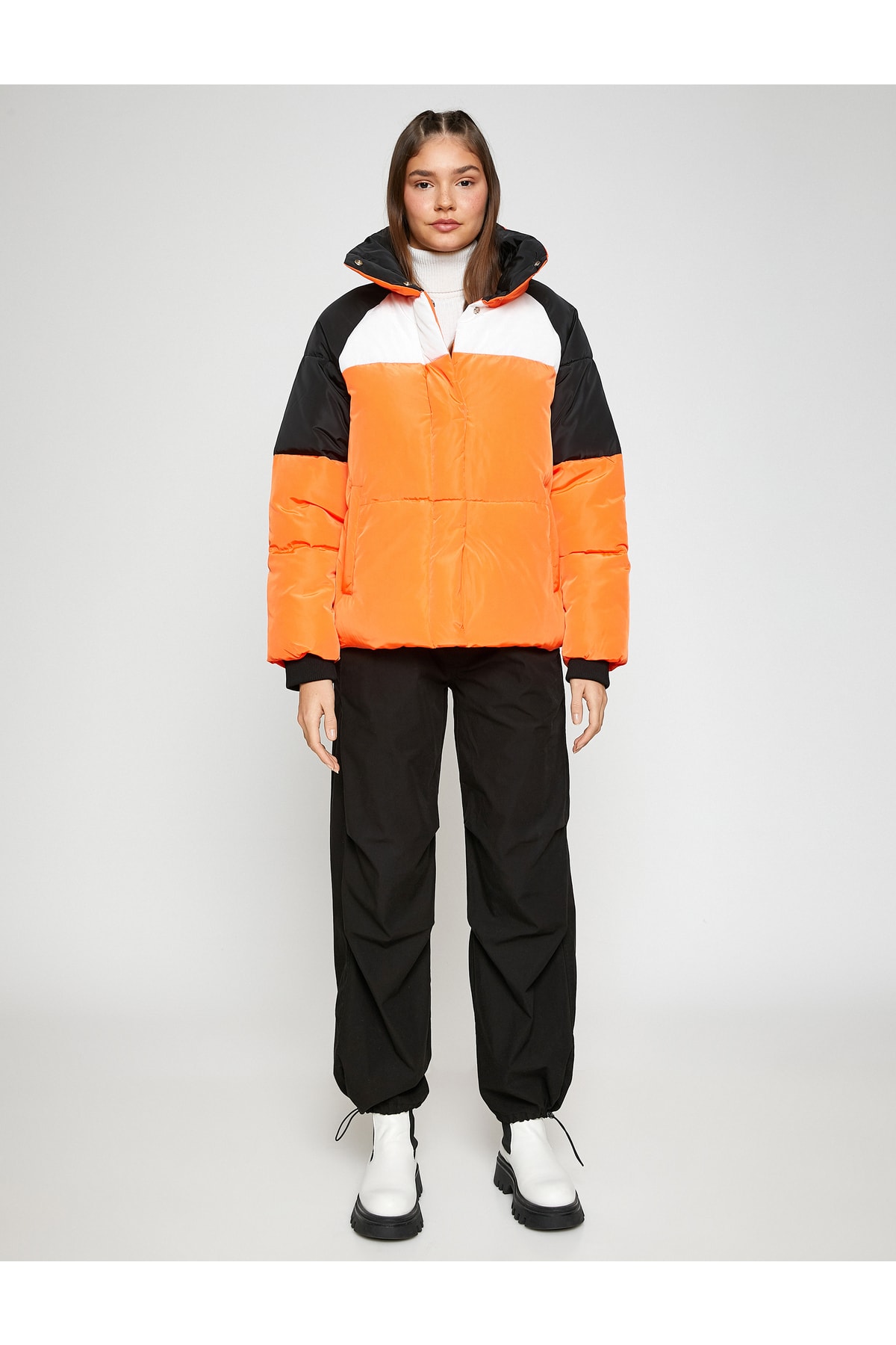 - نام : Kısa Şişme Mont Dik Yaka Cep Detaylı Ribanalı