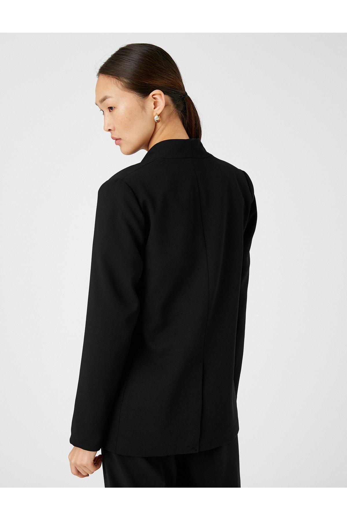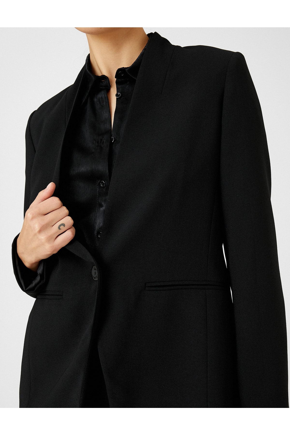 - نام : Yakasız Blazer Ceket Tek Düğmeli Cep Detaylı