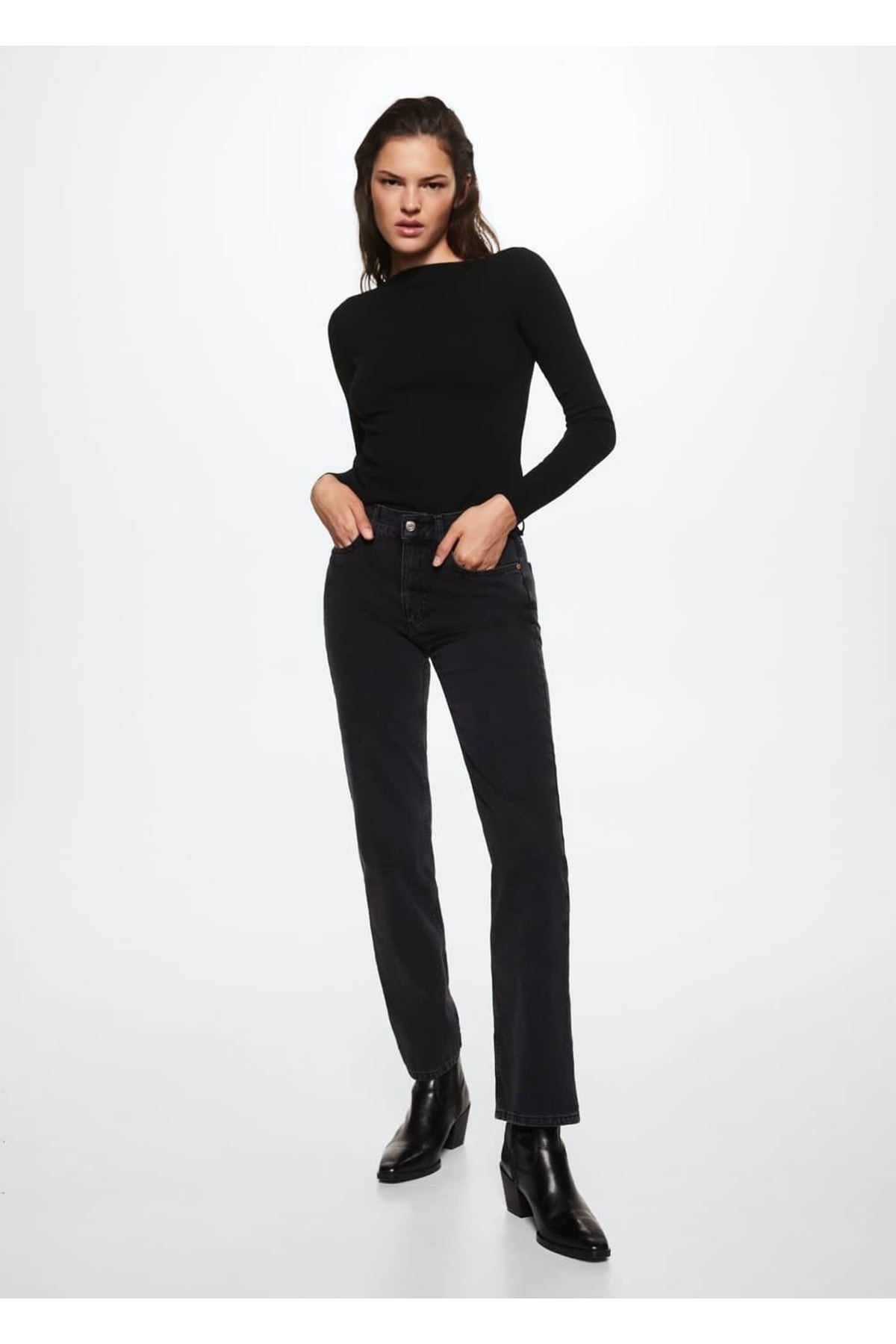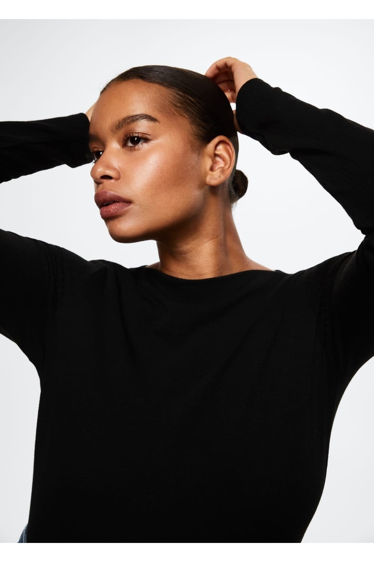 خرید اینترنتی تیشرت آستین بلند زنانه سیاه مانگو 37034381
