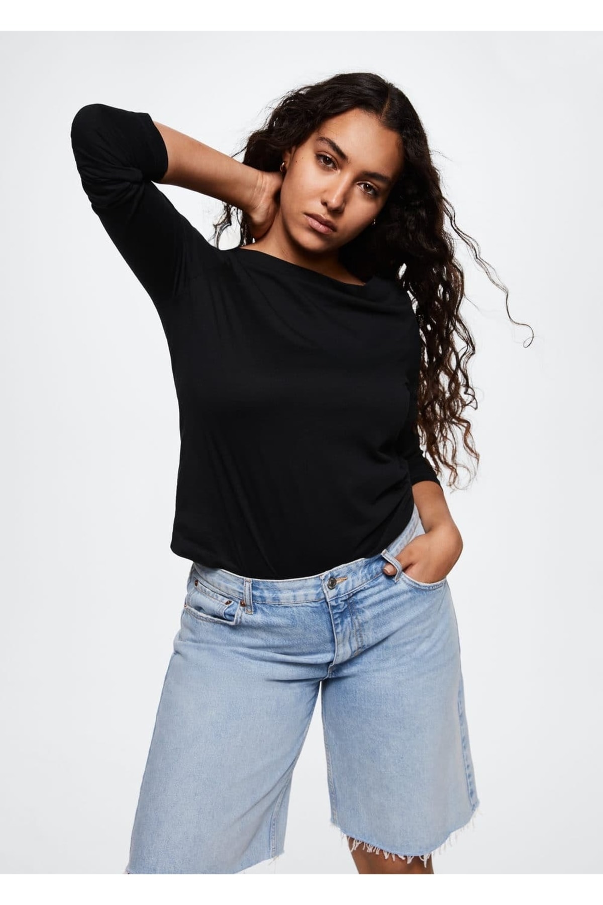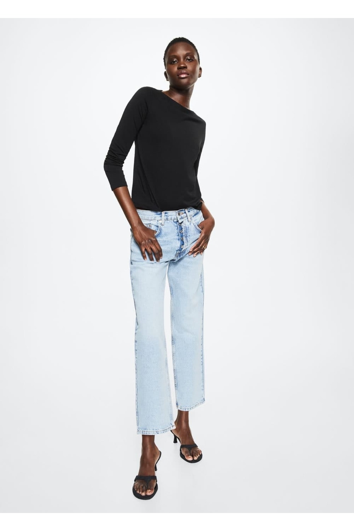خرید اینترنتی تیشرت آستین بلند زنانه سیاه مانگو 37023775