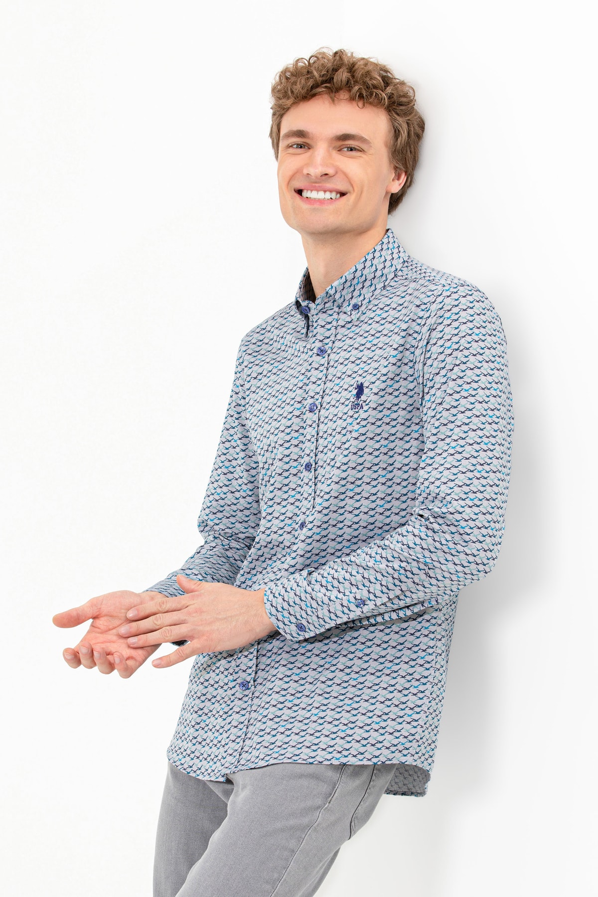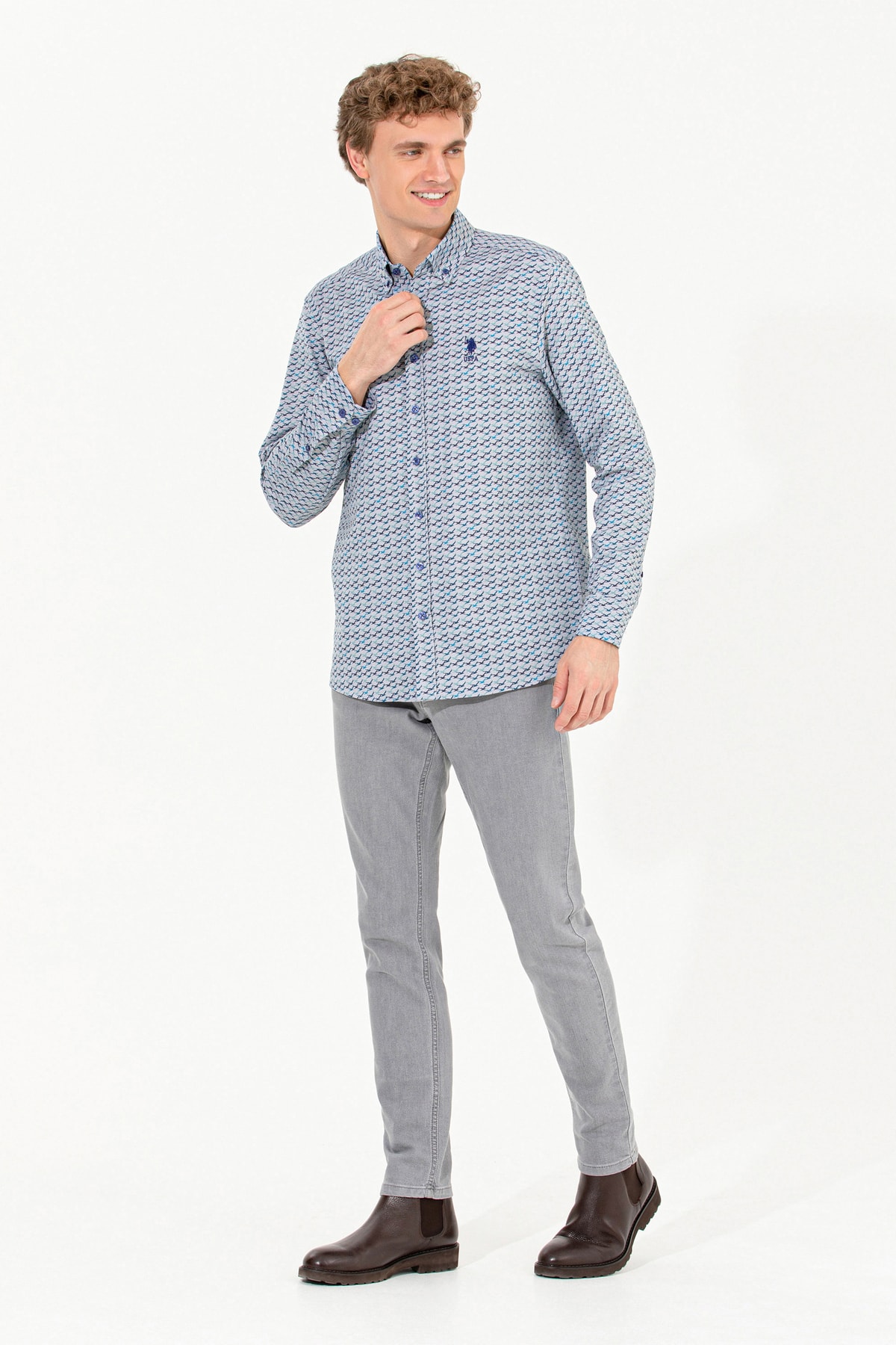 - نام : Erkek Dokuma Mavi Desenli Regular Gömlek