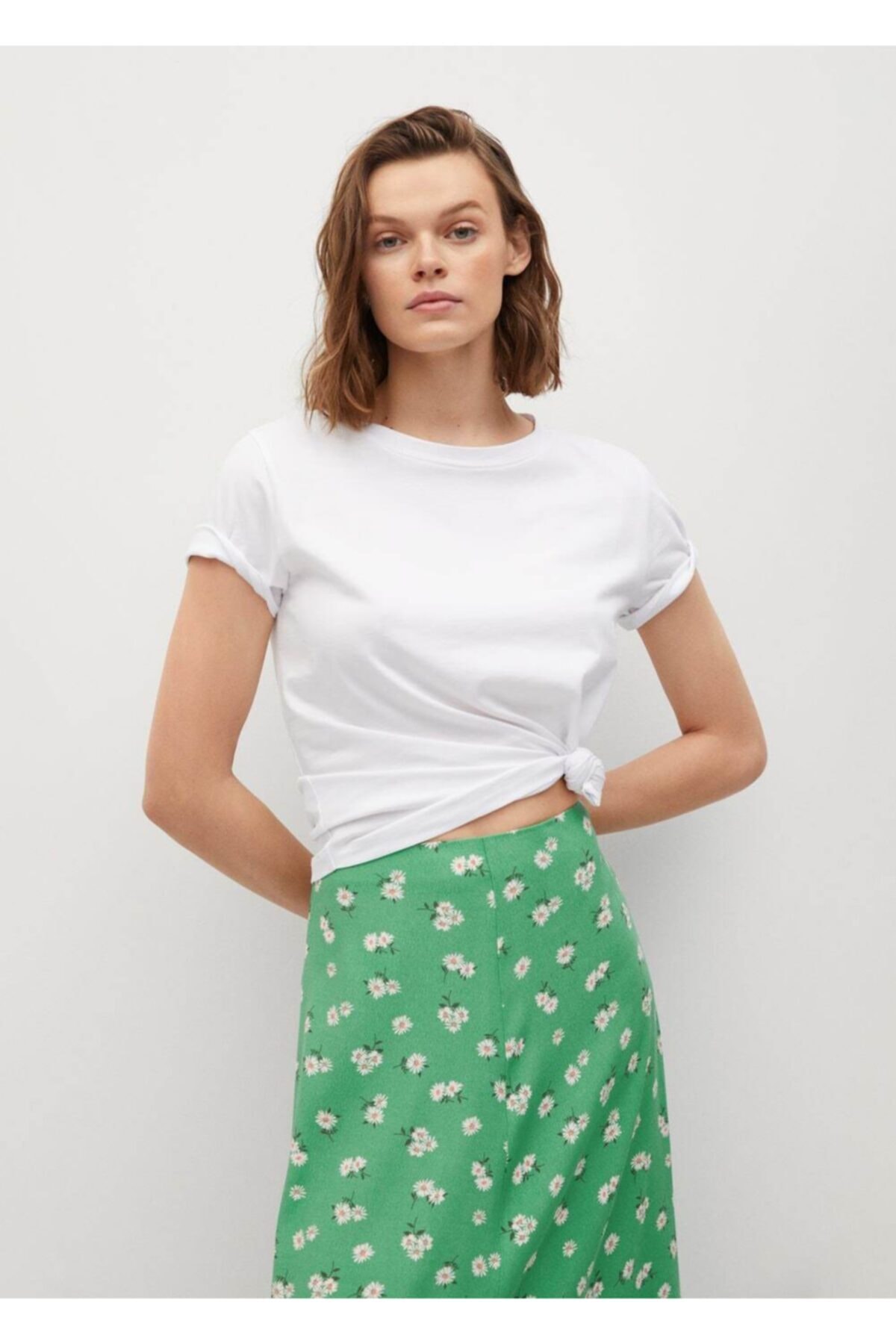Etek .-- sea. Committed Koleksiyonu, Dökümlü kumaş, Midi boy, Kloş model, Desenli model, Arkadan fermuar kapamalı, Committed etiketli giysiler, çevresel etkilerinin azaltılarak, sürdürülebilir lifler veya süreçler kullanılarak üretilen ürünlerdir. Mango'nun hedefi, doğaya daha fazla adanmış olan uygulamaları desteklemek ve koleksiyondaki sürdürülebilir giysi sayısını arttırmaktır. 100% viskoz. Yan dikiş uzunluğu 90.0 cm, Etek uzunluğu 89.0 cm