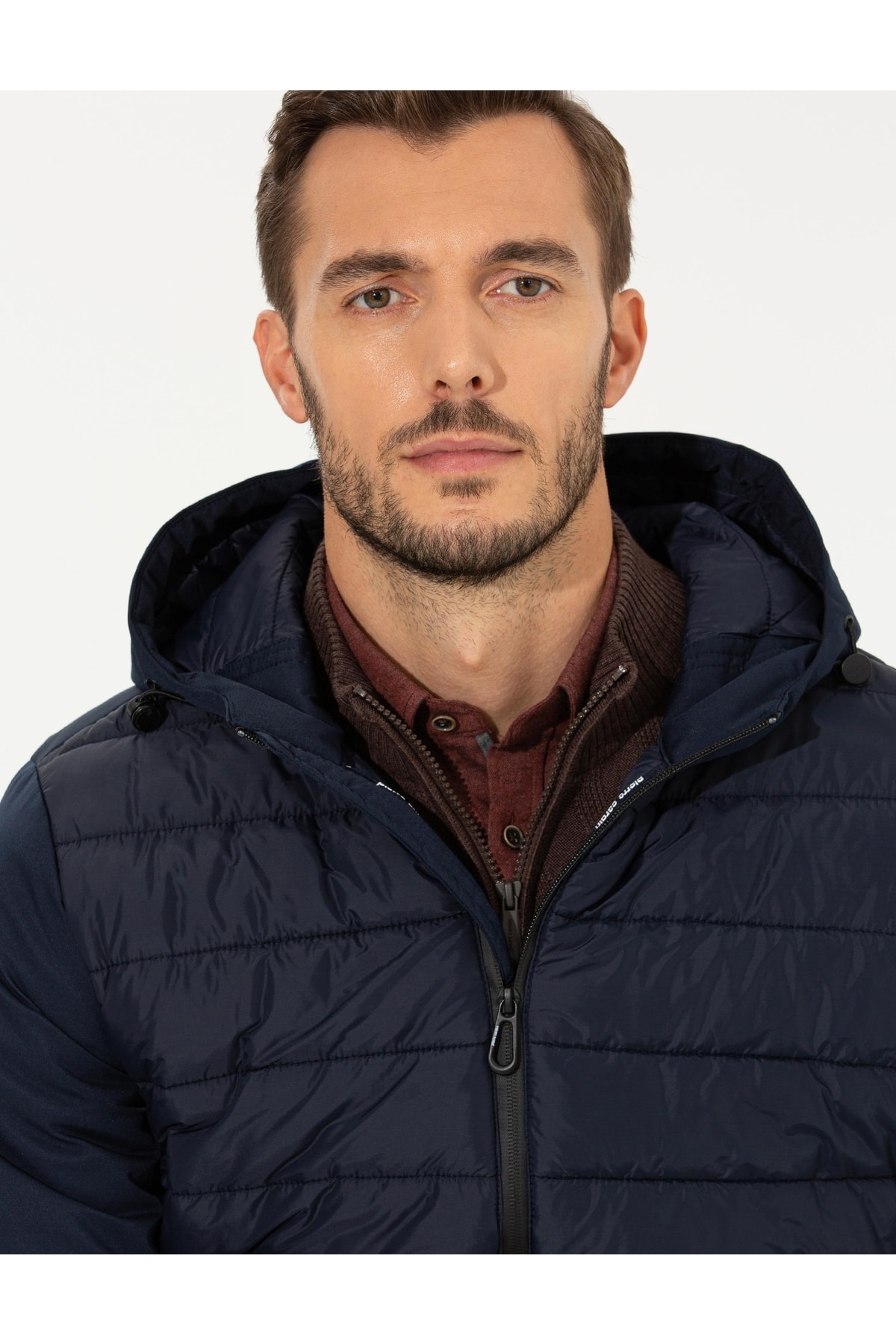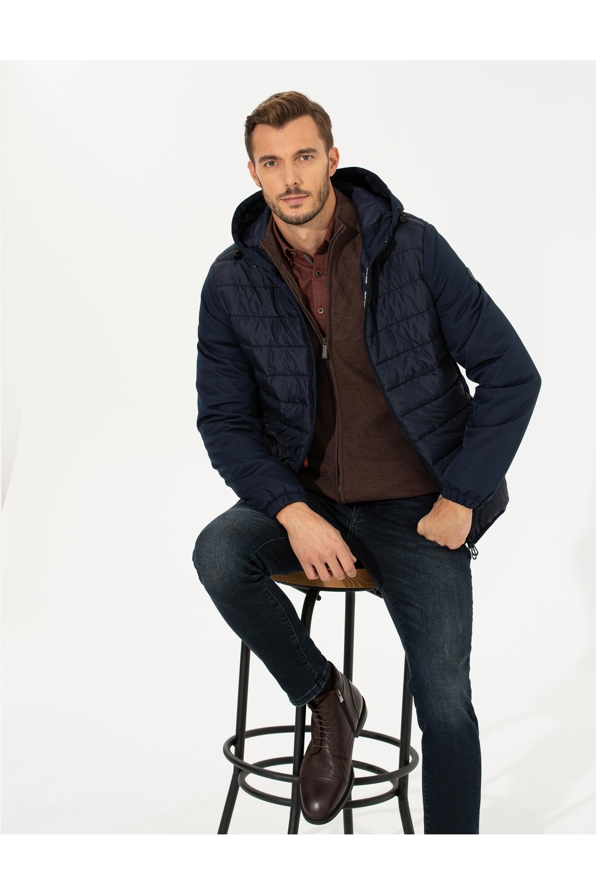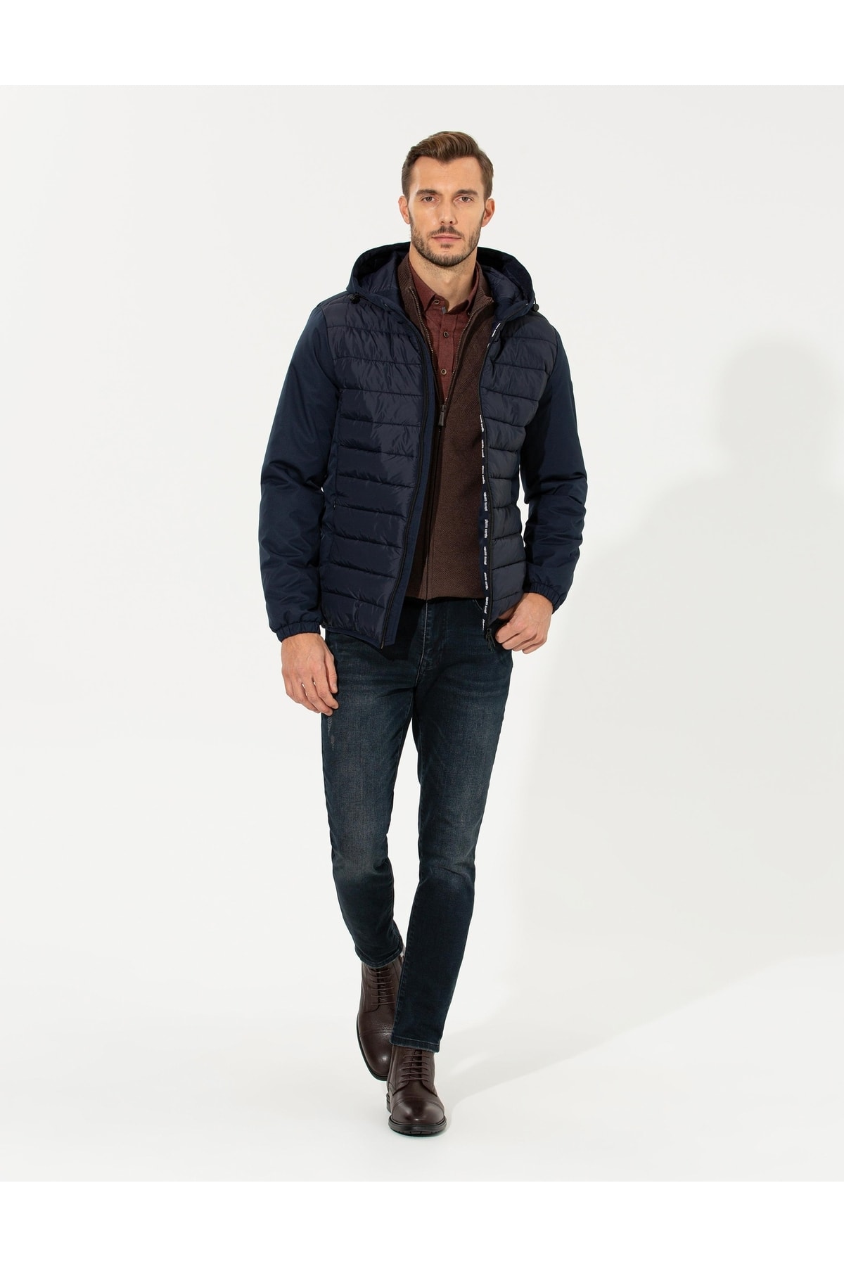 - نام : Lacivert Standart Fit Kapüşonlu Kapitone Mont