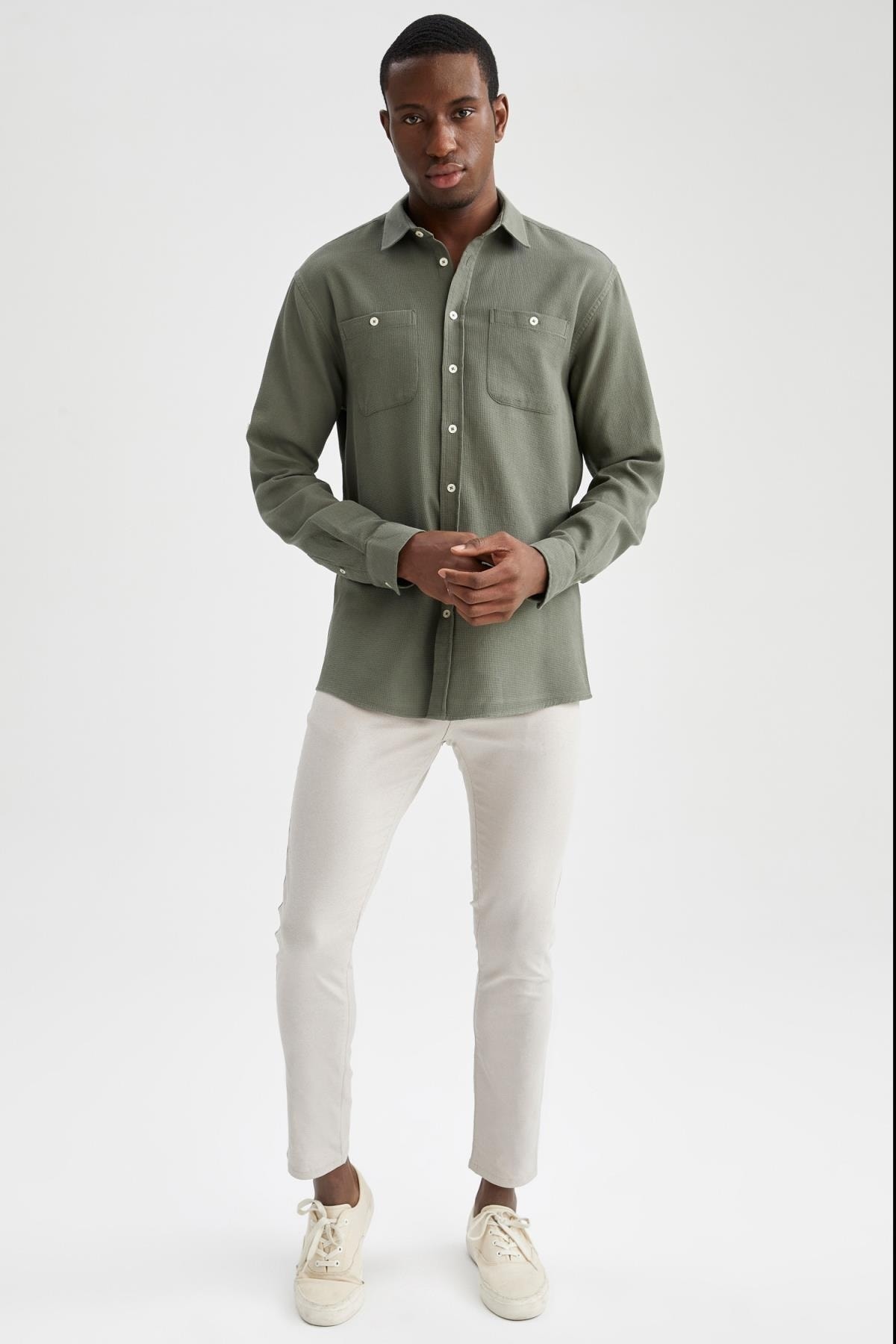 Gün boyunca rahat ve konforlu kullanıma sahip pamuk karışımlı gabardin kumaştan üretilmiştir. Ağ kısmından paçaya kadar inen kesimi ve esnek dokulu kumaşı ile maskülen bir görünüm sağlar. Rahat kombinlenir, normal bel, düz, boru paça, katlama detaylı, şık ve stil sahibi tasarımı ile günlük hayatınızda, ofiste, davetlerde gömlekler, tişörtler ve blazer cekeler ile harika görünen kombinler oluşturabileceğiniz DeFacto Erkek Slim Fit Chino Pantolon.