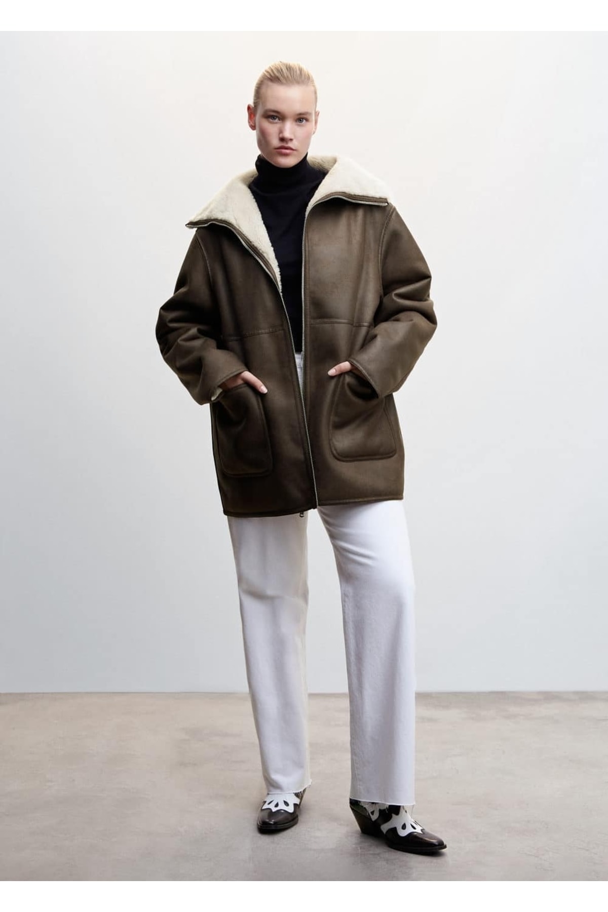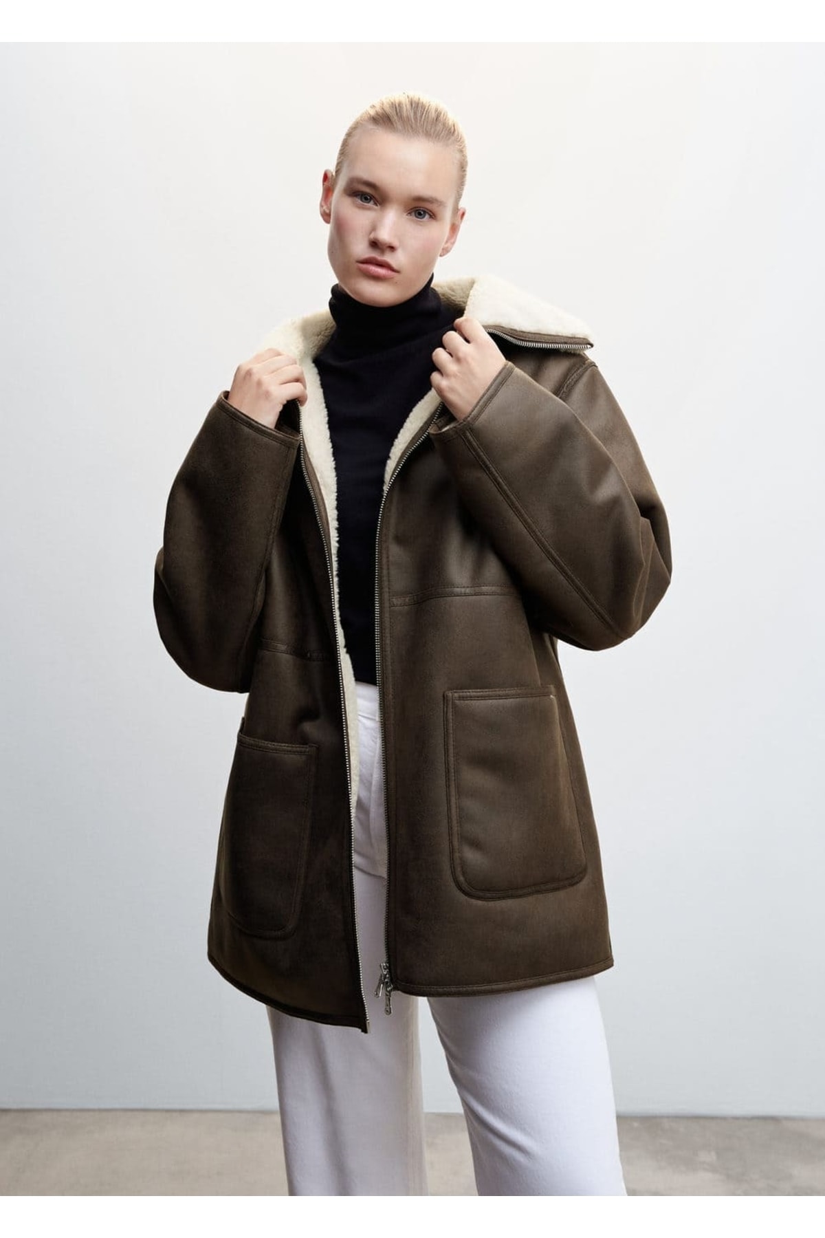 خرید اینترنتی پالتو زنانه قهوه ای مانگو 37017714