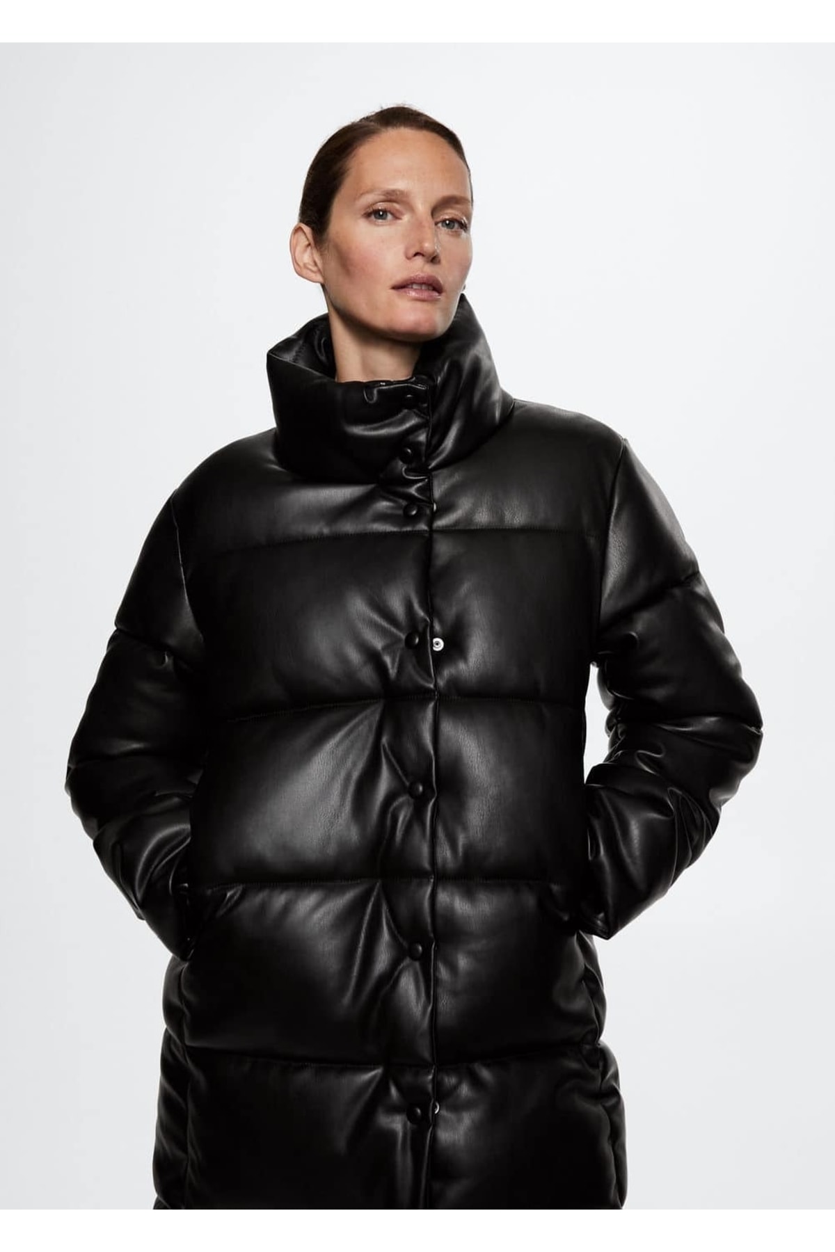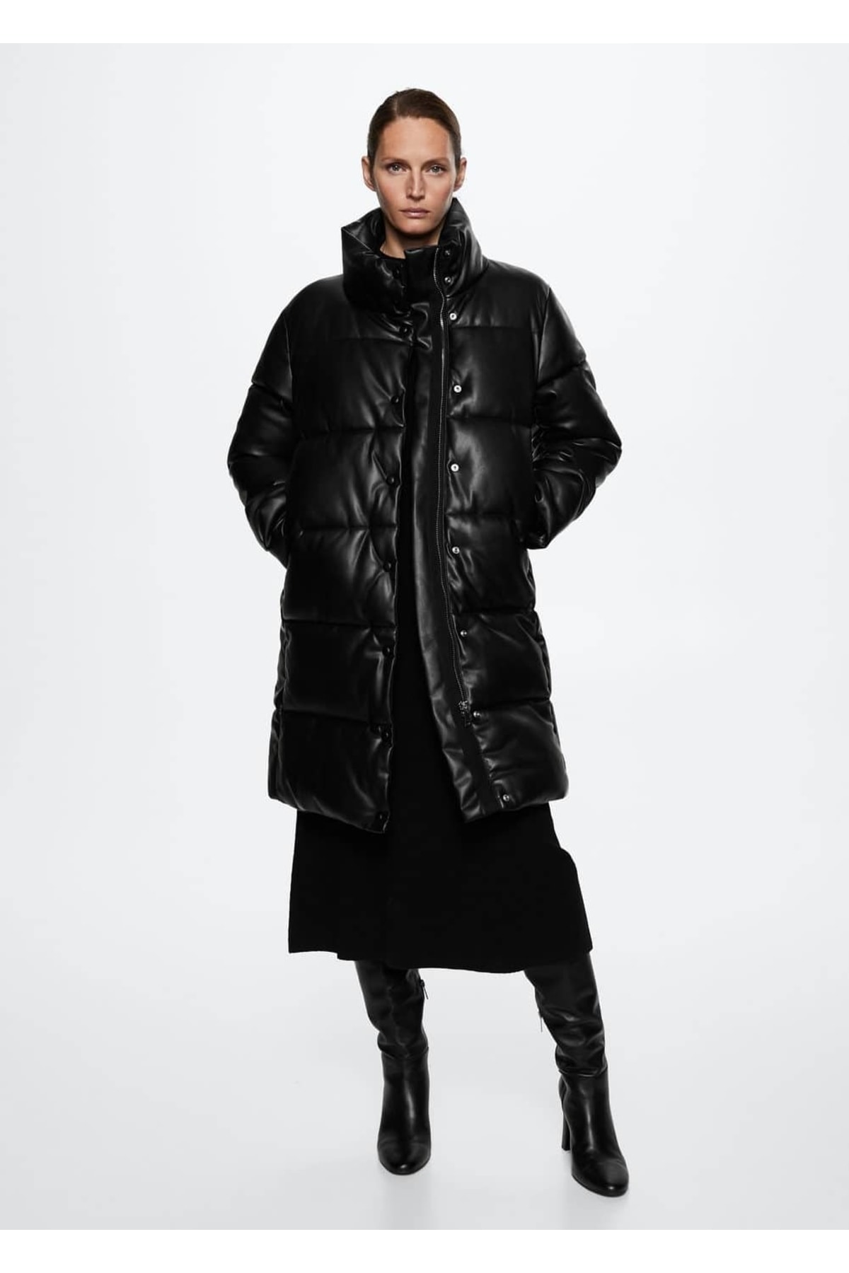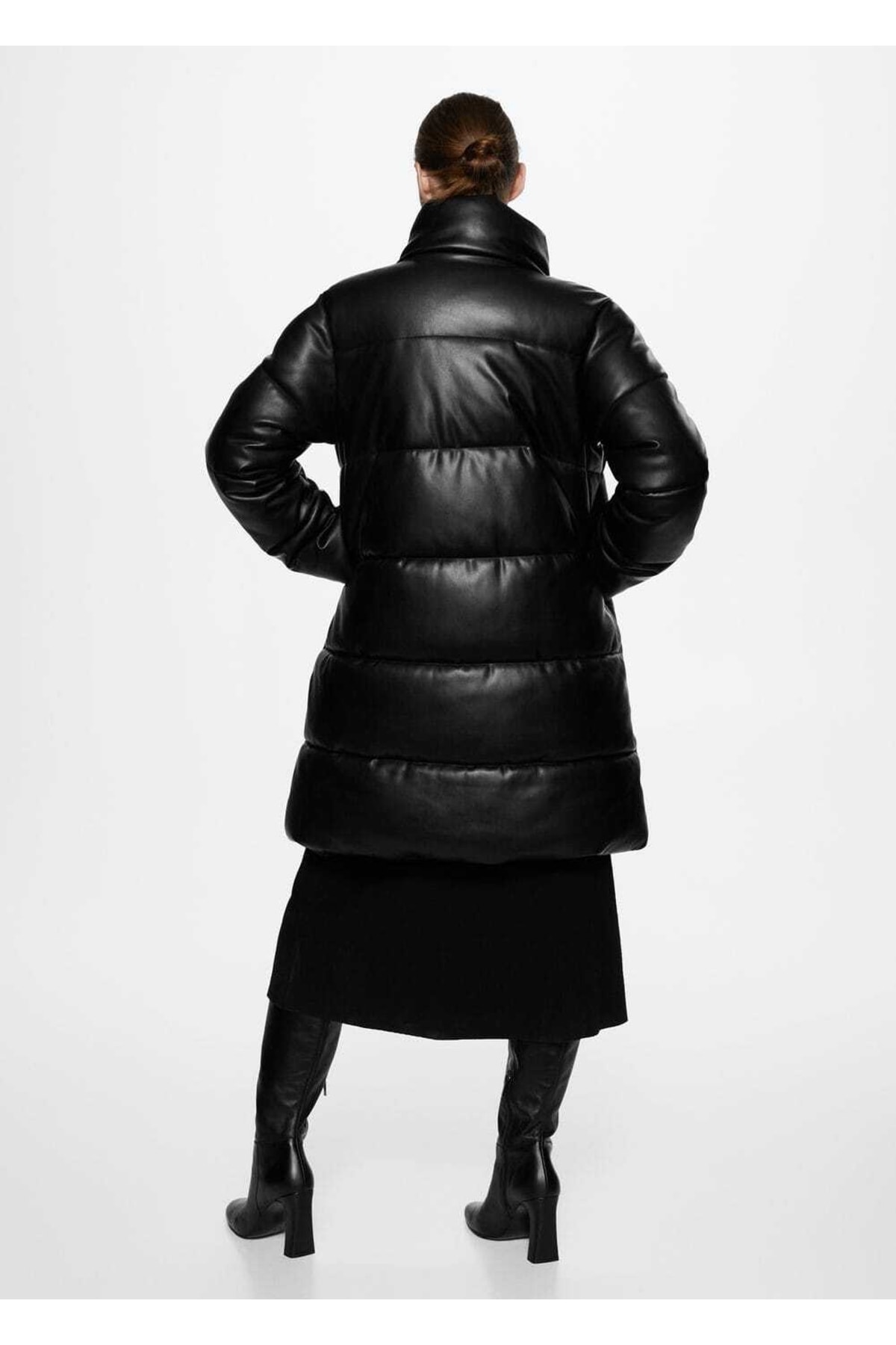 خرید اینترنتی کاپشن چرم زنانه سیاه مانگو 37037880