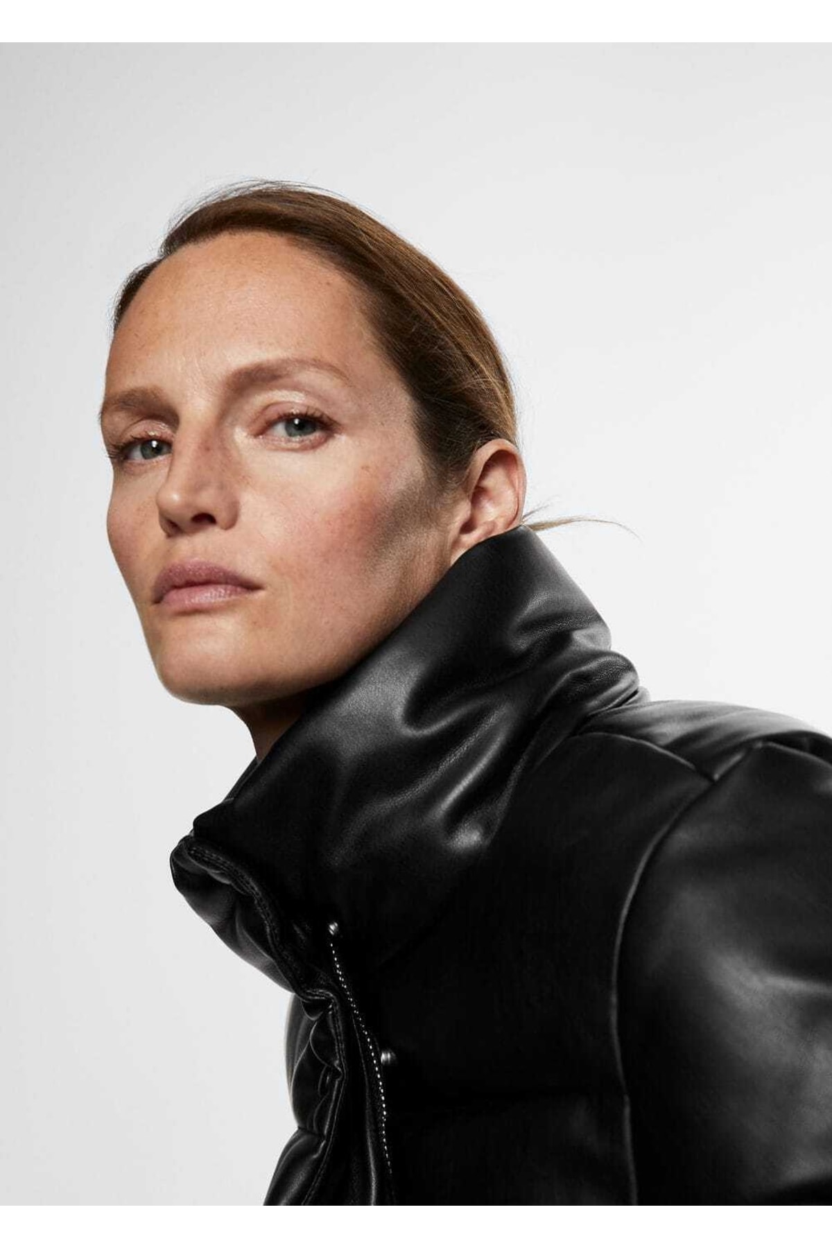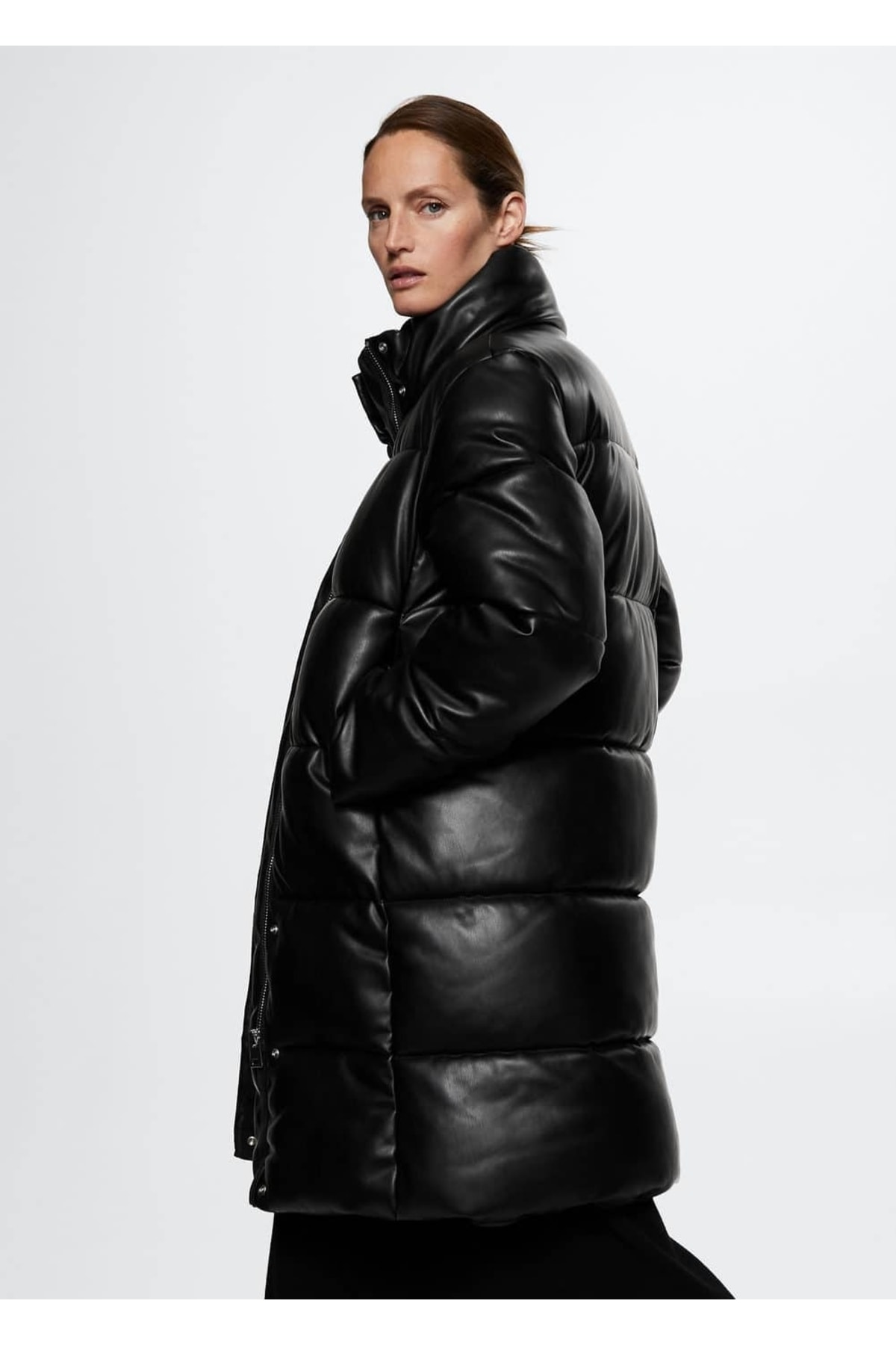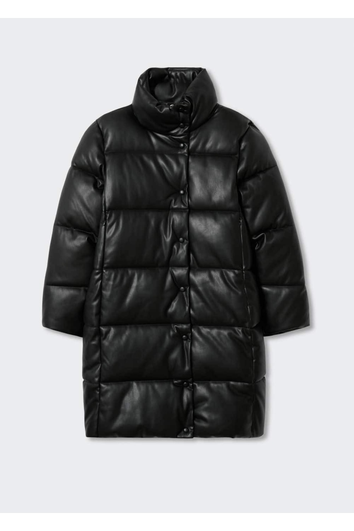 خرید اینترنتی کاپشن چرم زنانه سیاه مانگو 37037880