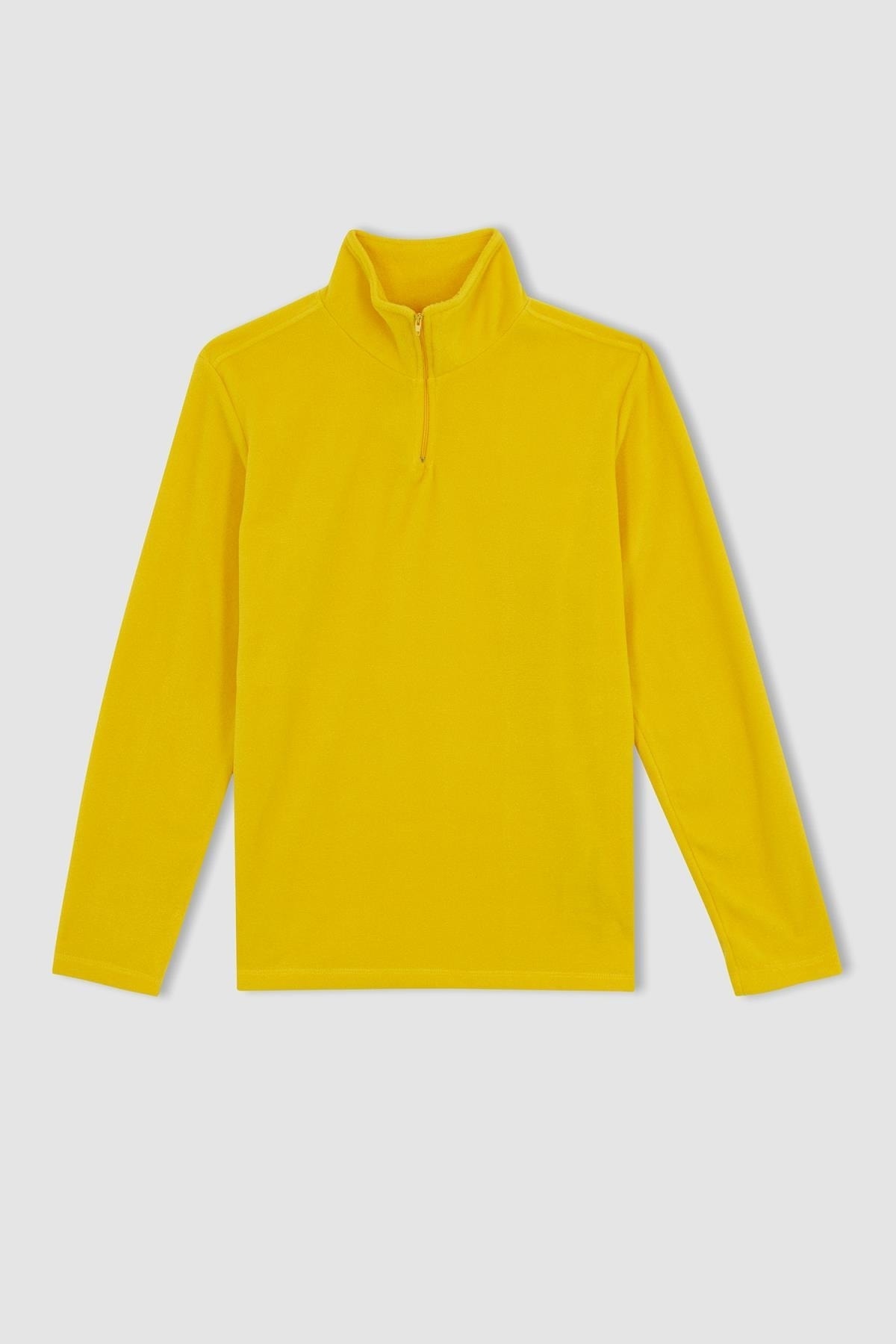 Konforlu kullanım sağlayan polar kumaşı, yarım fermuarlı dik yaka, rahat ve spor tasarımı ile polar eşofmanlar, spor şortlar, bomber, biker, jean ceket ve jean pantolon gibi sokak modasına yön veren parçalarla kombinleyebileceğiniz DeFacto Erkek Regular Fit Yarım Fermuarlı Dik Yaka Polar Sweatshirt.