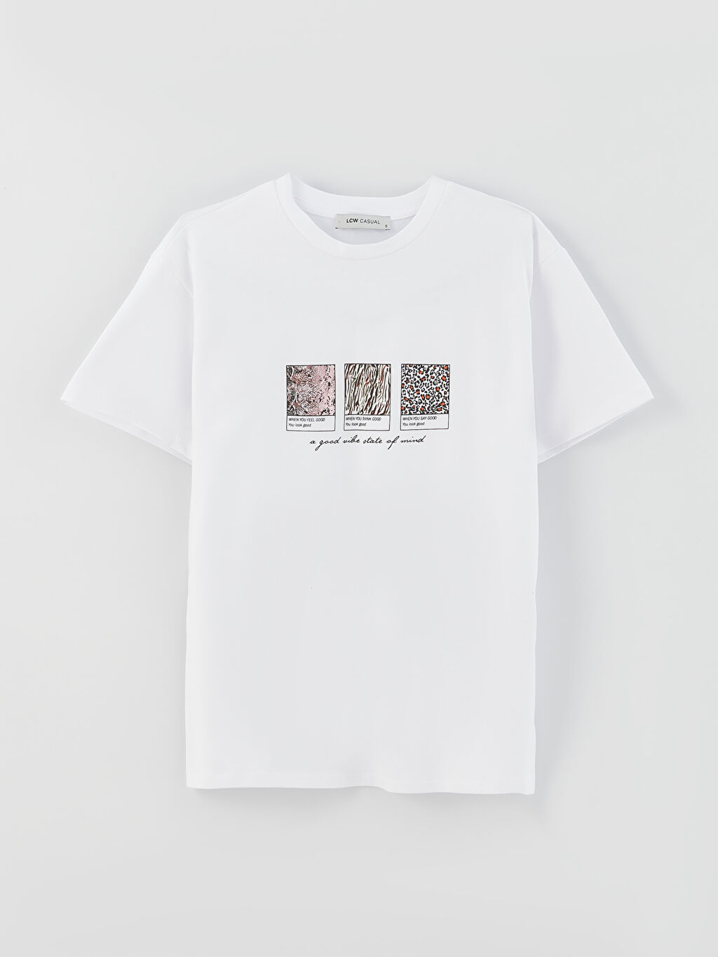 - نام : Bisiklet Yaka Baskılı Kısa Kollu Kadın Tişört