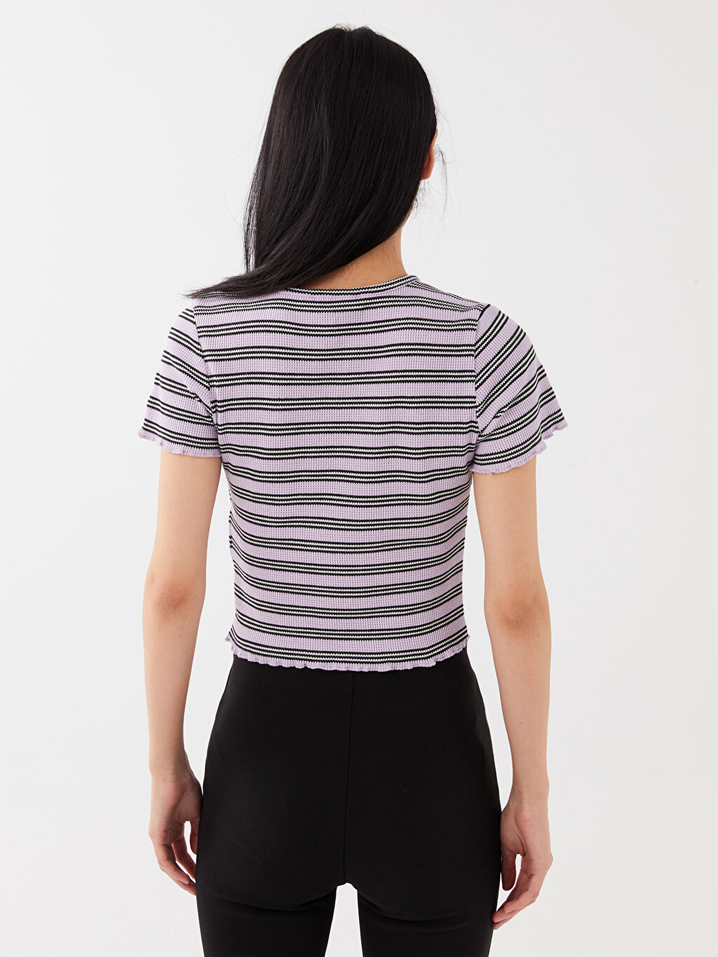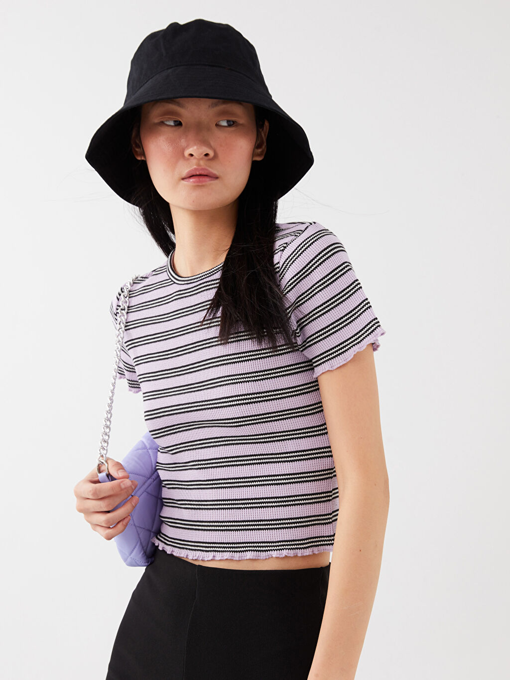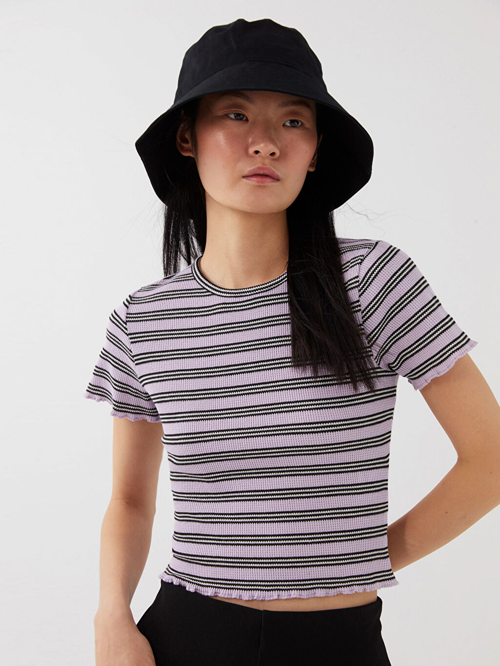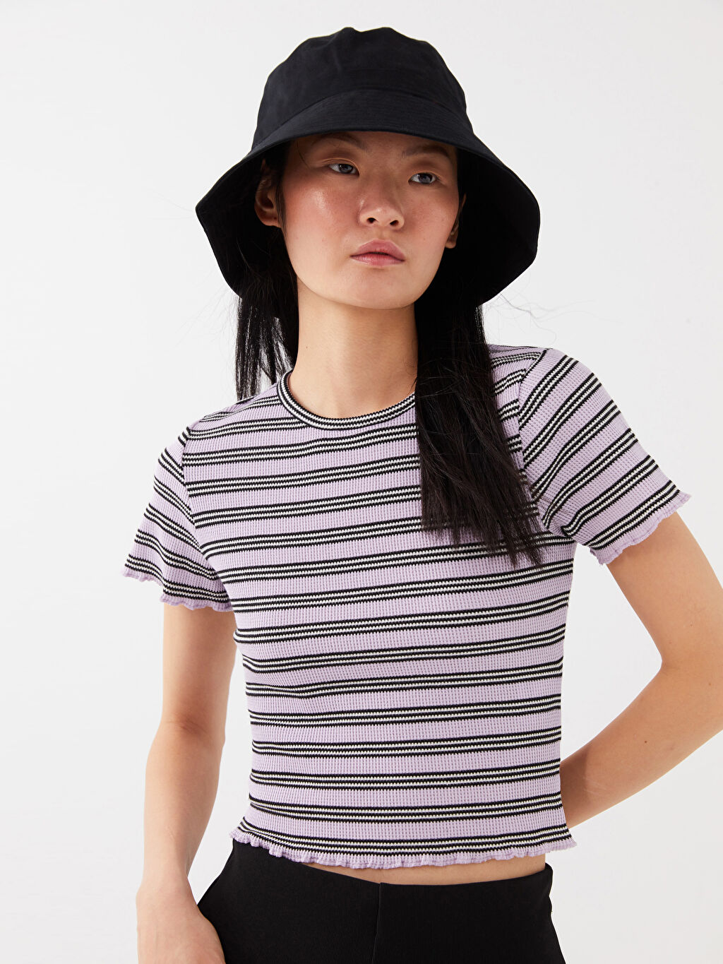 - نام : Bisiklet Yaka Çizgili Kısa Kollu Kadın Tişört