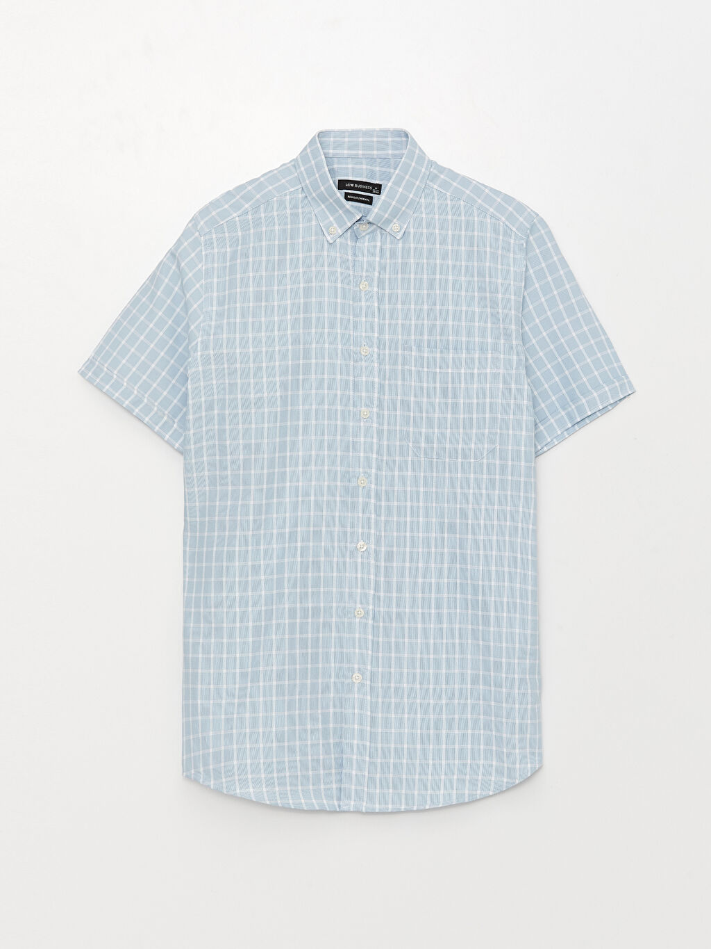 - نام : Regular Fit Kısa Kollu Ekose Armürlü Erkek Gömlek