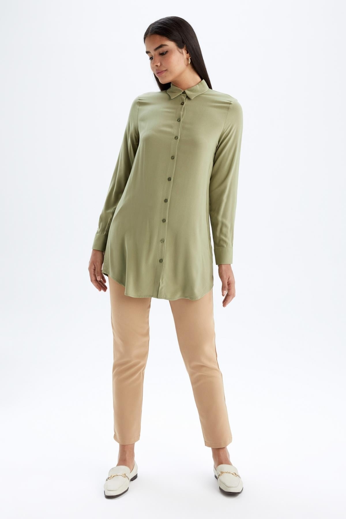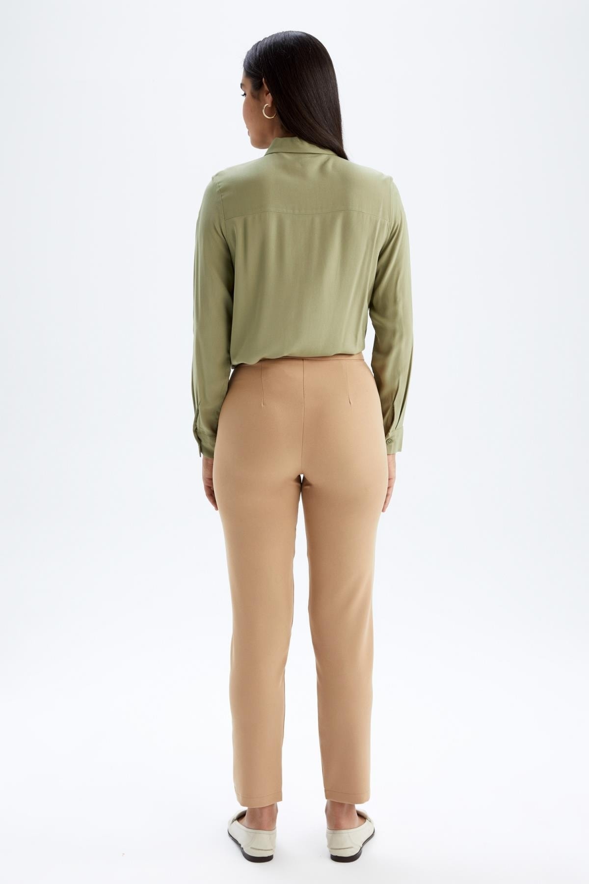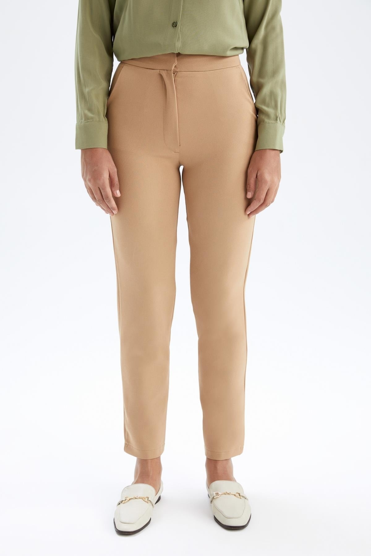 Rahat carrot fit rahat kesimi ile kolayca fit bir görünüm elde edebileceğiniz, aynı zamanda smart giyimde son zamanların en trend tercihi, balon kollu gömlek, tesettür modasının en çok tercih edilen parças crop top blazer ceket ve slim fit üstlerle tamamlayabileceğiniz, kullanışlı renk tonuyla DeFacto Kadın Carrot Fit Pantolon