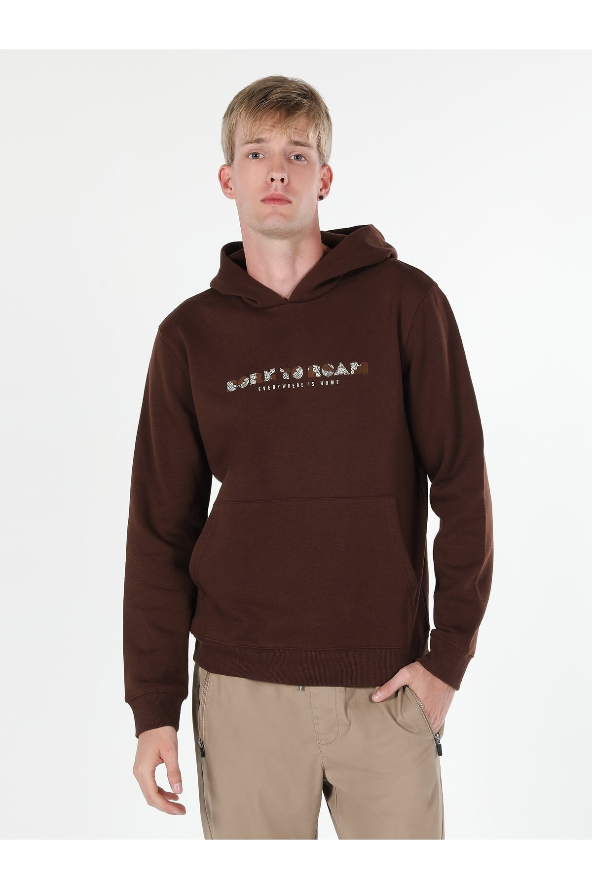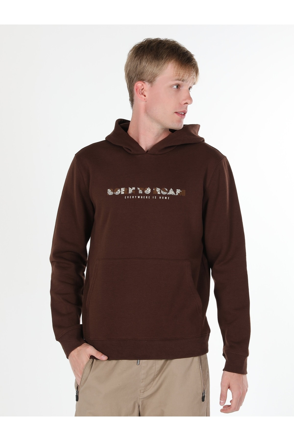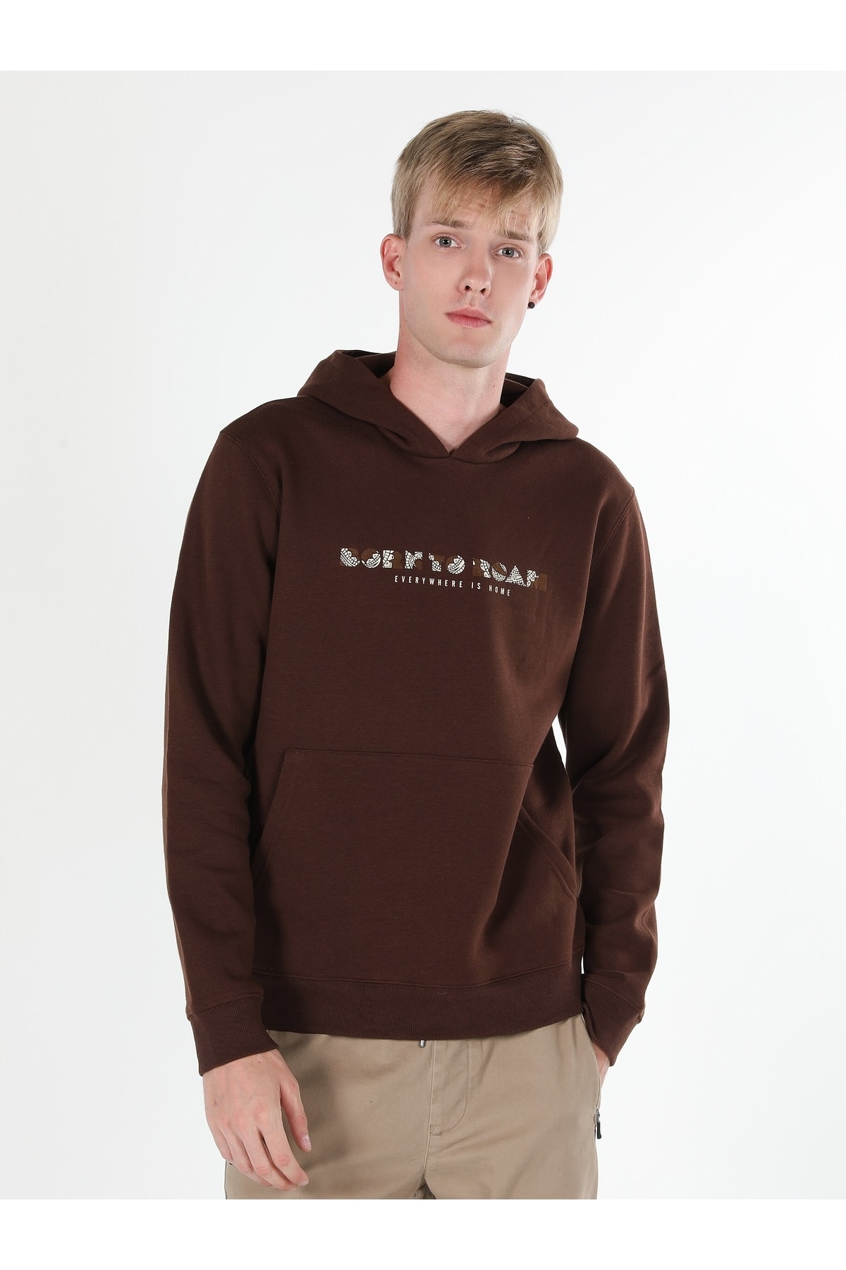 - نام : Regular Fit Kapüşonlu Yazı Baskılı Kahverengi Erkek Sweatshirt