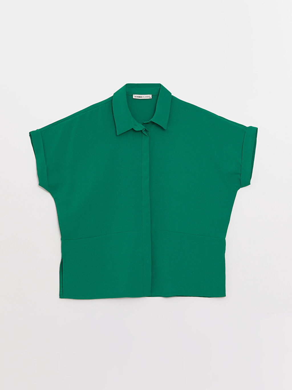 - نام : Gizli Düğme Kapamalı Düz Kısa Kollu Kadın Gömlek