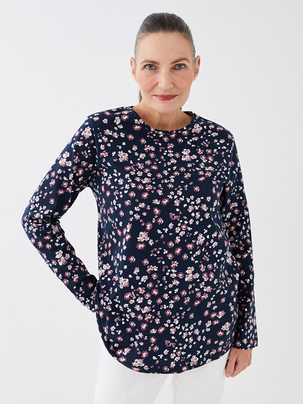 - نام : Bisiklet Yaka Desenli Uzun Kollu Kadın Tişört