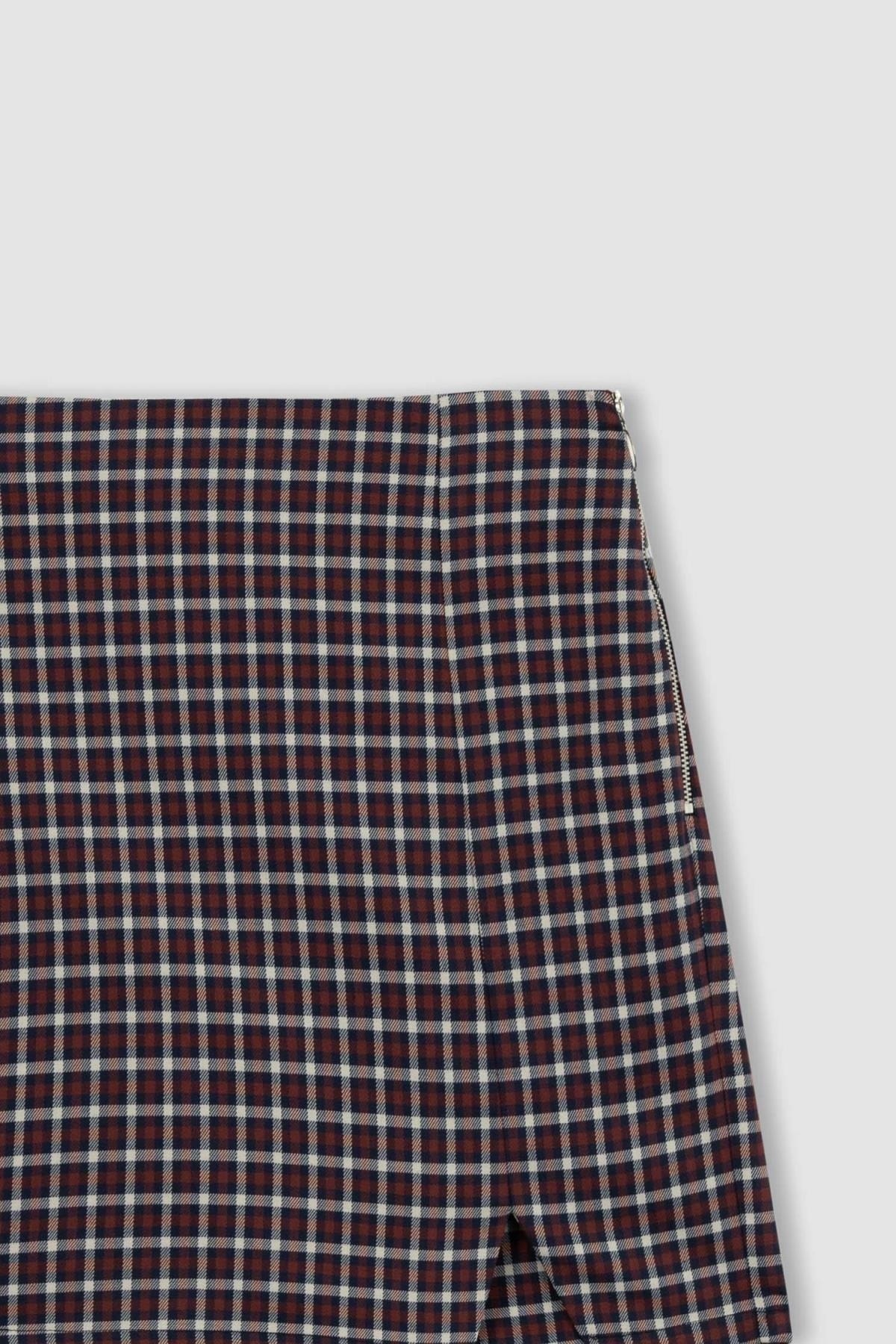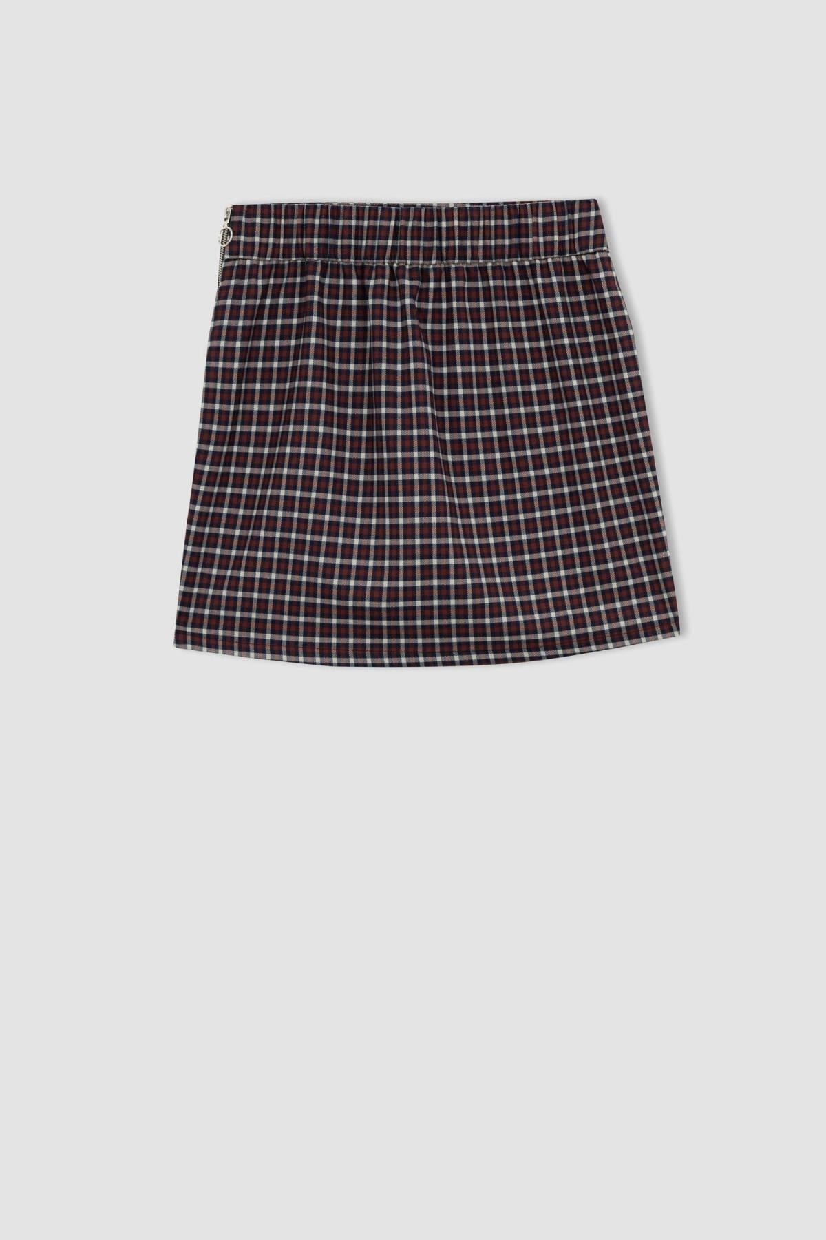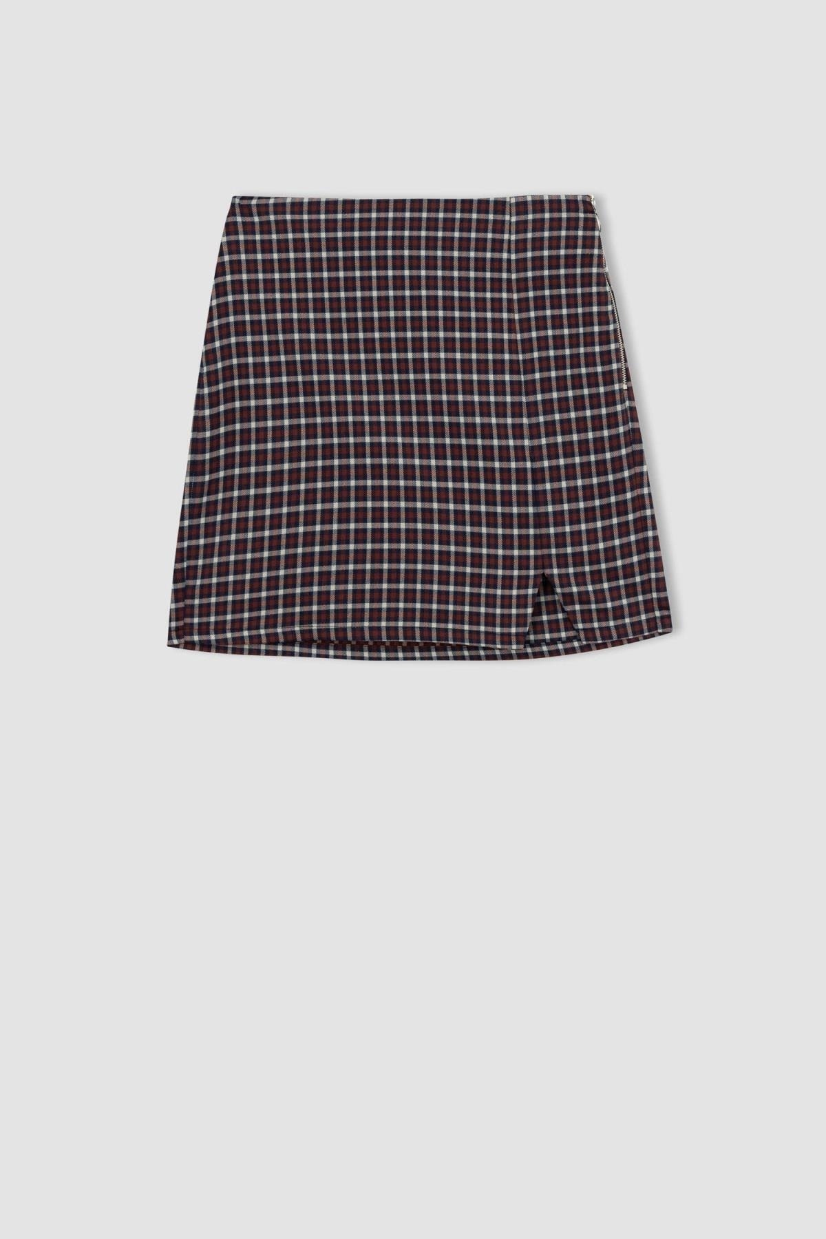 Trend bir görünümü olan, şık ve güzel giyinmeyi seven kadınlar için kare desenli, yırtmaçlı tasarlanmış, mini boyu ile kış mevsiminde kazaklarla, ekoseli oversize fit crop kazakla, basic bluz, baskılı tişörtlerle, kış mevsiminde oversize, yünlü kazak ya da crop sweatshirtlerle kombinleyelebileceğini DeFacto Kadın Kare Desenli Yırtmaçlı Dokuma Mini Etek
