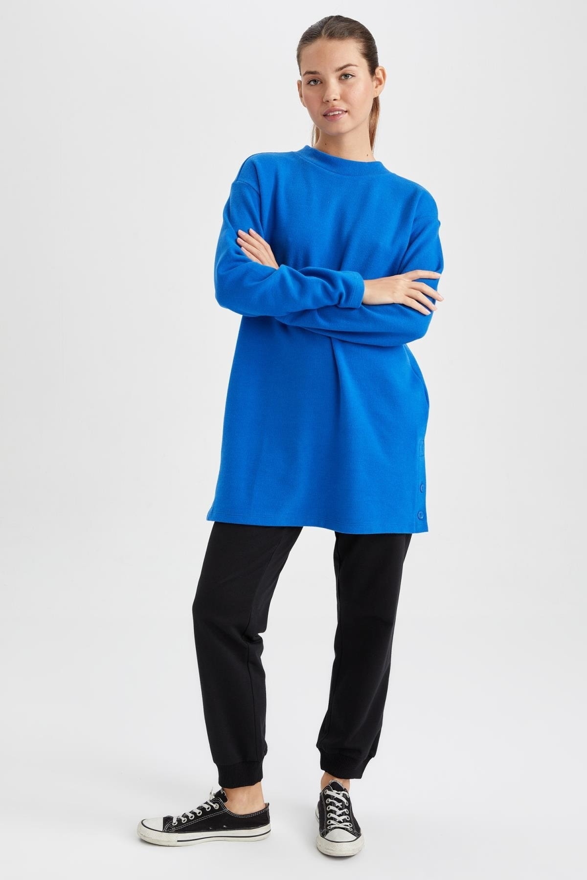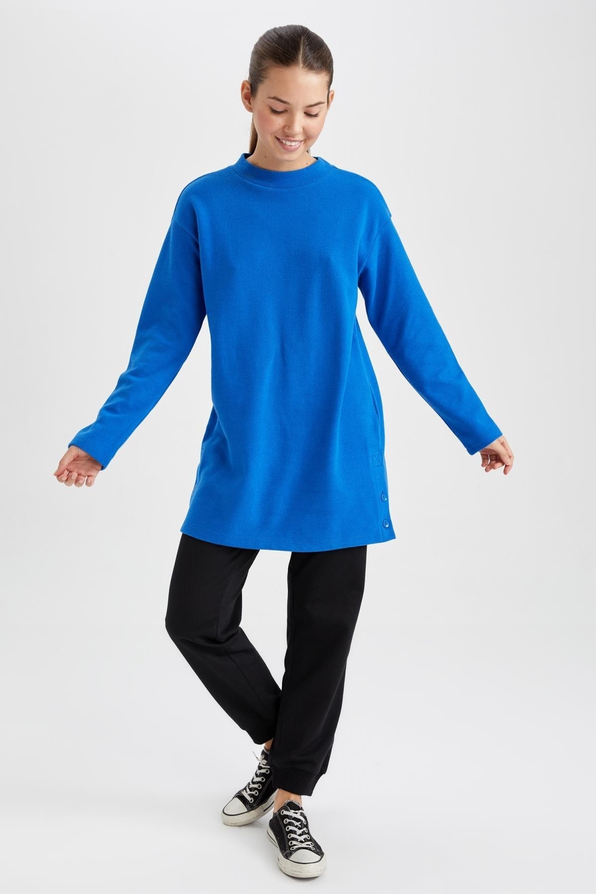 Rahat kalıbı ve pamuk karışımlı kumaşı ile kolayca fit bir görünüm elde edebileceğiniz, aynı zamanda lastikli paça tasarımıyla stil sahibi görünebileceğiniz tesettür modasının en çok tercih edilen parçası dilediğiniz tunik, tişört ve gömlek modelleriyle kombinleyebileceğiniz DeFacto Kadın Relax Fit Jogger Eşofman Altı